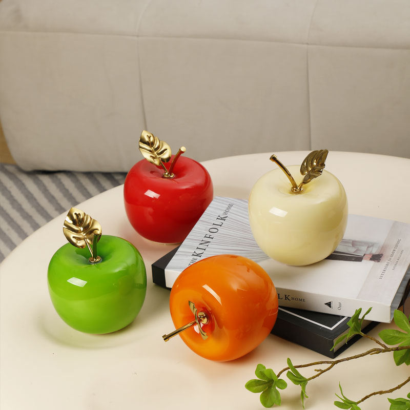 Contemporary Creative Apple Glass Shade Iron Golden Leaf Decoration LED Night Light Table Lamp For Bedroom