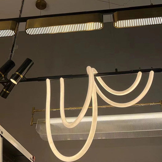 Contemporary Creative Arc Line Iron Acrylic LED Island Light Chandeliers For Dining Room