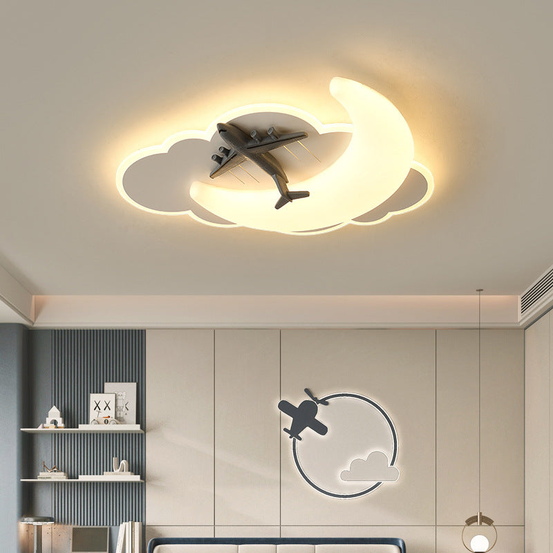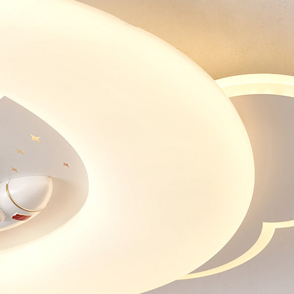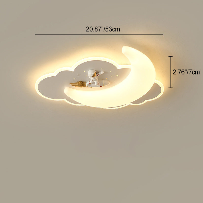 Contemporary Creative Astronaut Airplane Rotational Molding Iron LED Flush Mount Ceiling Light For Bedroom