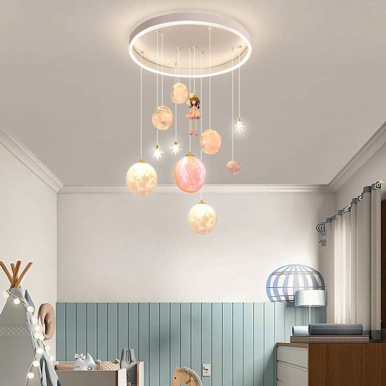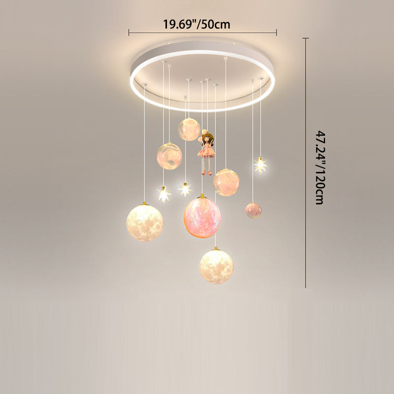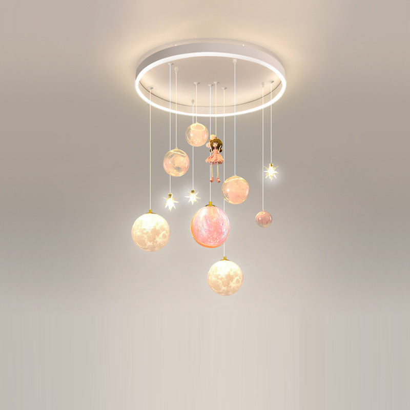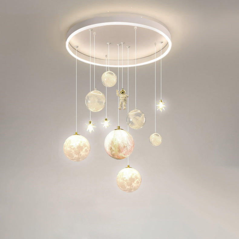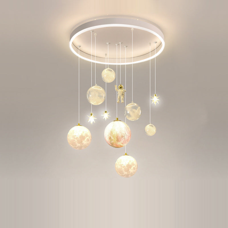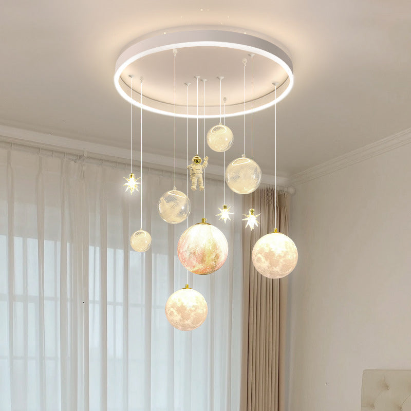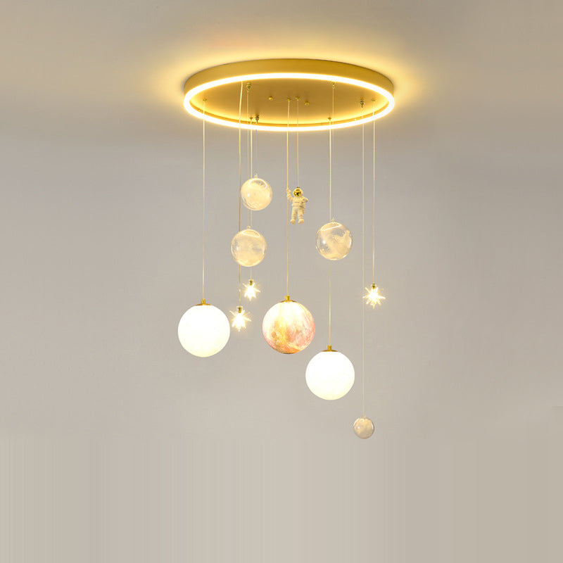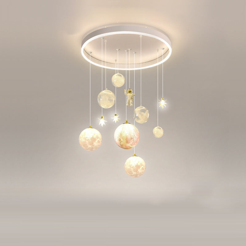 Contemporary Creative Astronaut Little Girl Silicone Iron Resin 6- Light Flush Mount Ceiling Light For Living Room