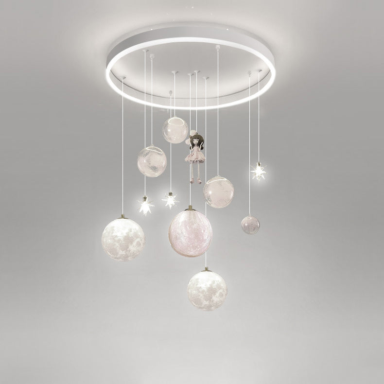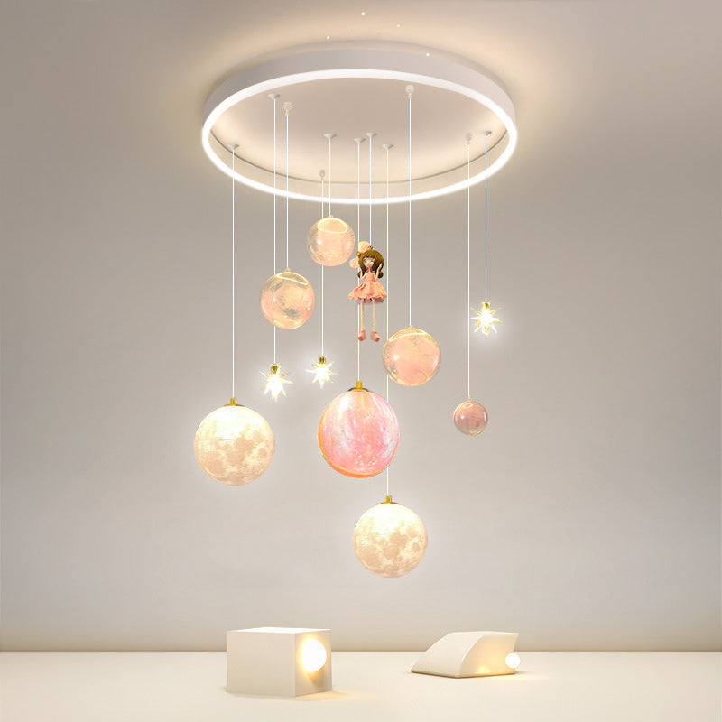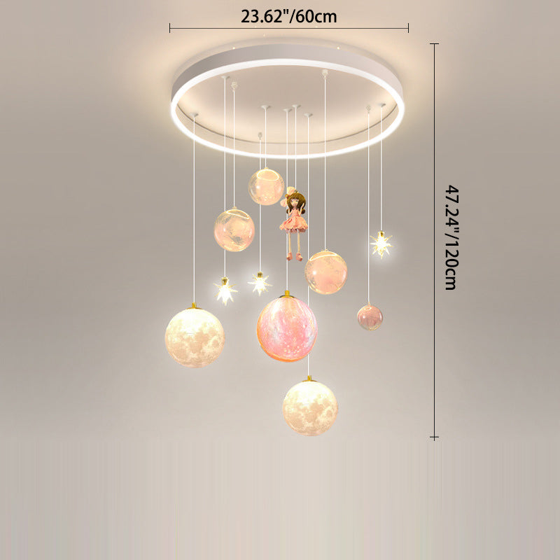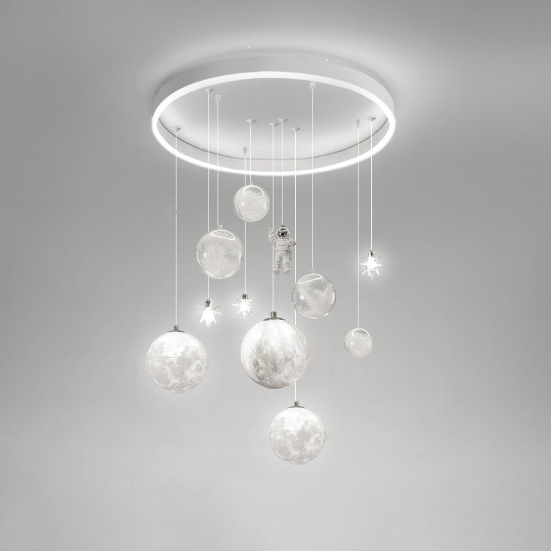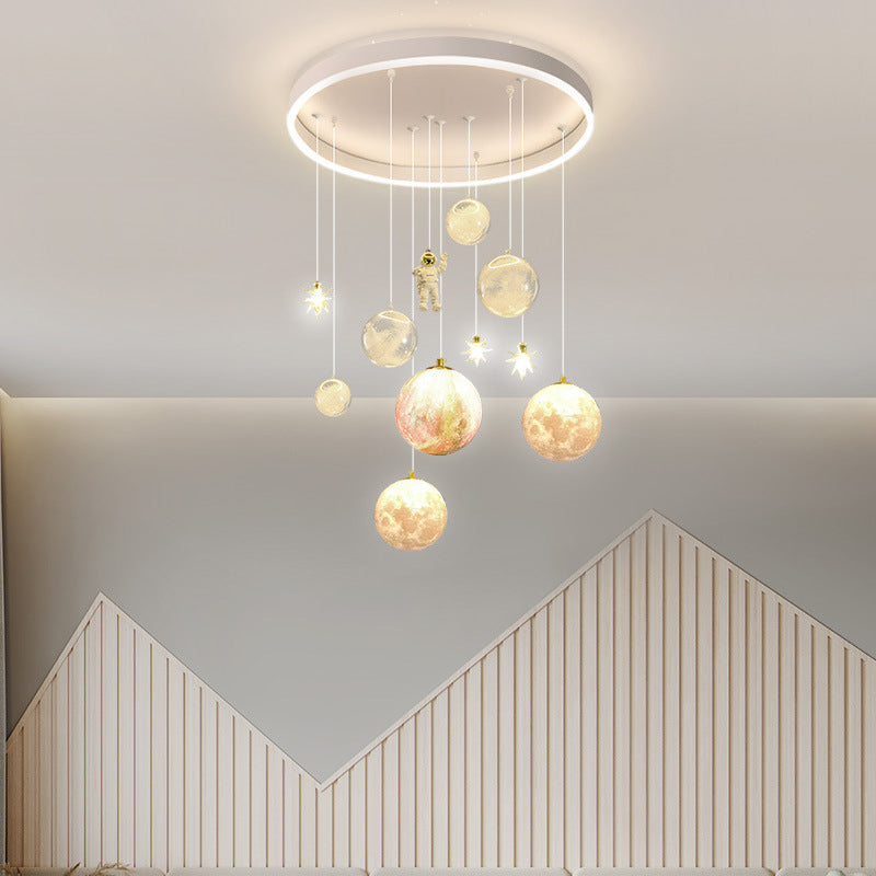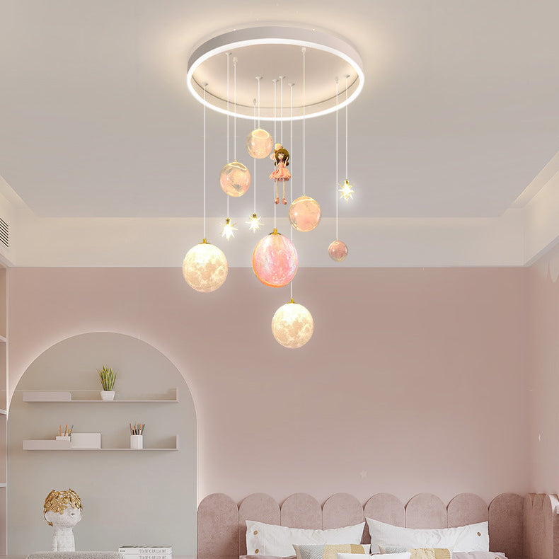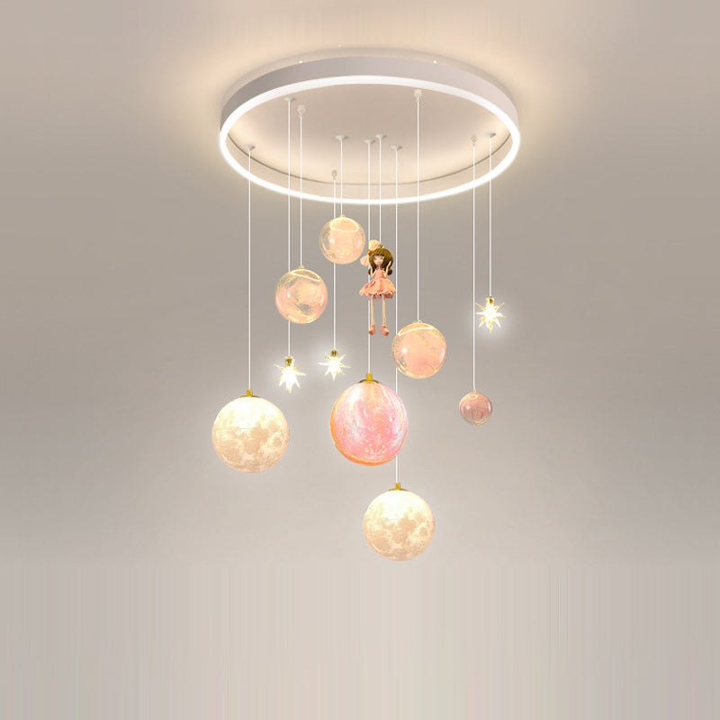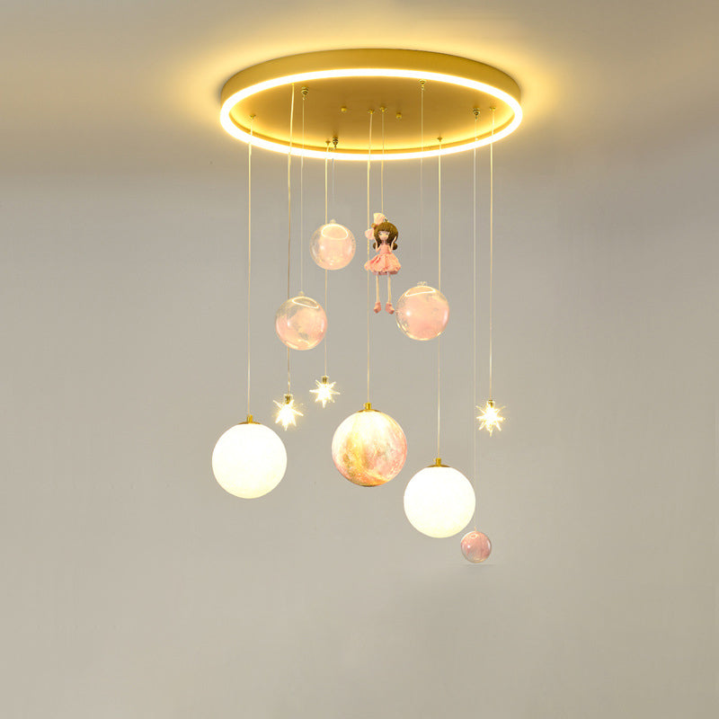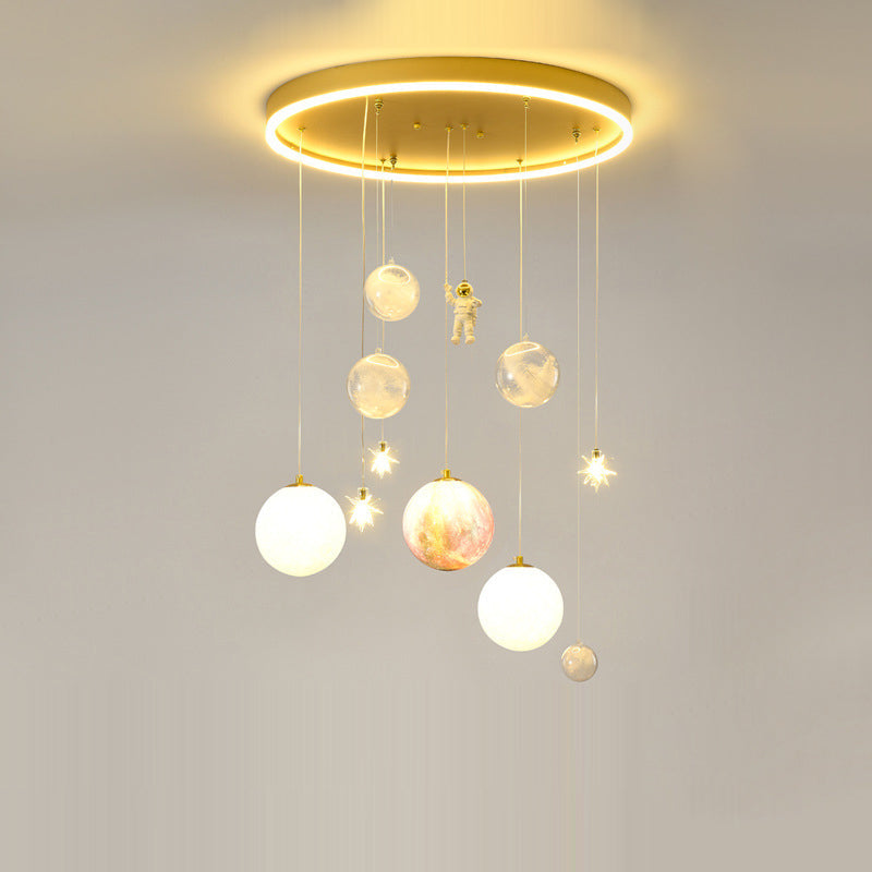 Contemporary Creative Astronaut Little Girl Silicone Iron Resin 6- Light Flush Mount Ceiling Light For Living Room