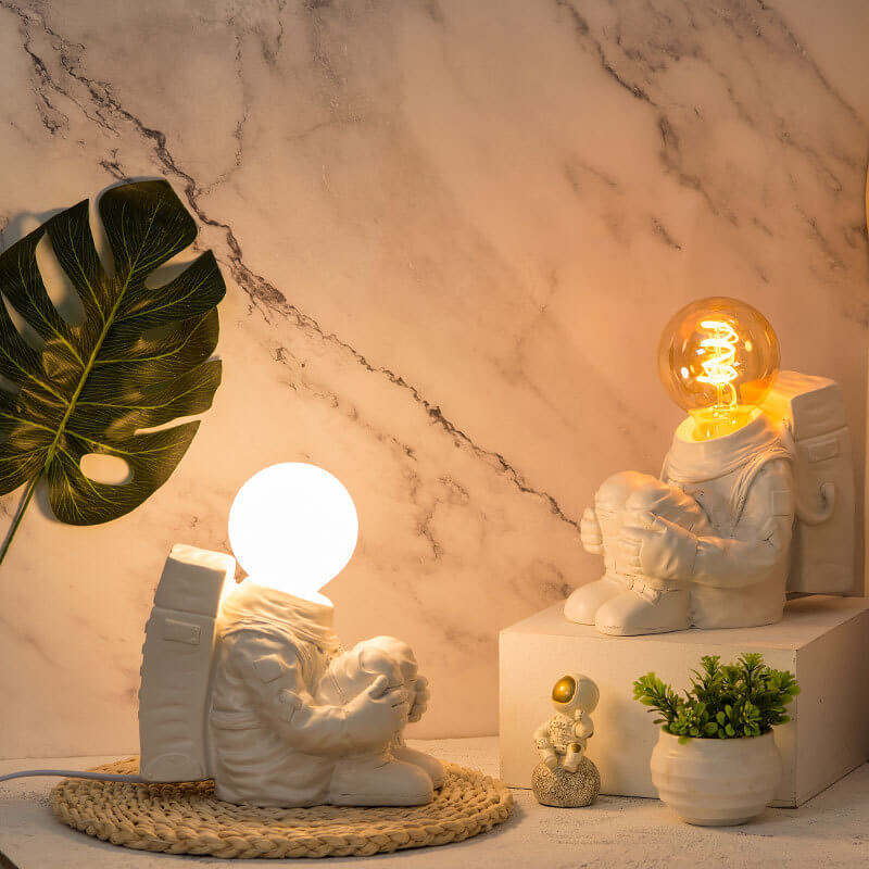 Contemporary Creative Astronaut Resin Glass 1-Light Table Lamp For Bedroom