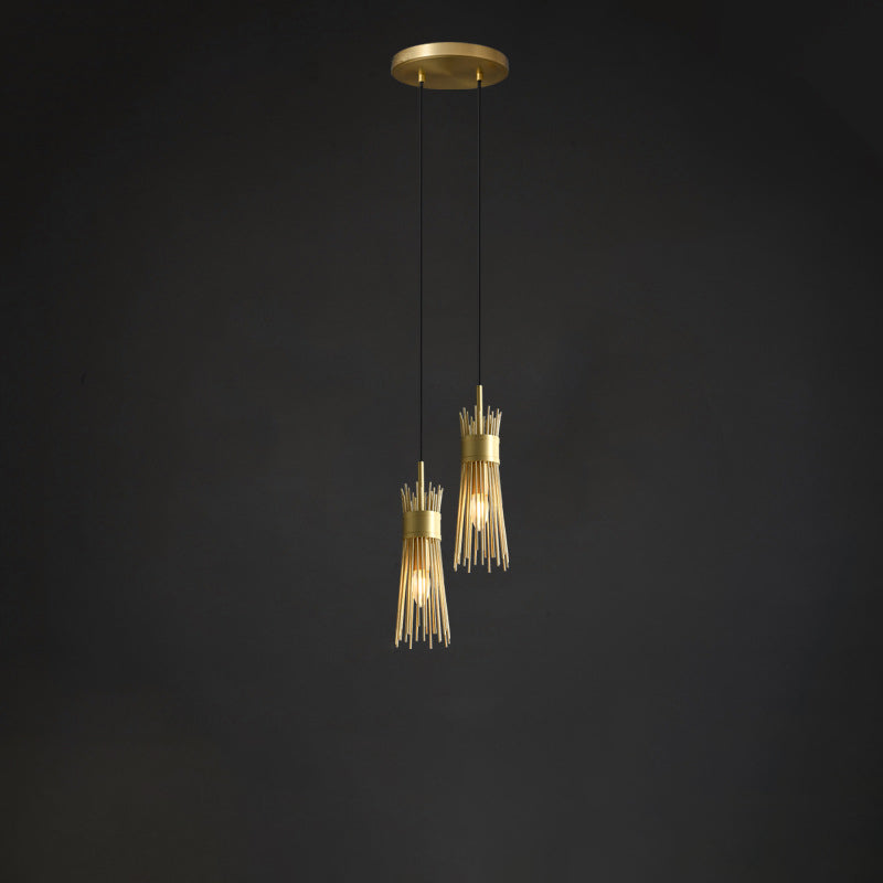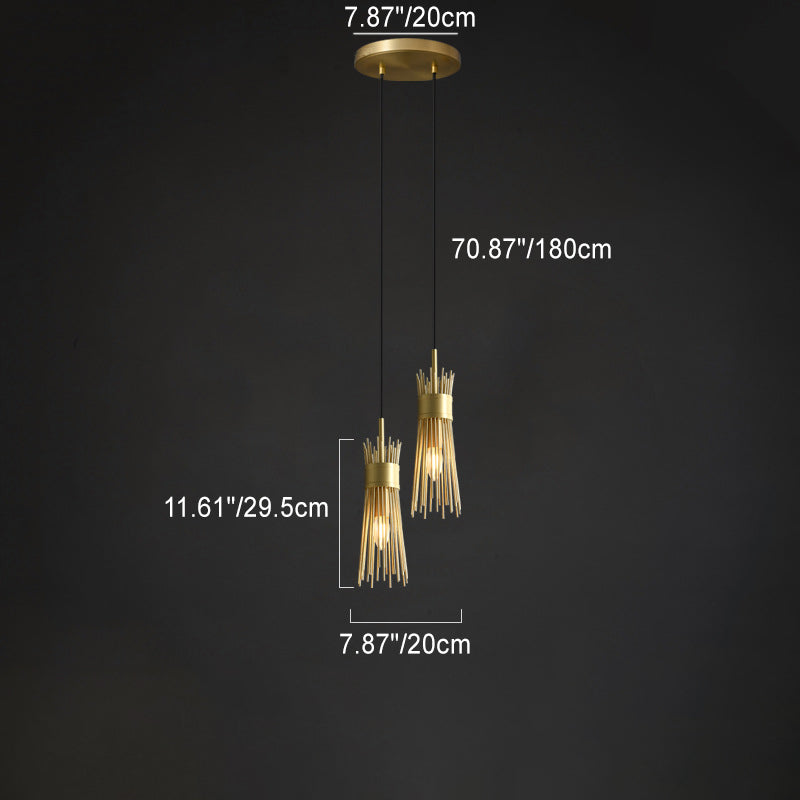 Contemporary Creative Bamboo Stick Cylinder Copper 1/2 Lights Pendant Light For Bedroom