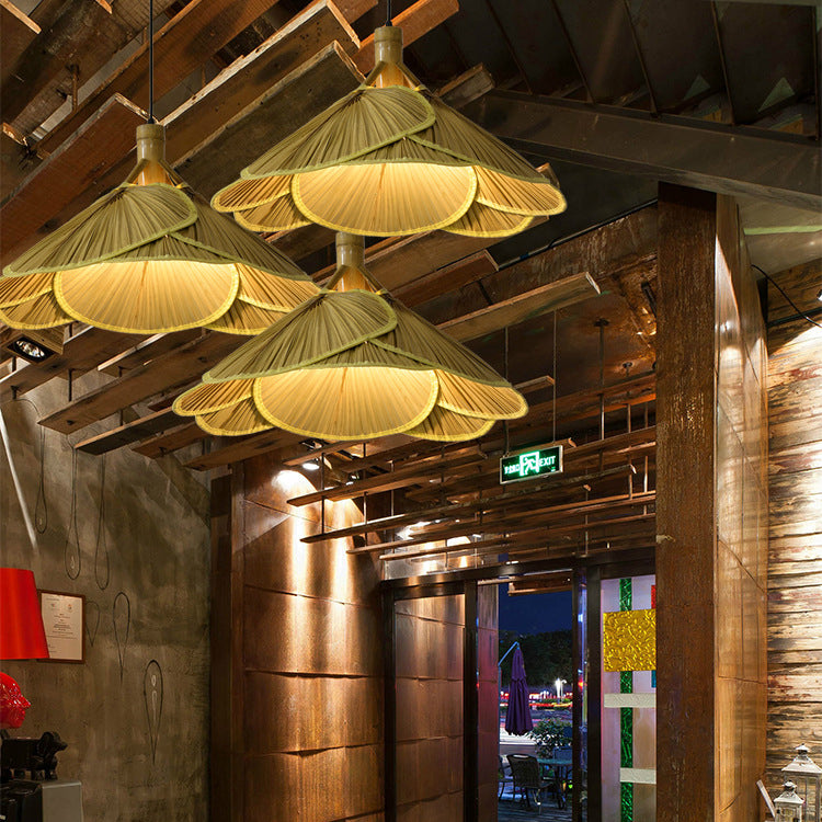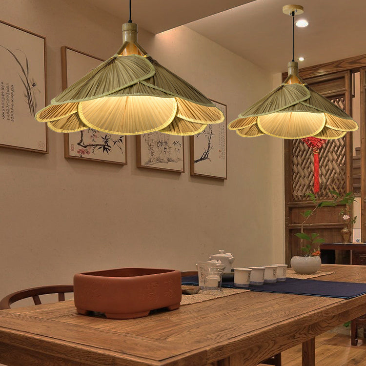 Contemporary Creative Bamboo Woven Fan 1-Light Pendant Light For Dining Room
