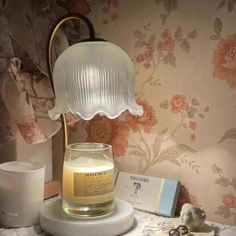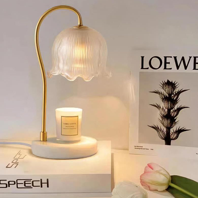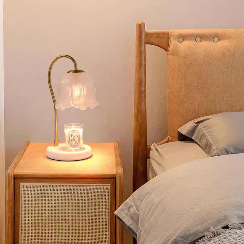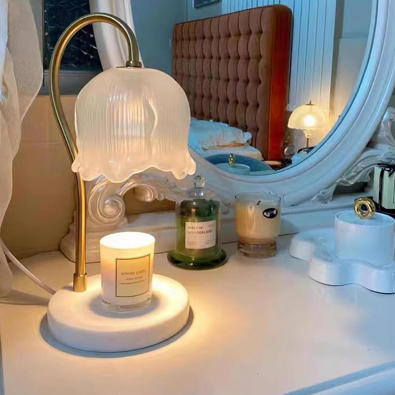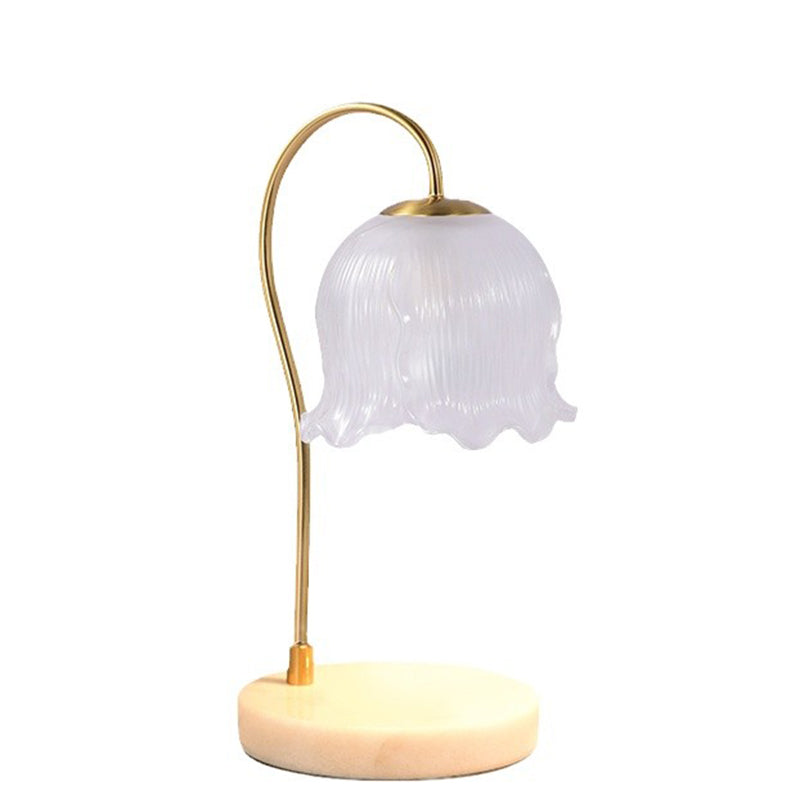Contemporary Creative Bell Orchid Glass Shade Marble Base 1-Light Melting Wax Table Lamp For Study