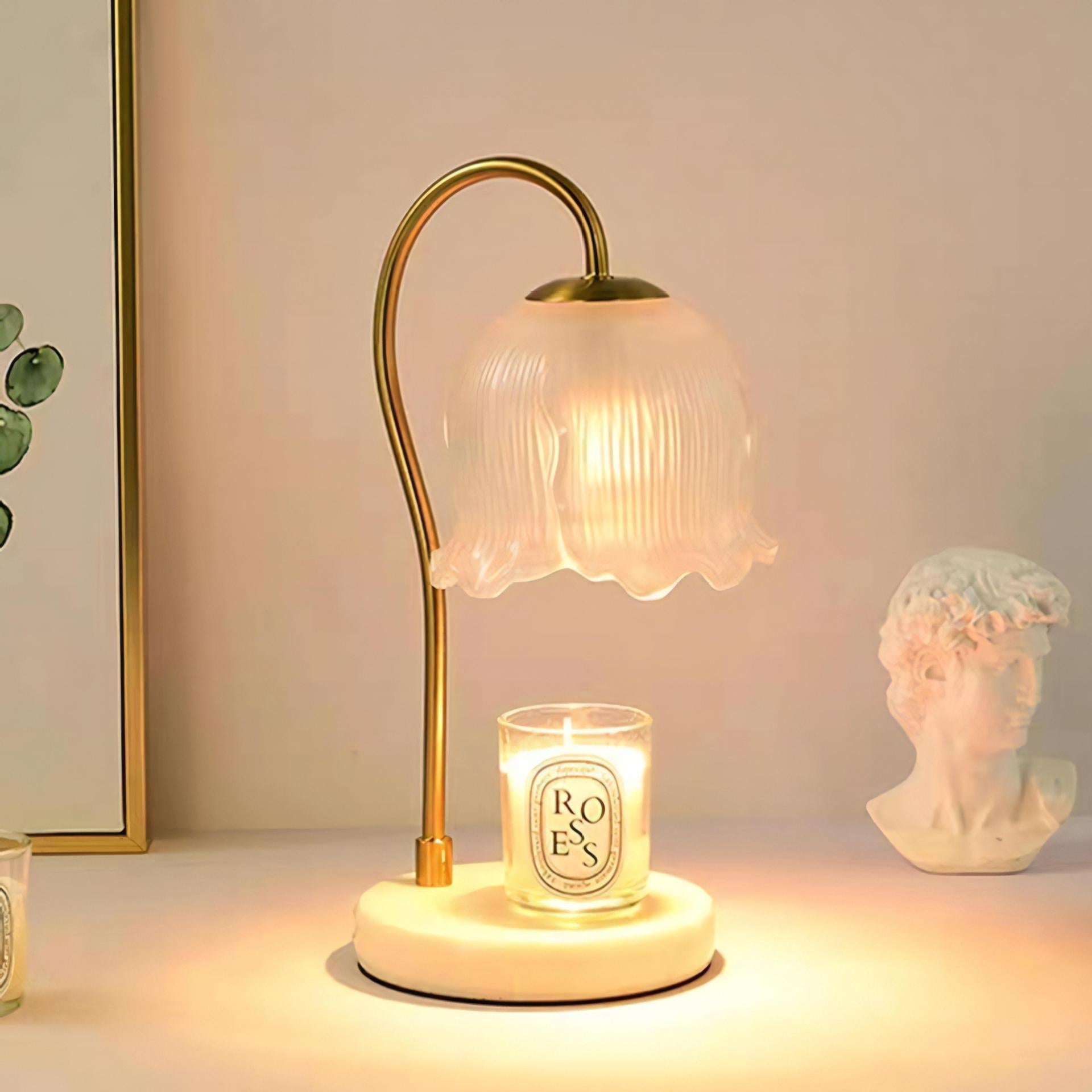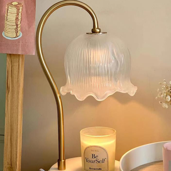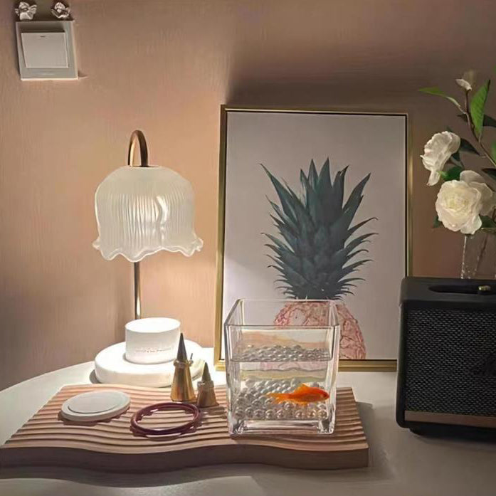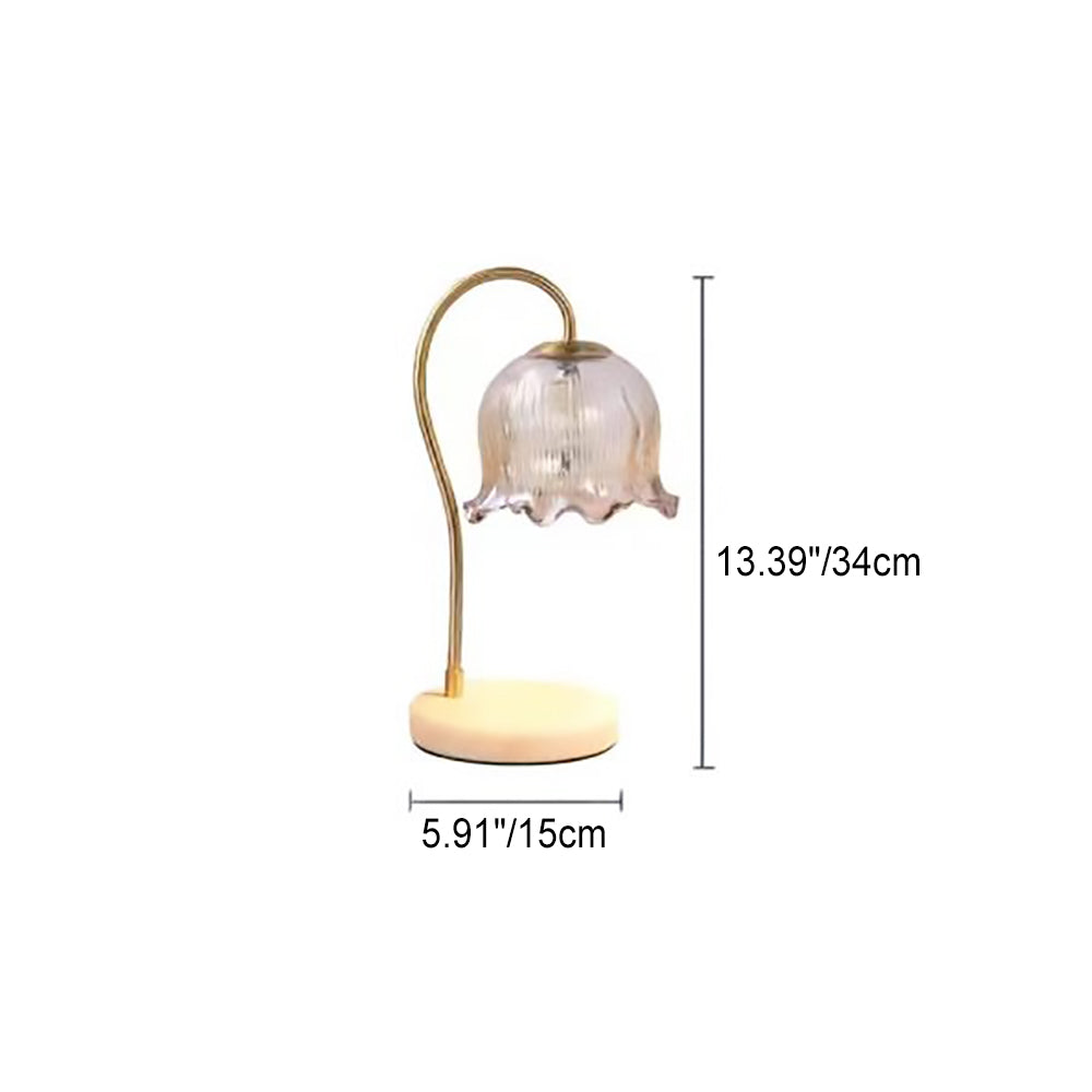 Contemporary Creative Bell Orchid Glass Shade Marble Base 1-Light Melting Wax Table Lamp For Study