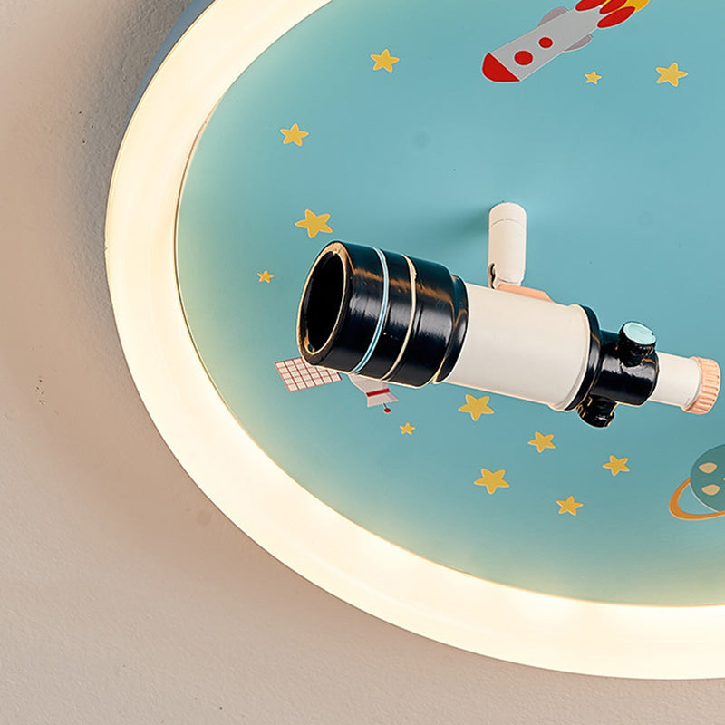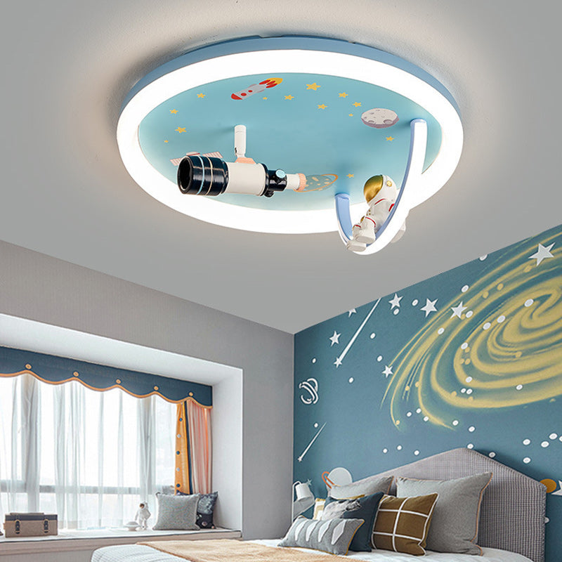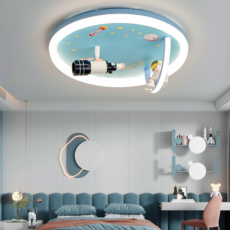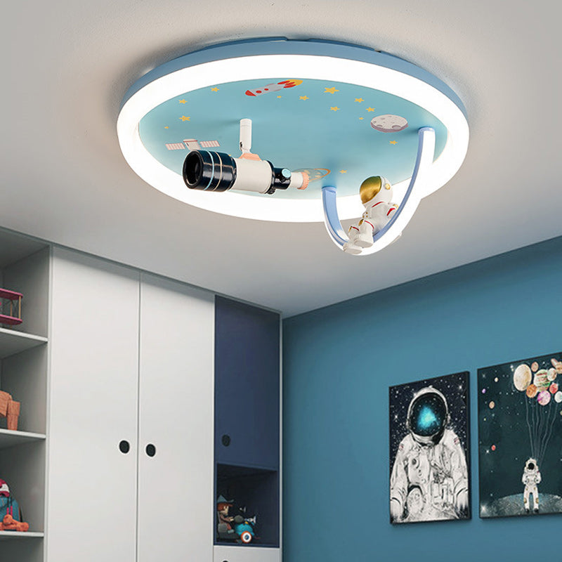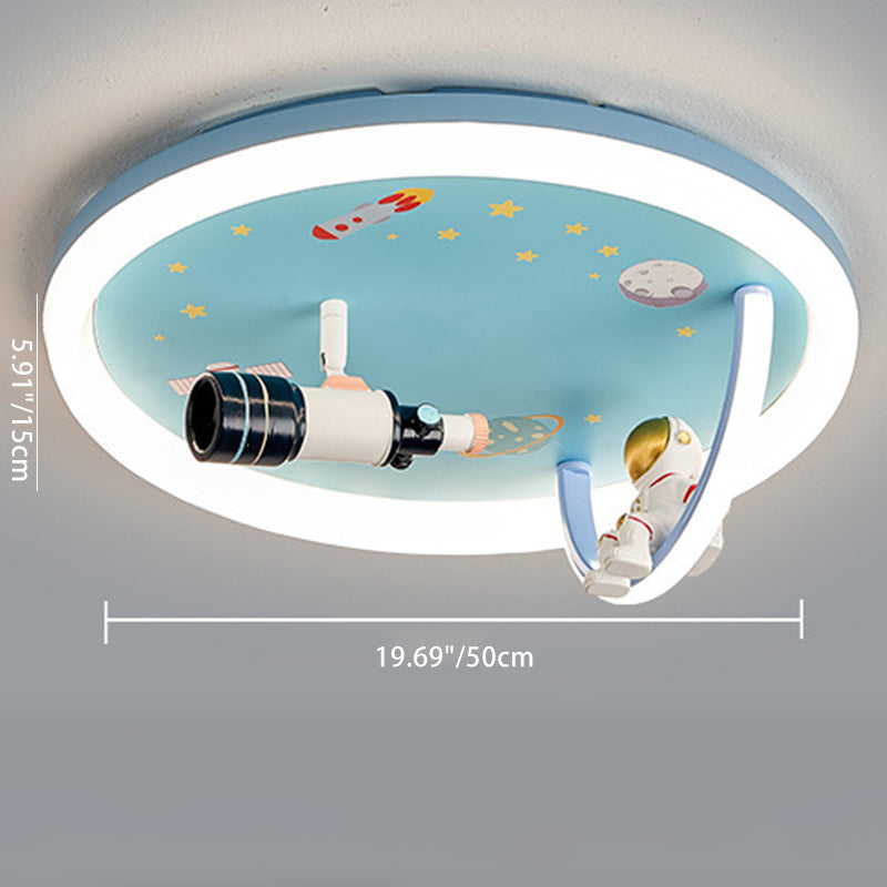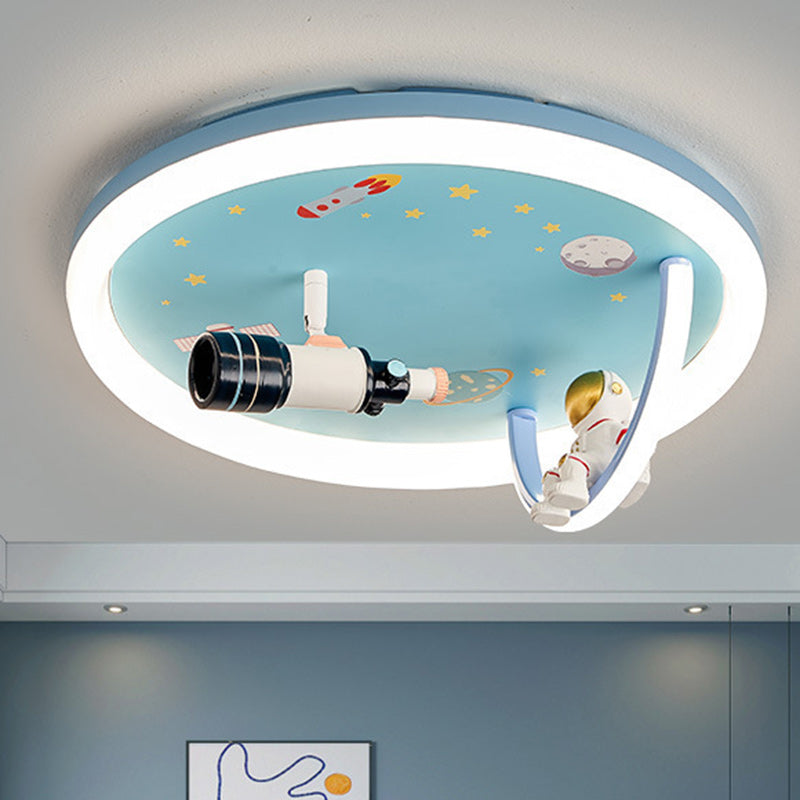 Contemporary Creative Cartoon Kids Astronaut Wizard Telescope Camera Round Arched Iron Resin Acrylic LED Flush Mount Ceiling Light For Bedroom