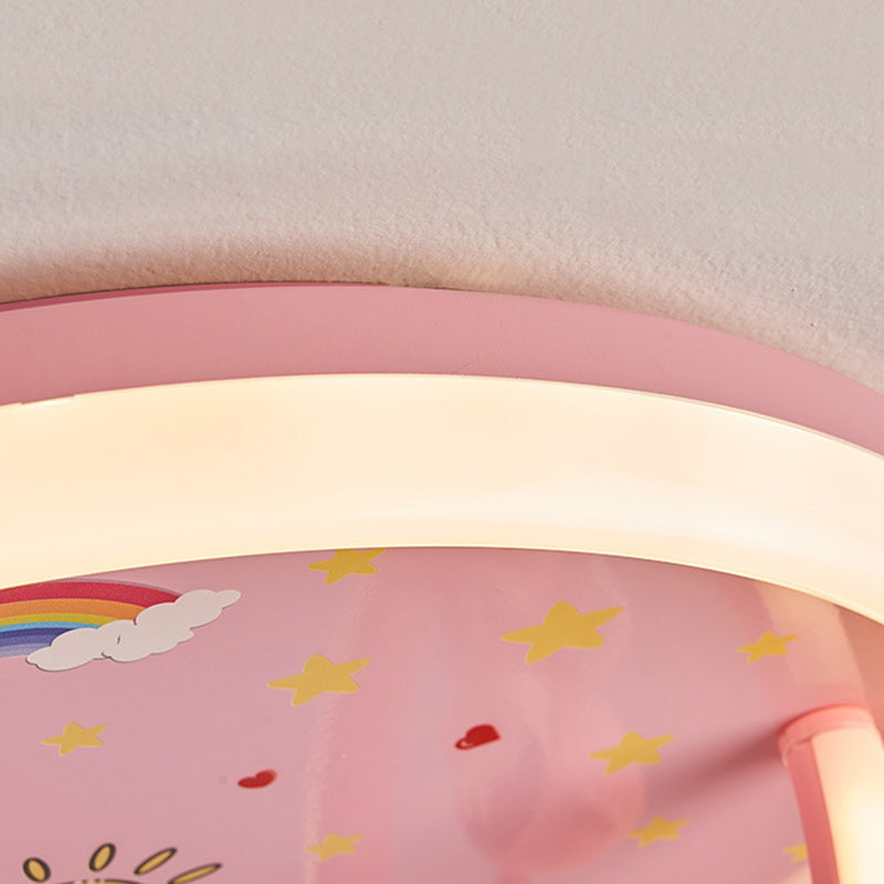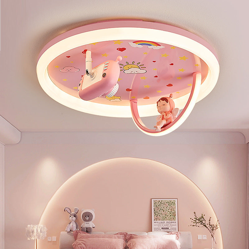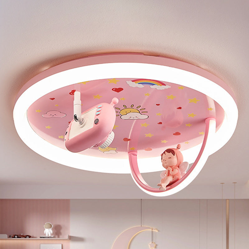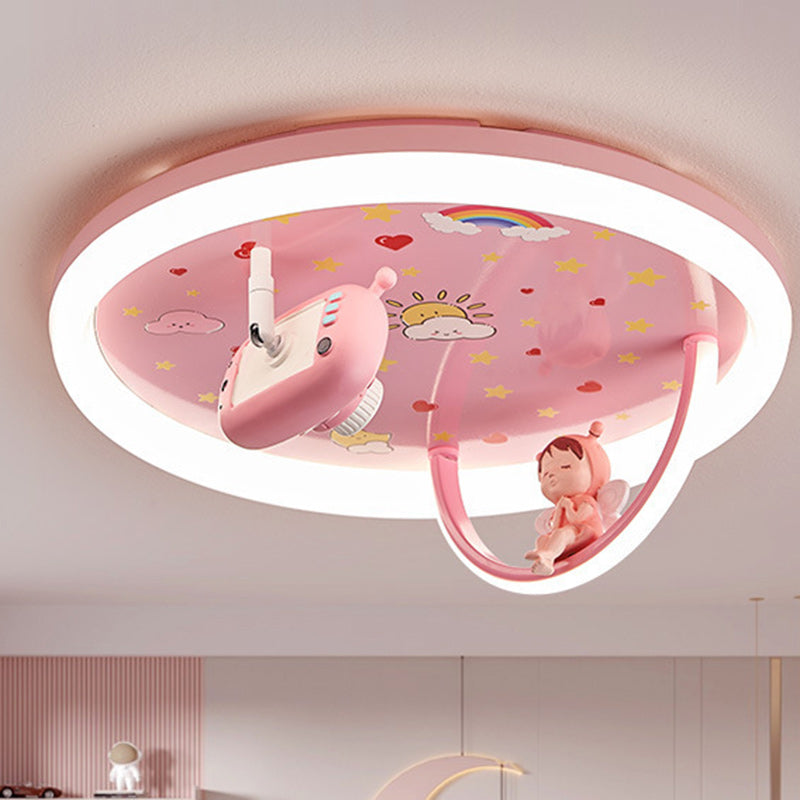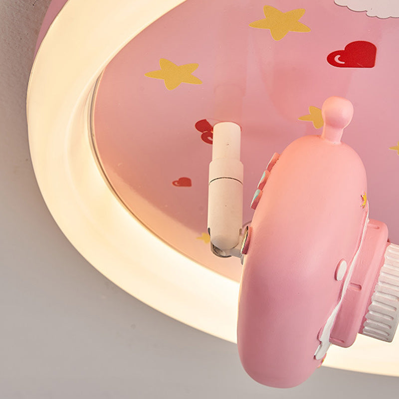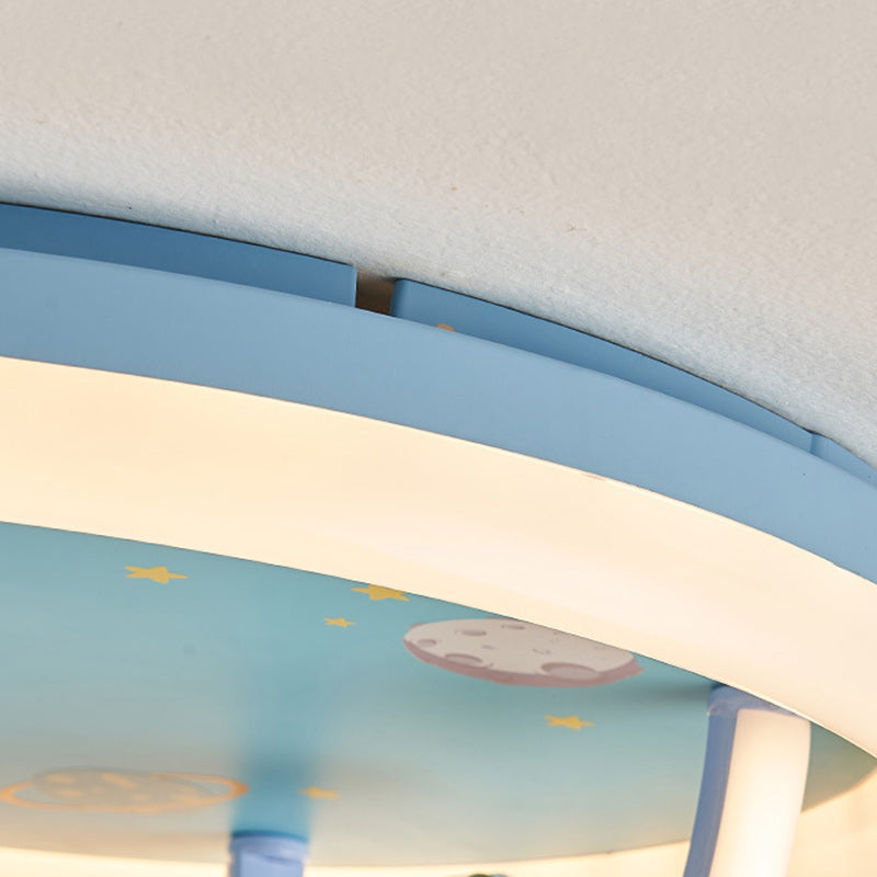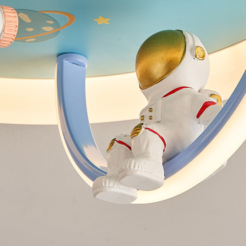 Contemporary Creative Cartoon Kids Astronaut Wizard Telescope Camera Round Arched Iron Resin Acrylic LED Flush Mount Ceiling Light For Bedroom