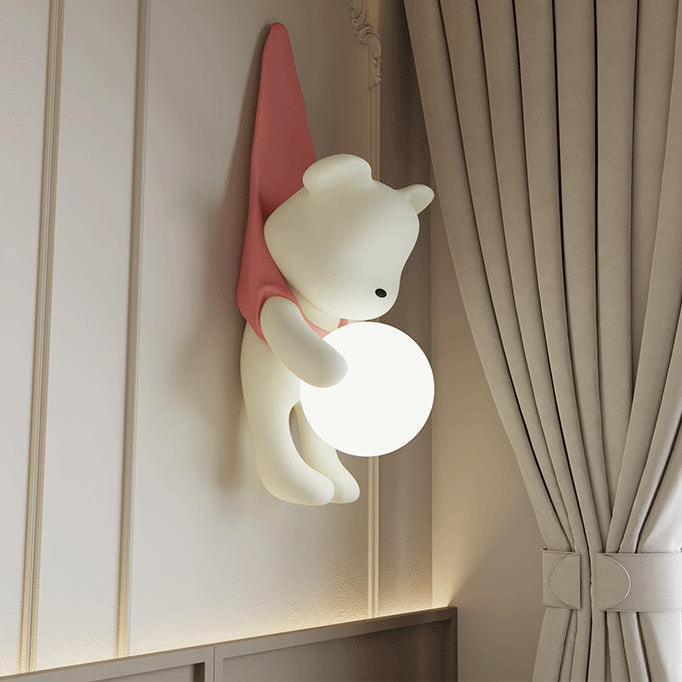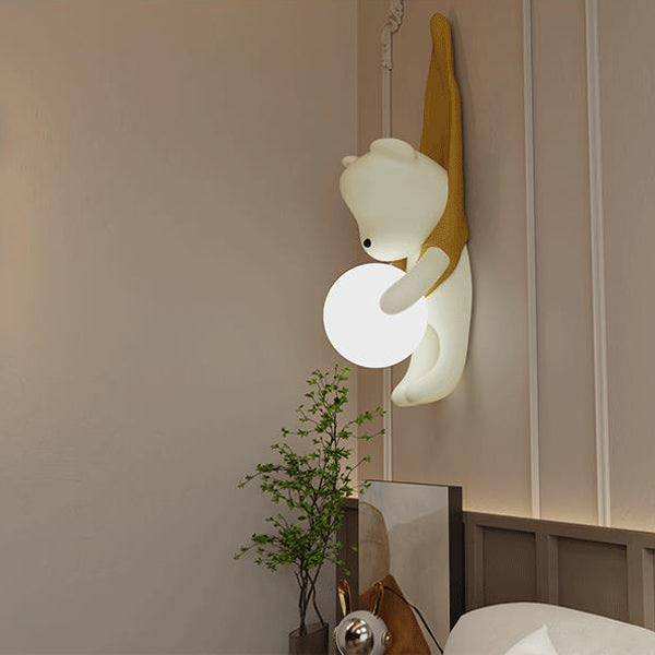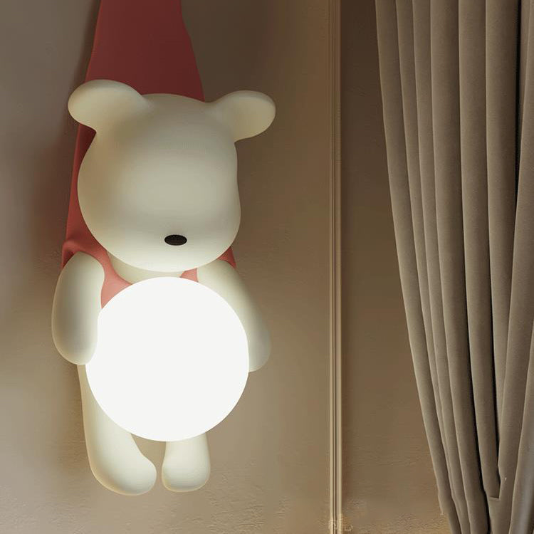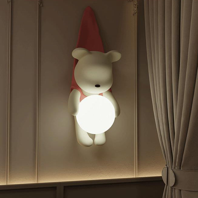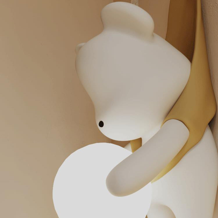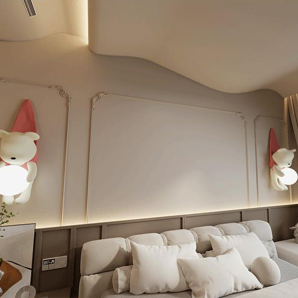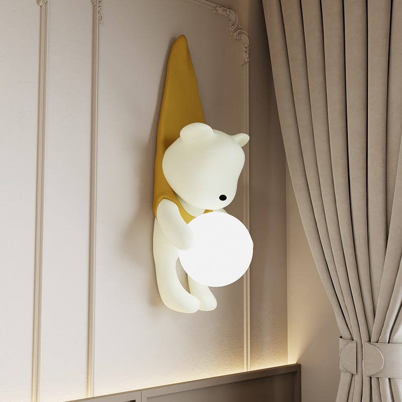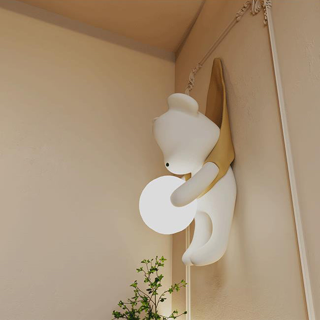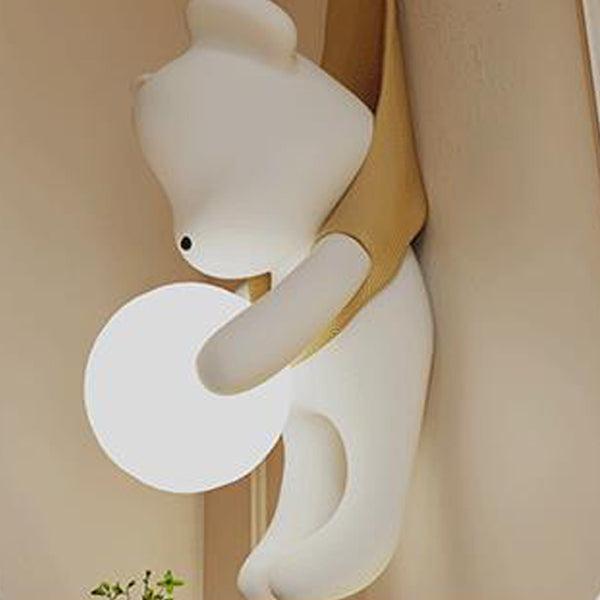 Contemporary Creative Cartoon Kids Bear Resin Plastic 1-Light Wall Sconce Lamp For Bedroom