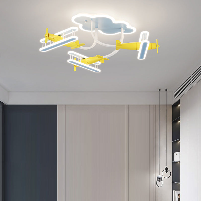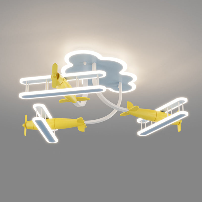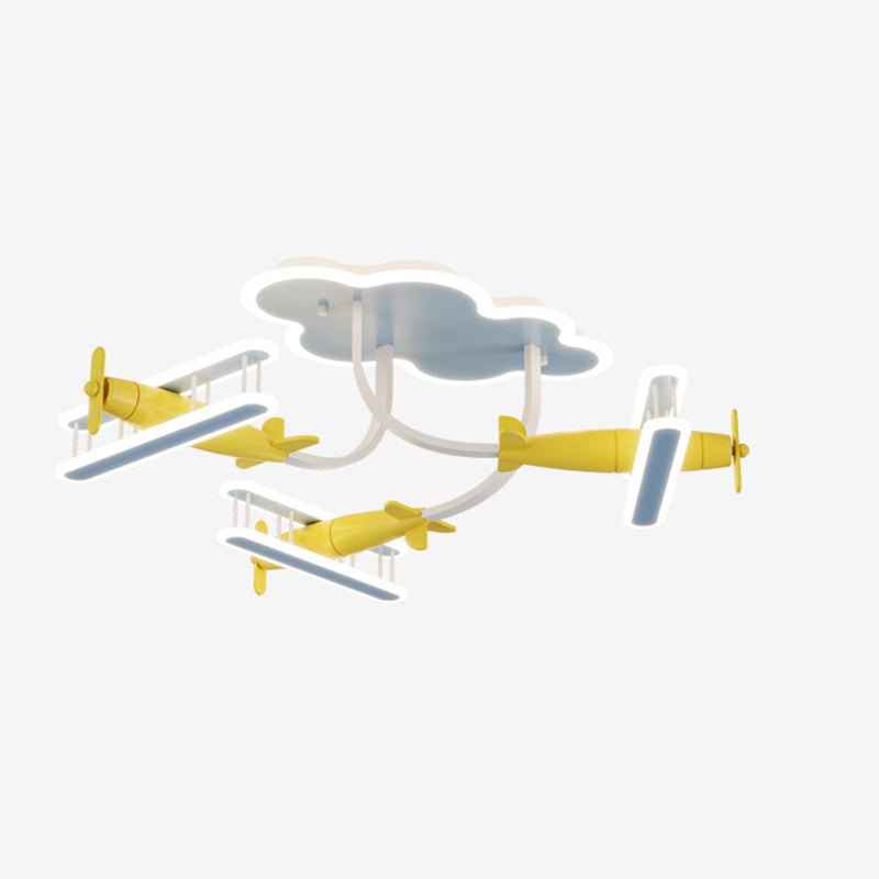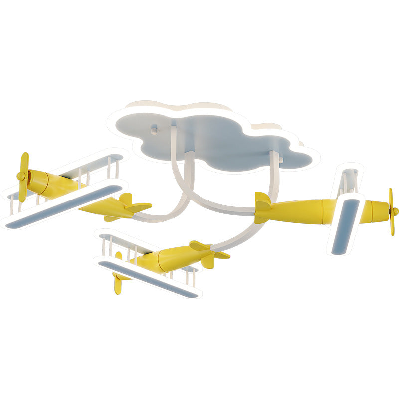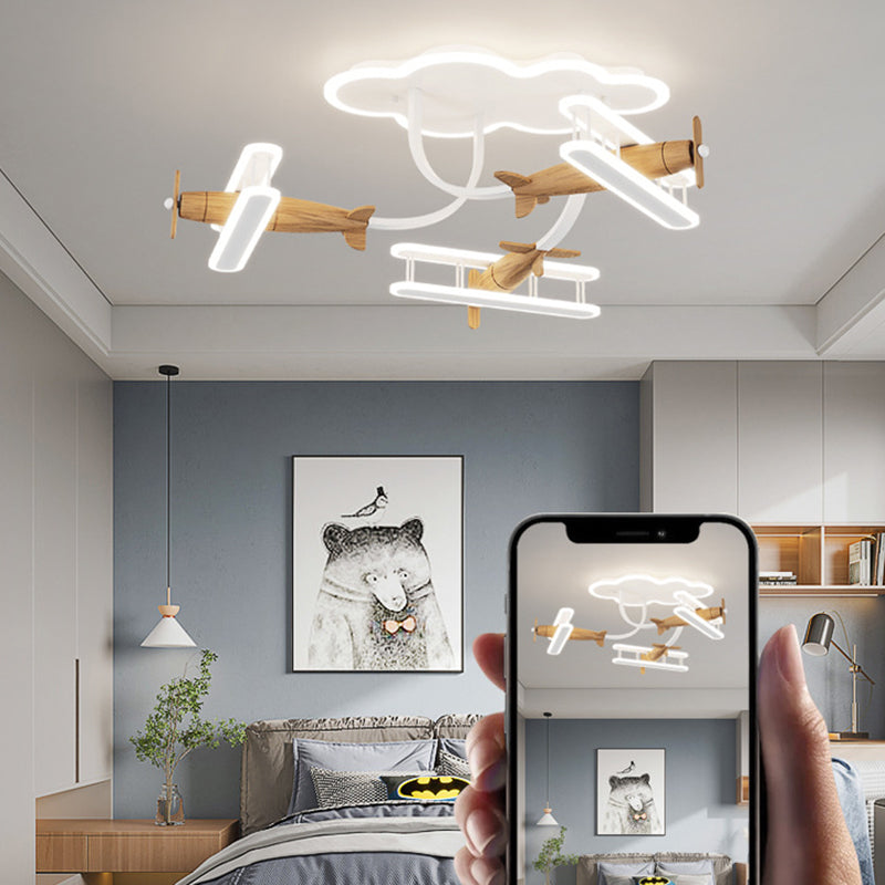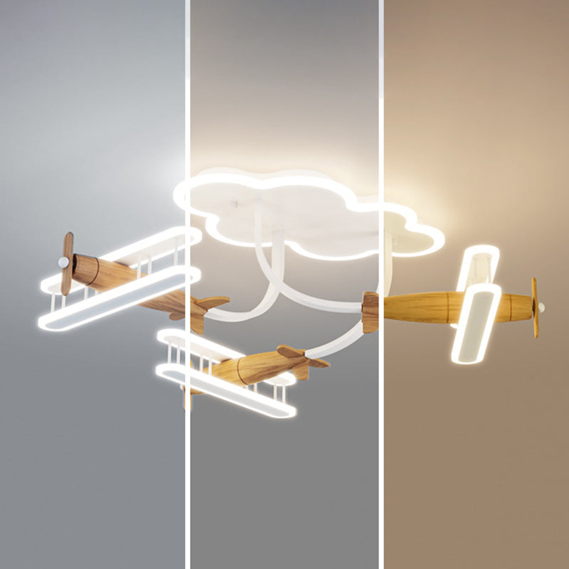 Contemporary Creative Cartoon Solid Wood Plane Acrylic LED Semi-Flush Mount Ceiling Light For Living Room