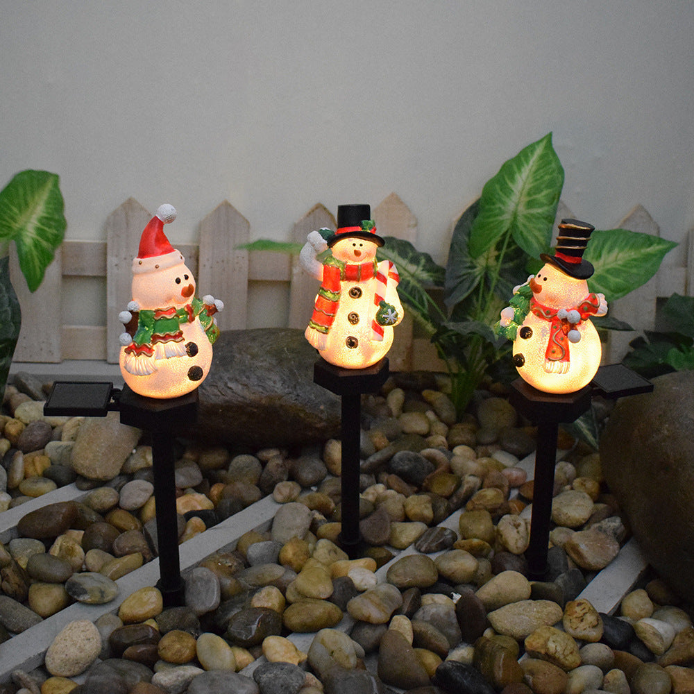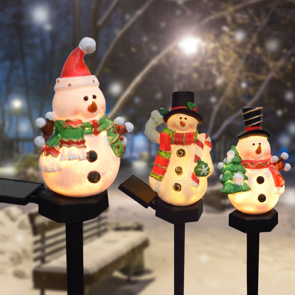 Contemporary Creative Christmas Resin Snowman LED Solar Decoration Ground Insert Landscape Light For Garden