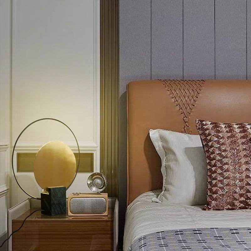 Contemporary Creative Circle Metal Ring Marble Base LED Table Lamp For Bedroom