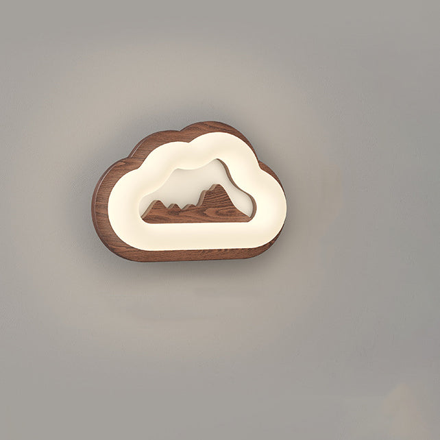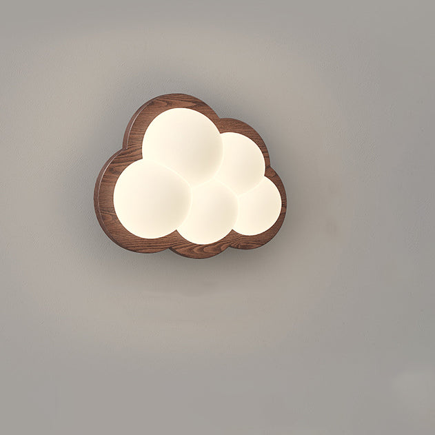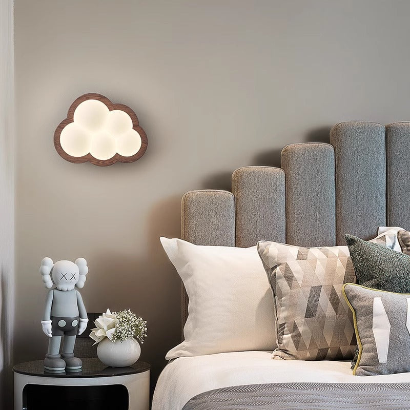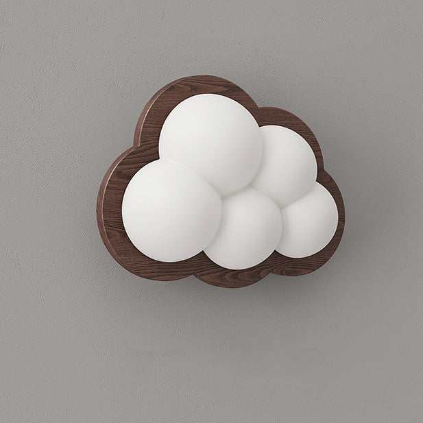 Contemporary Creative Cloud Wood Base PE Shade LED Wall Sconce Lamp For Bedroom