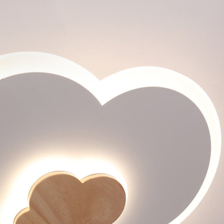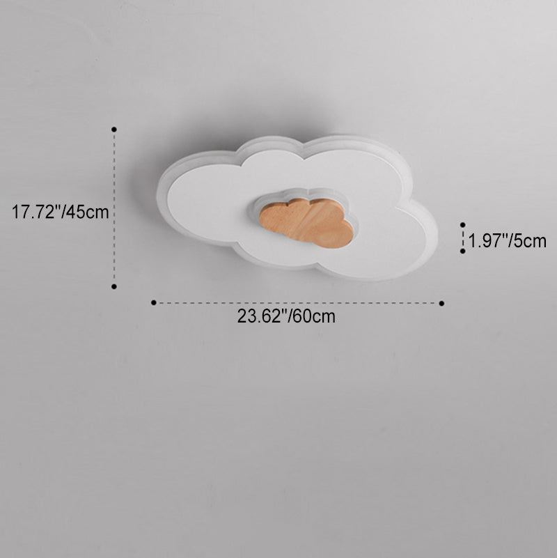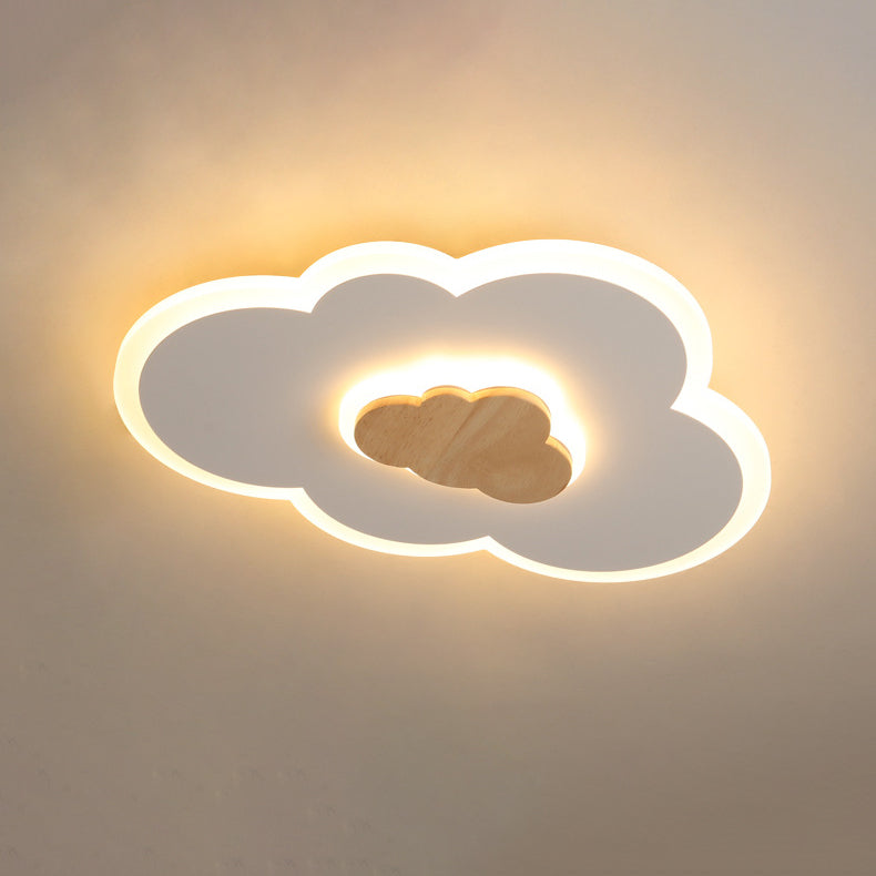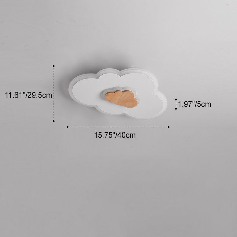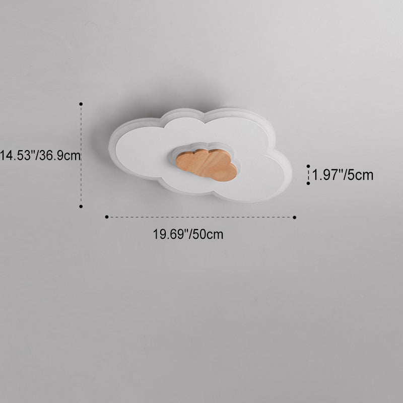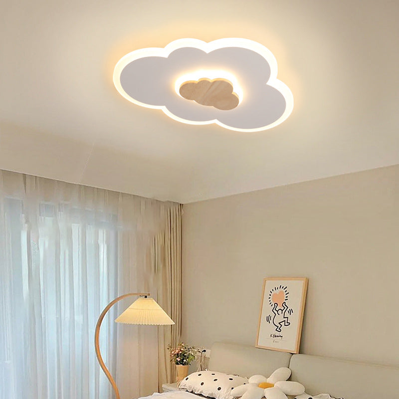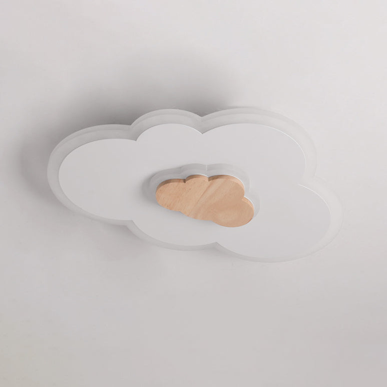 Contemporary Creative Clouds Wood Iron Acrylic LED Flush Mount Ceiling Light For Bedroom