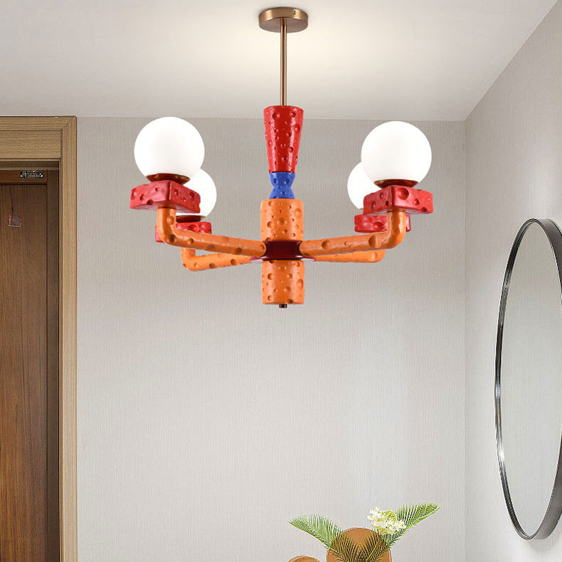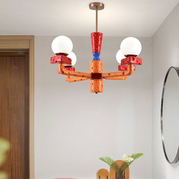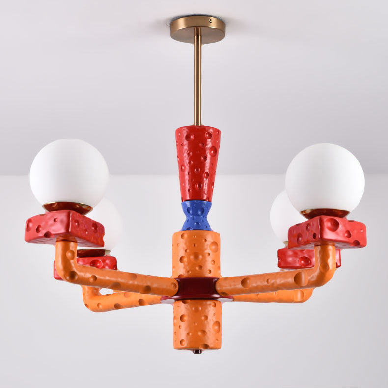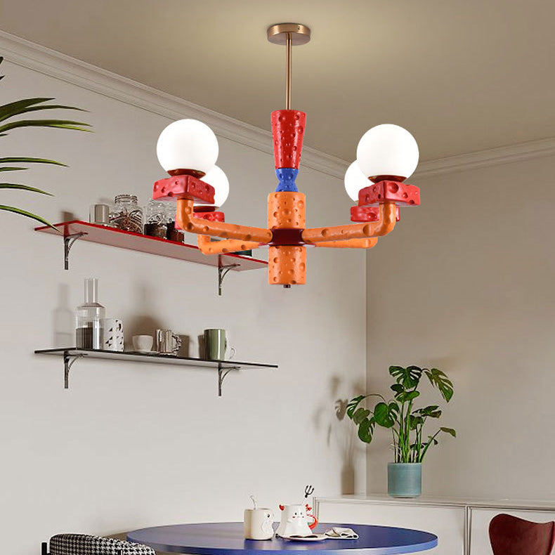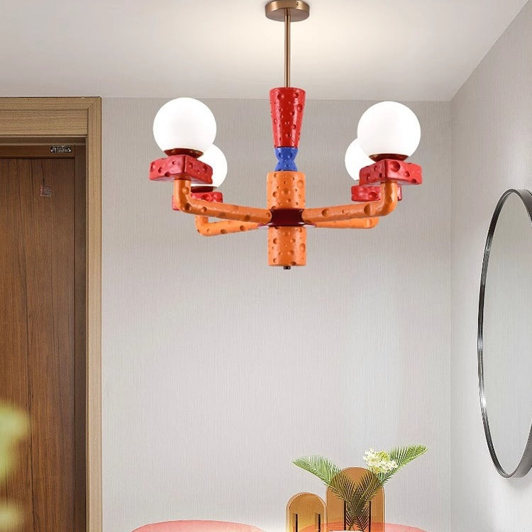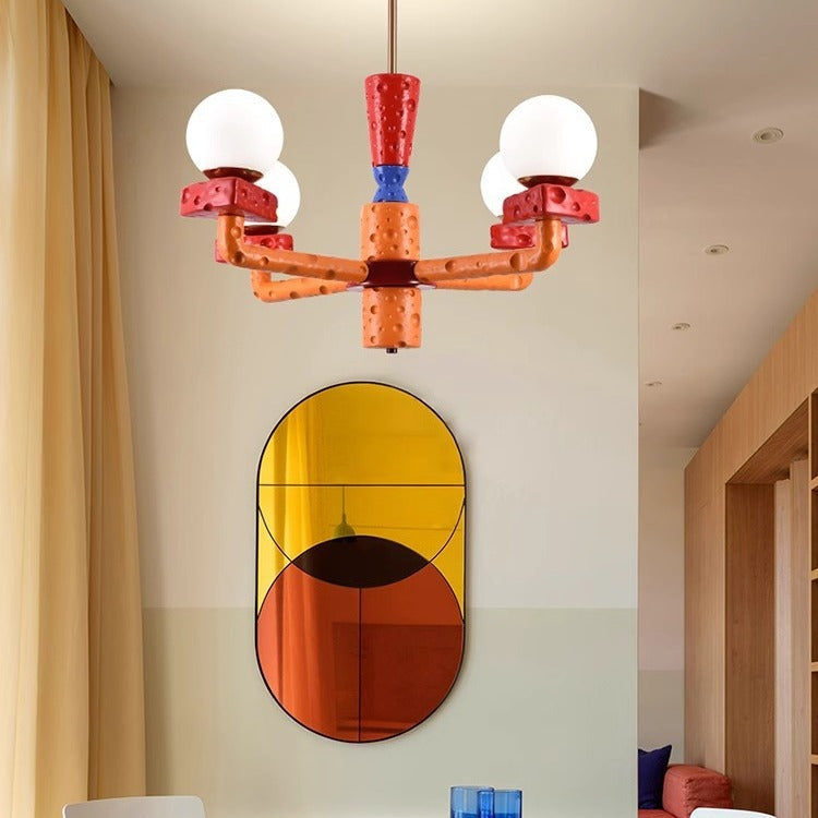 Contemporary Creative Colorblock Geometry Block Resin Cheese Design 4-Light Chandelier For Dining Room