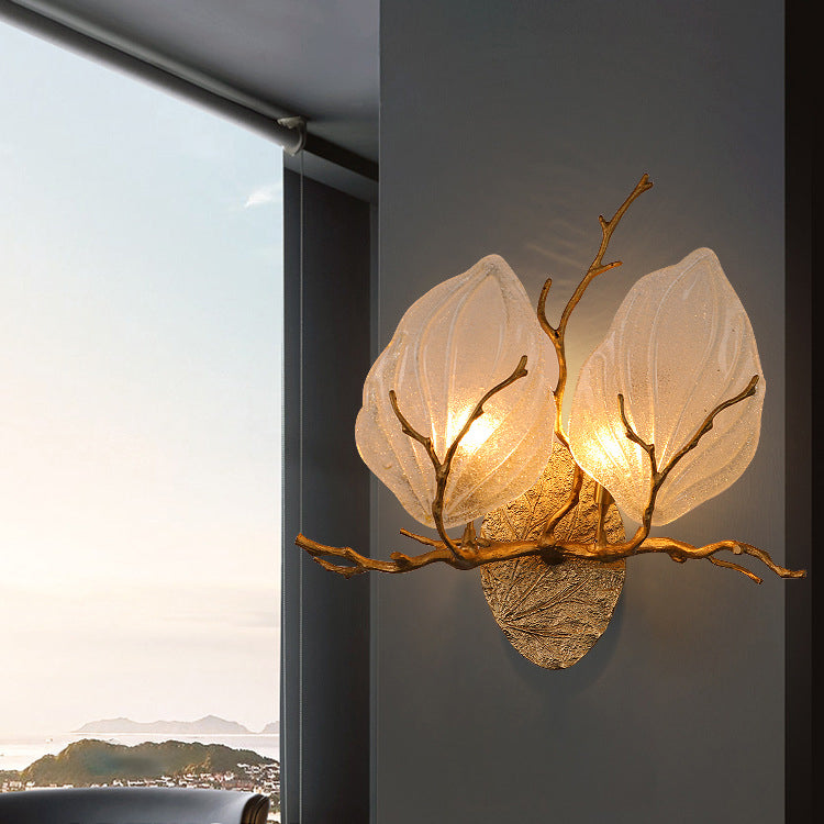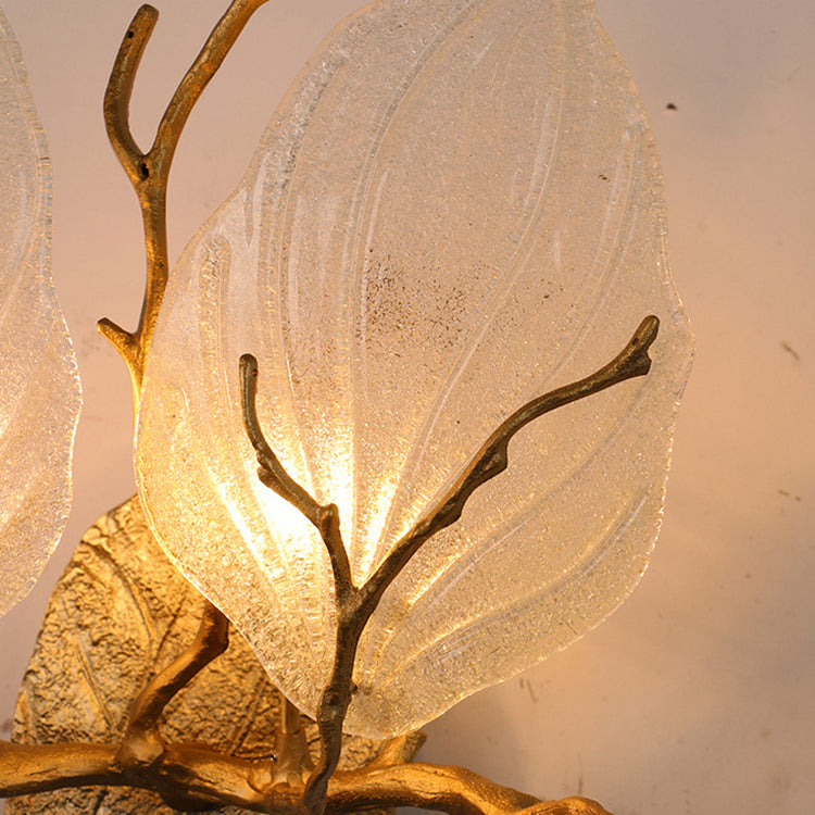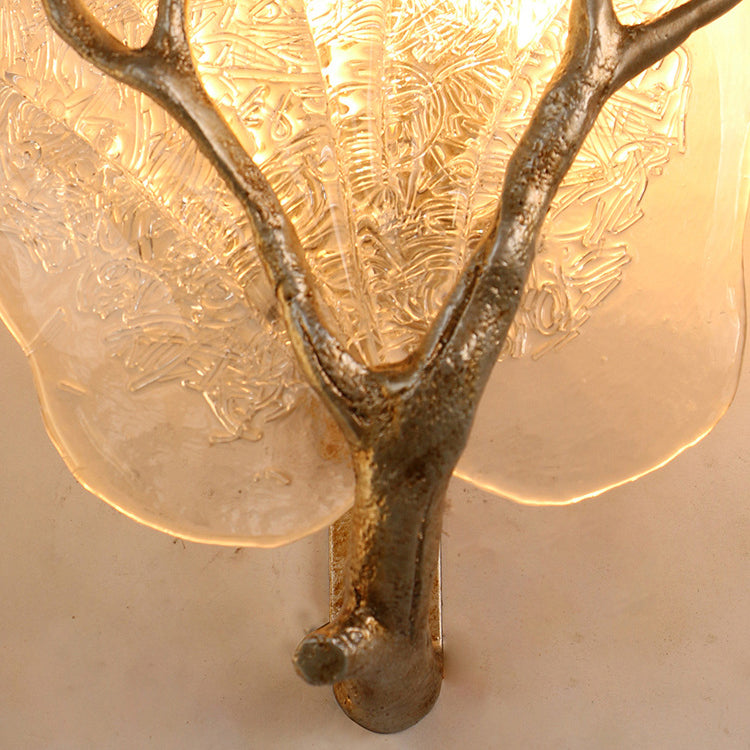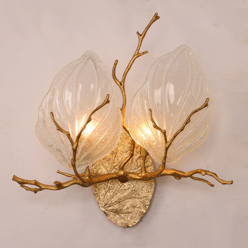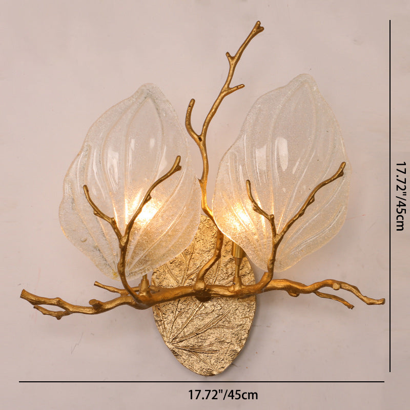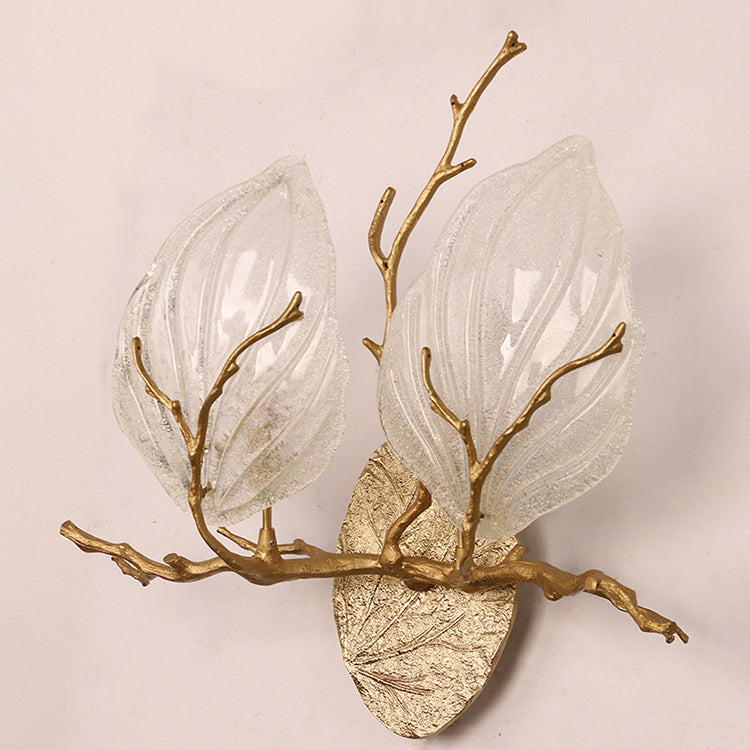 Contemporary Creative Copper Glass Leave Branch 1/2 Light Wall Sconce Lamp For Living Room