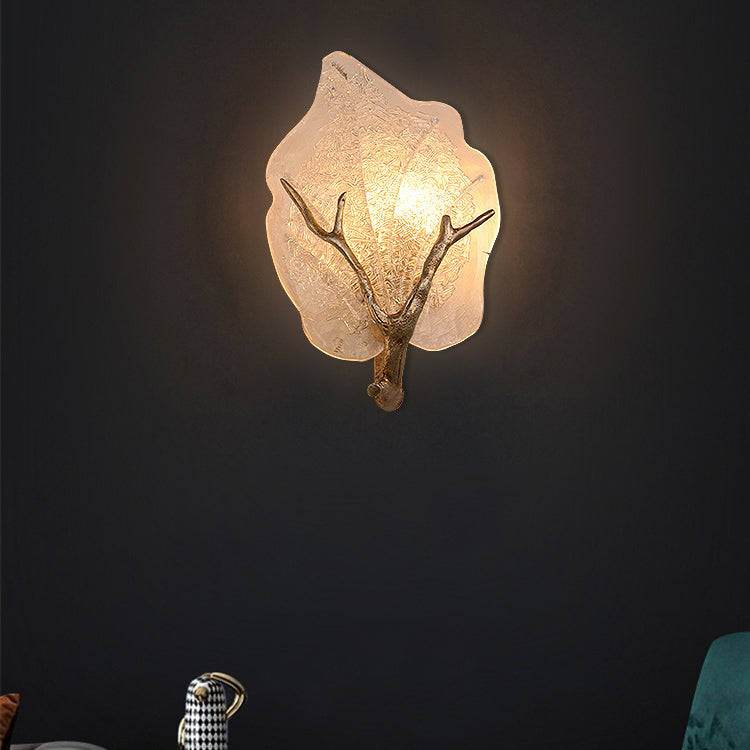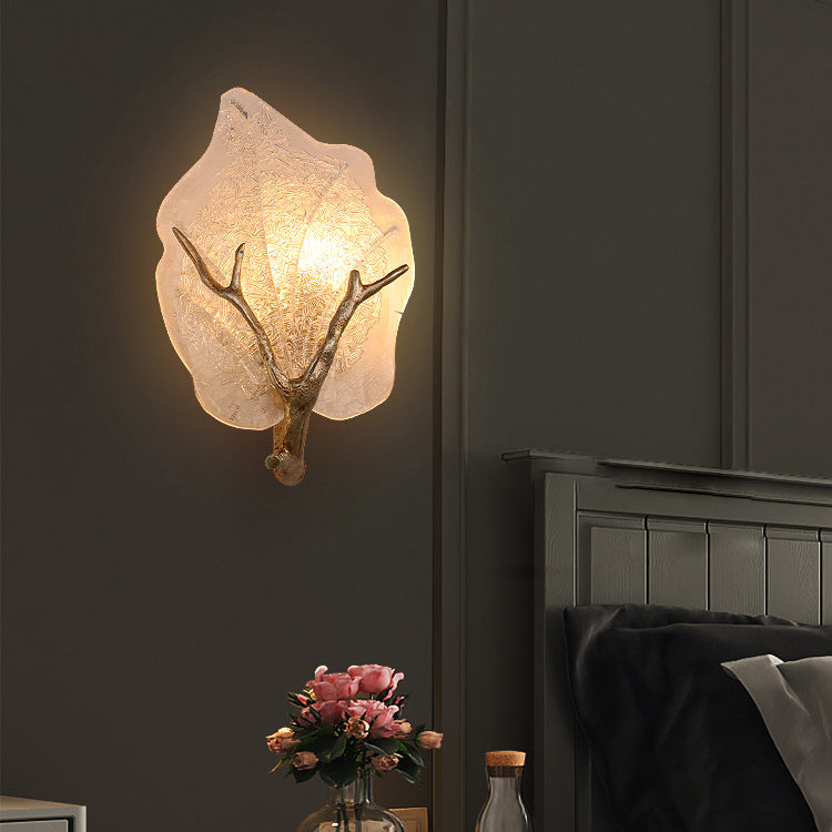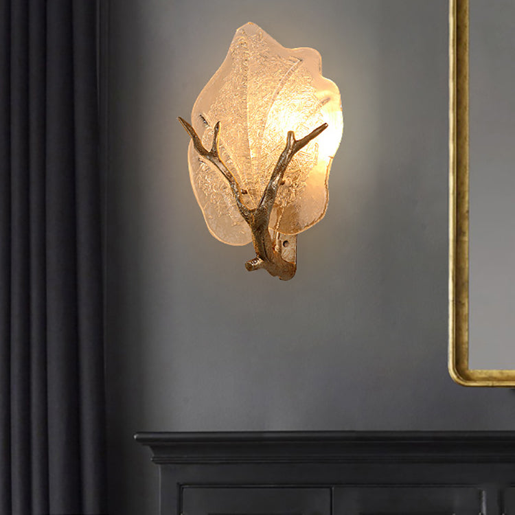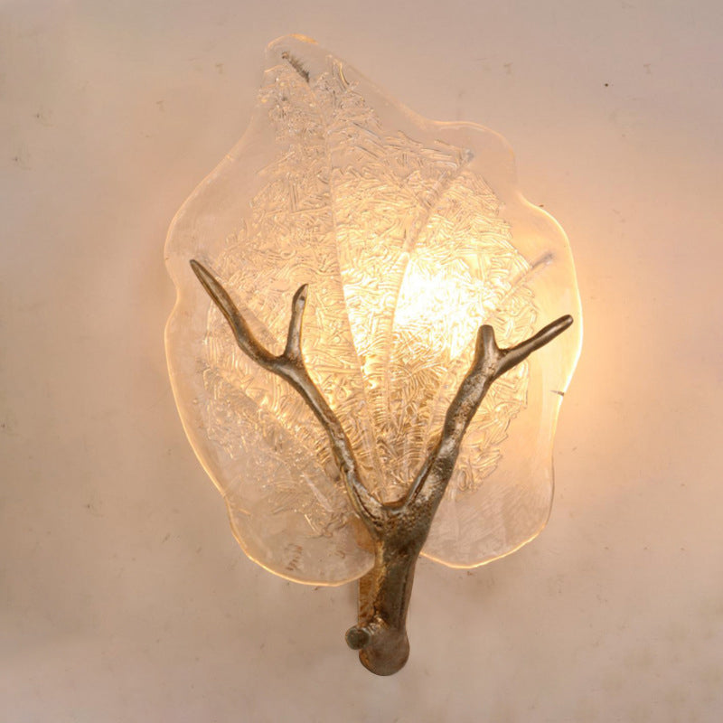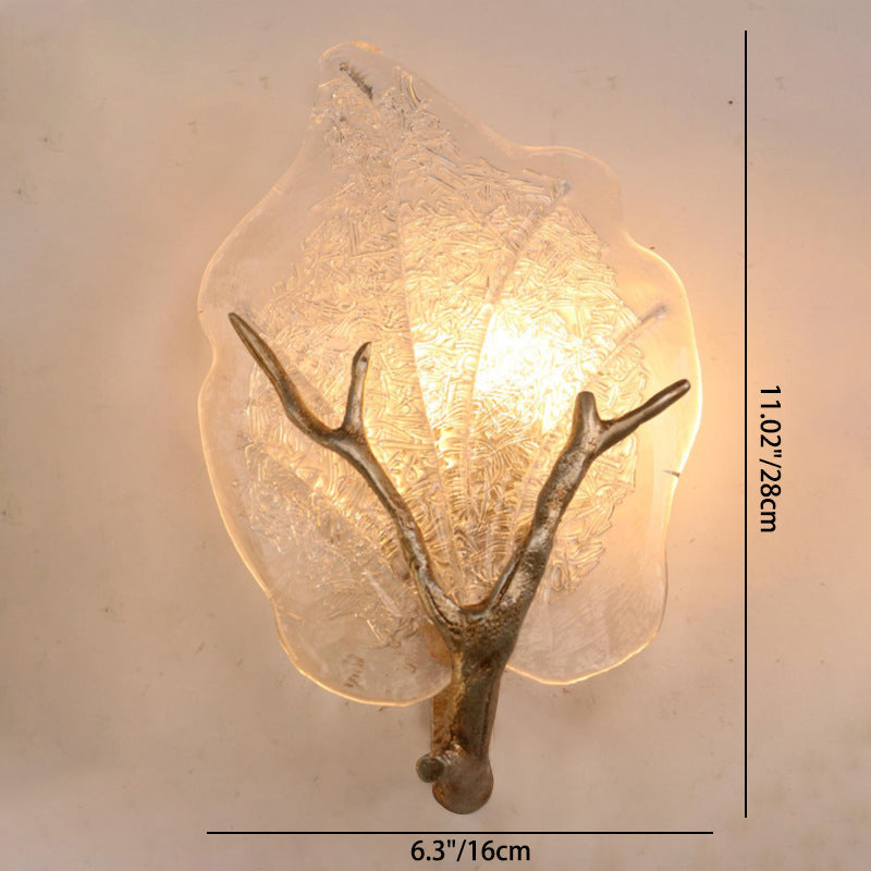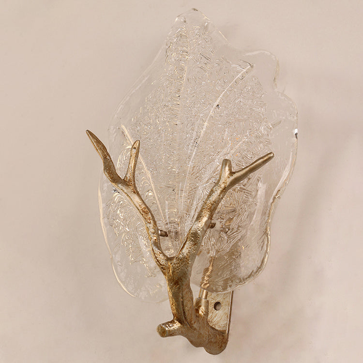 Contemporary Creative Copper Glass Leave Branch 1/2 Light Wall Sconce Lamp For Living Room