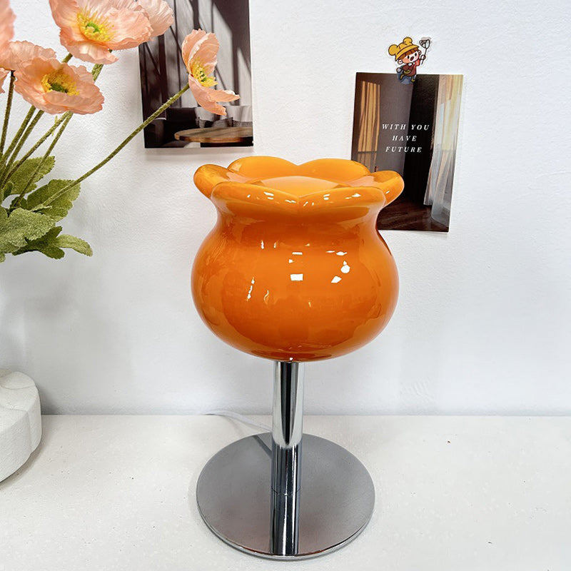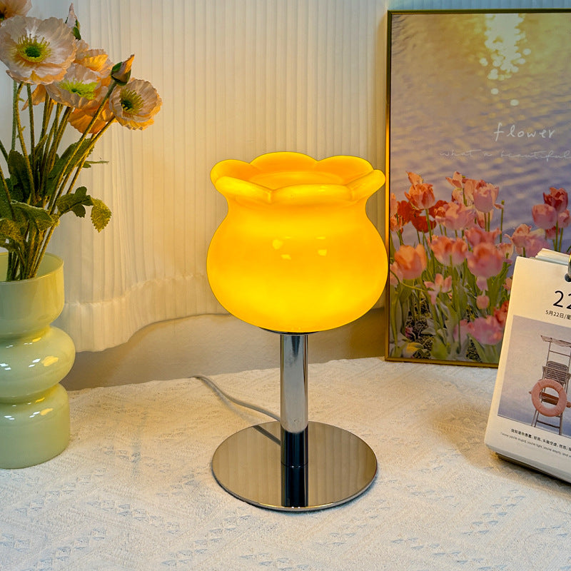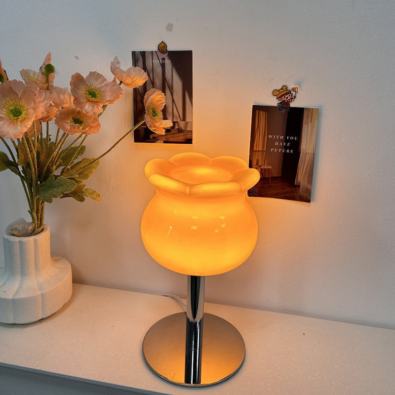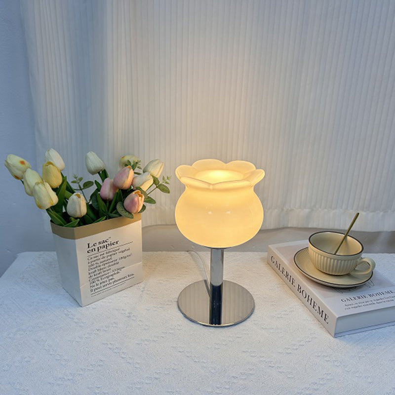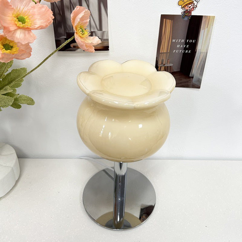 Contemporary Creative Cream Bell Orchid Flower Round Iron Glass 1-Light Table Lamp For Bedroom