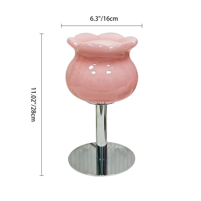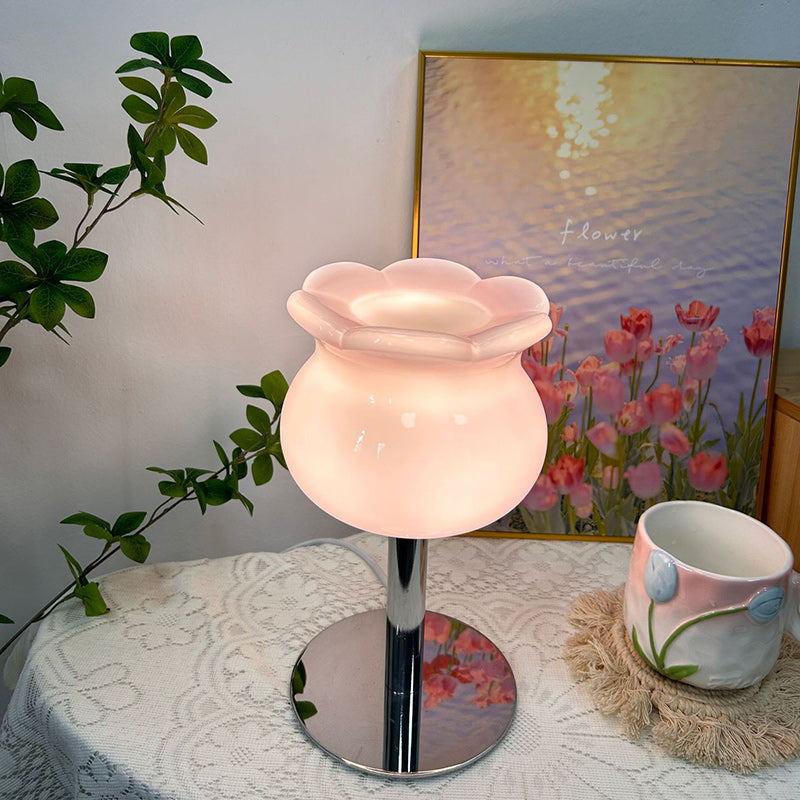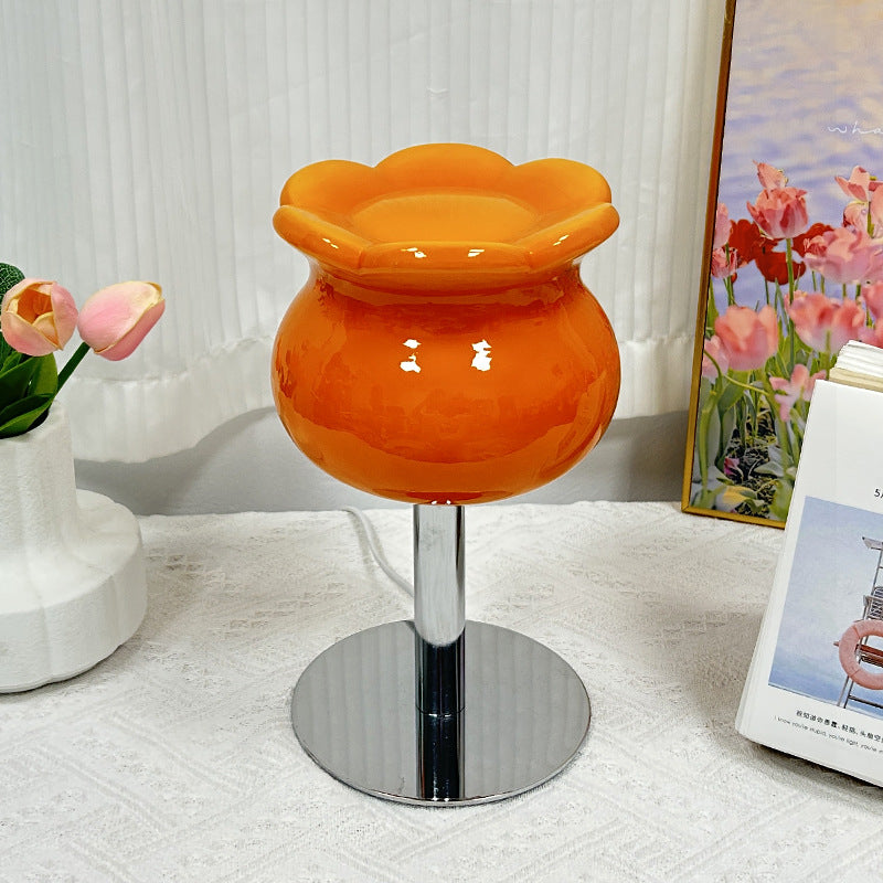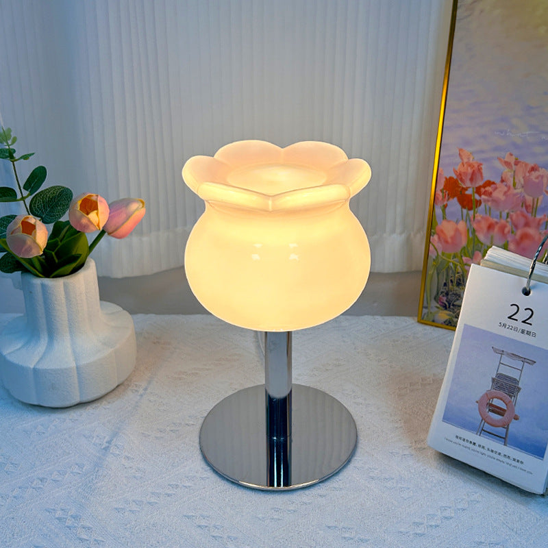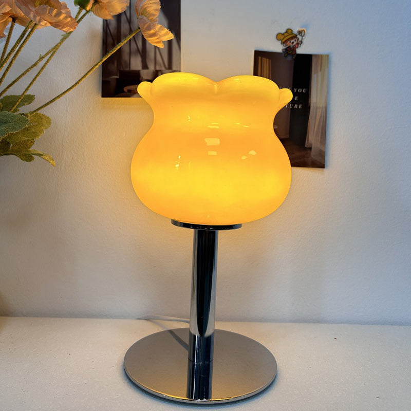 Contemporary Creative Cream Bell Orchid Flower Round Iron Glass 1-Light Table Lamp For Bedroom