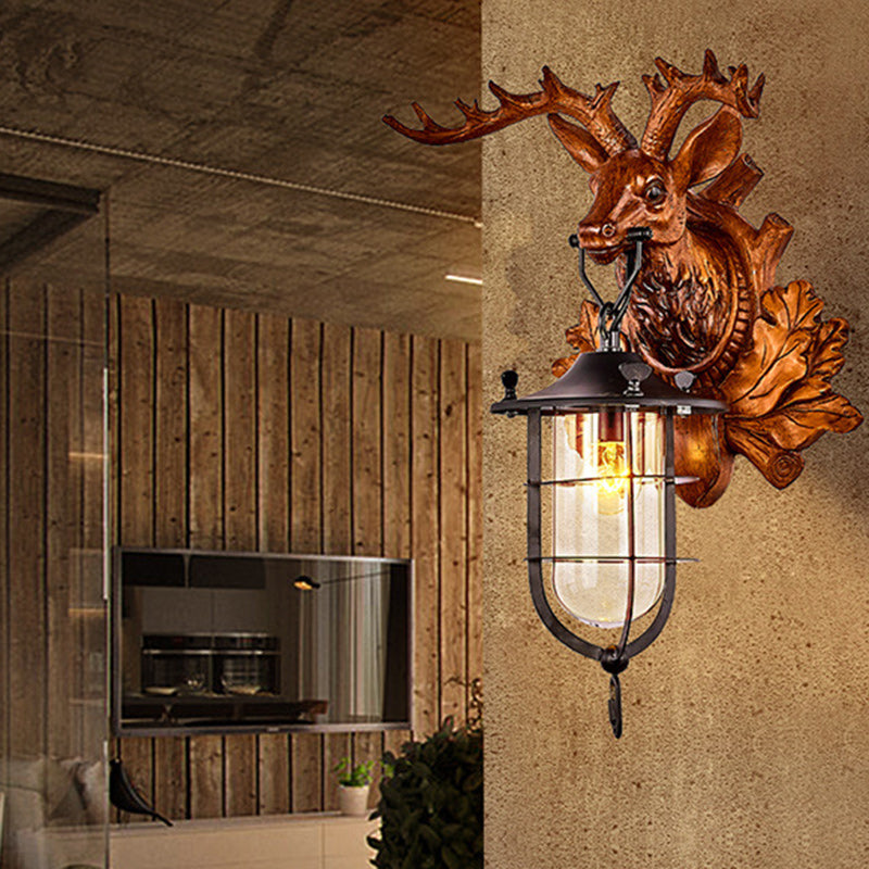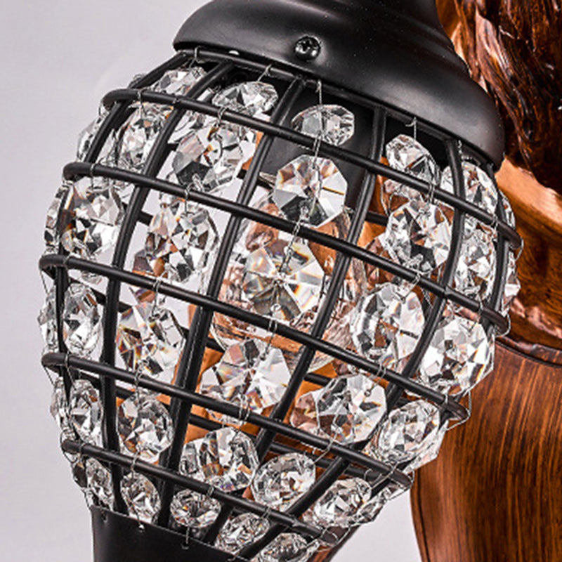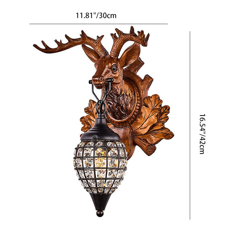Contemporary Creative Deer Antler Iron Resin Frame Crystal Shade 1-Light Wall Sconce Lamp For Living Room