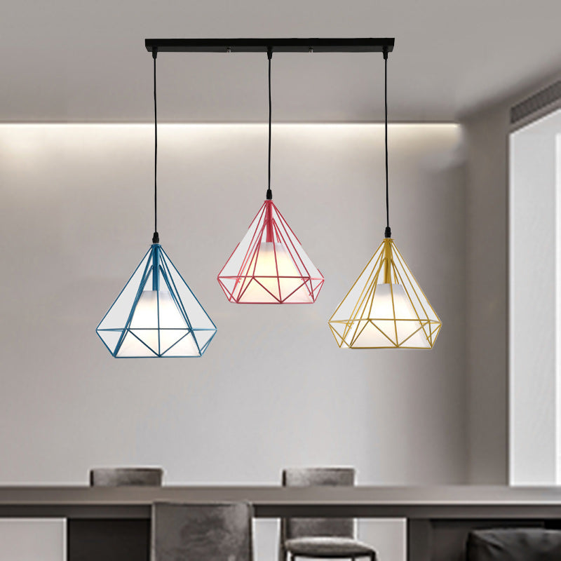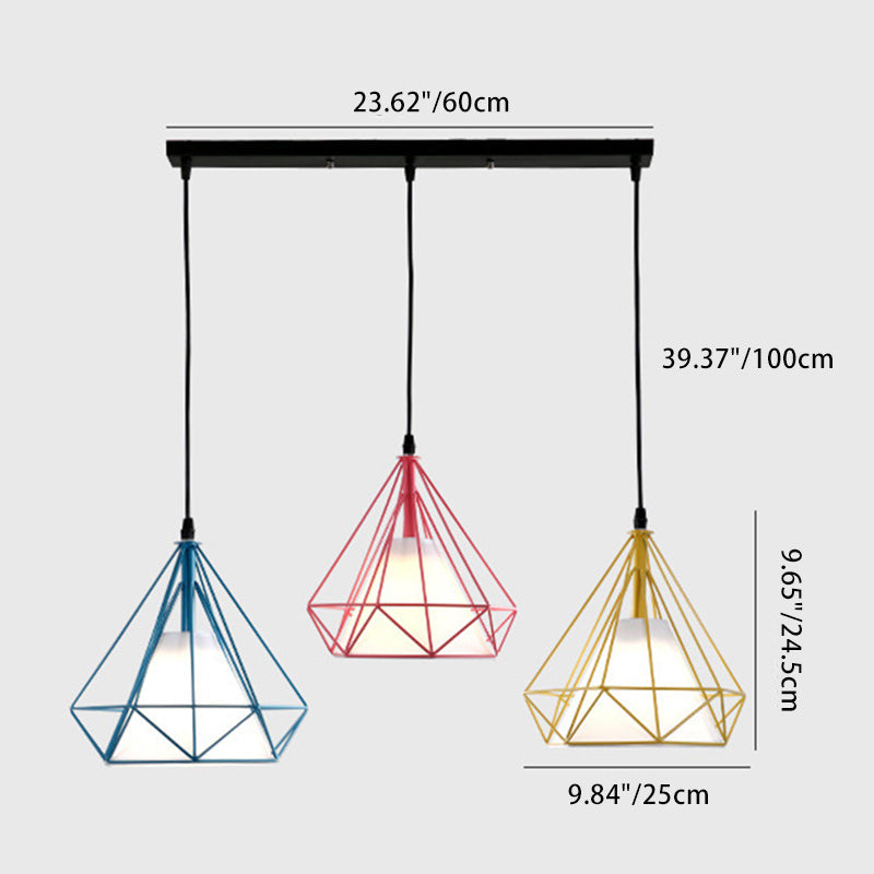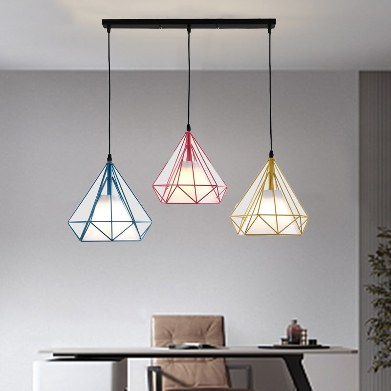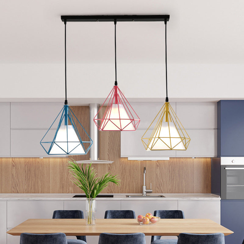 Contemporary Creative Diamond Iron 3-Light Chandeliers Island Light For Dining Room