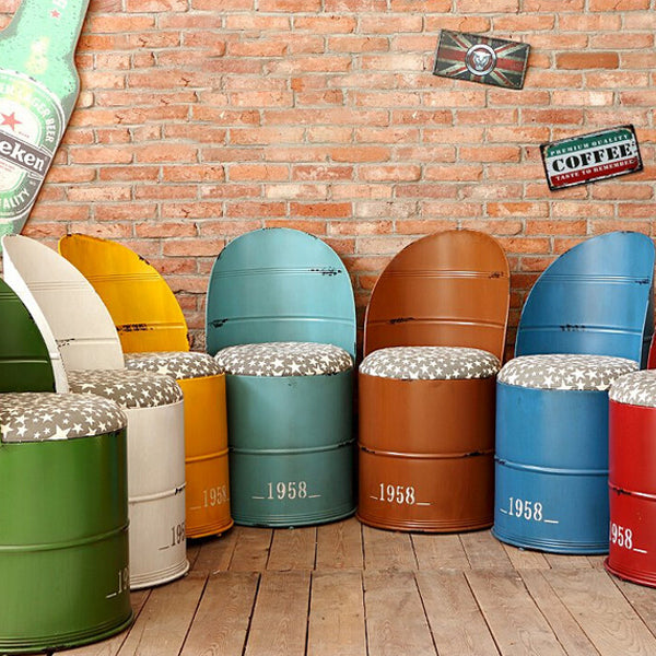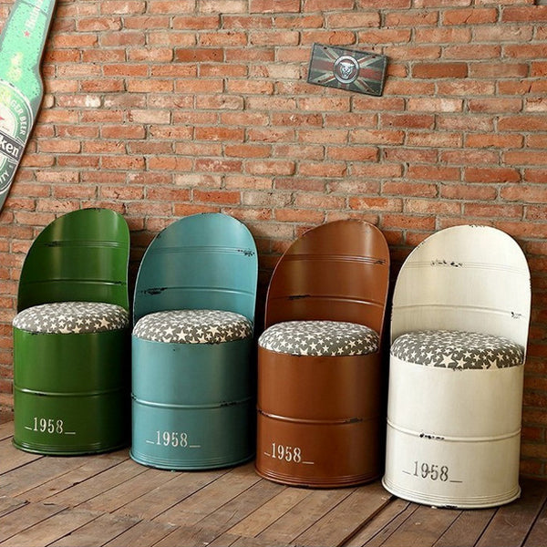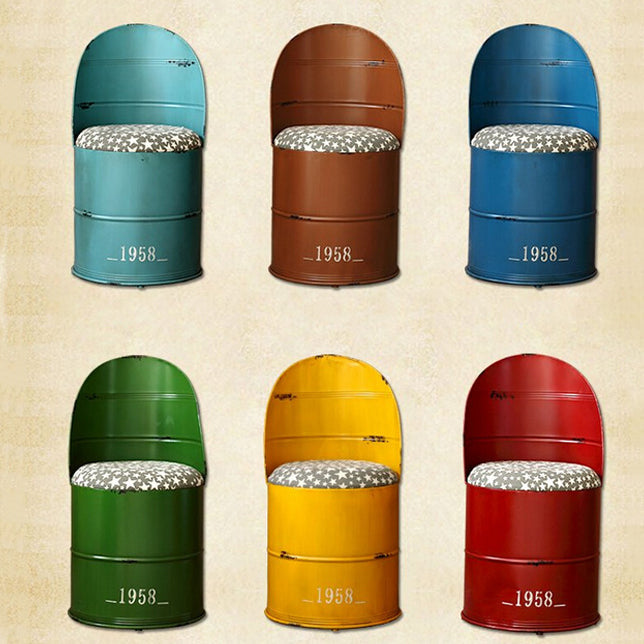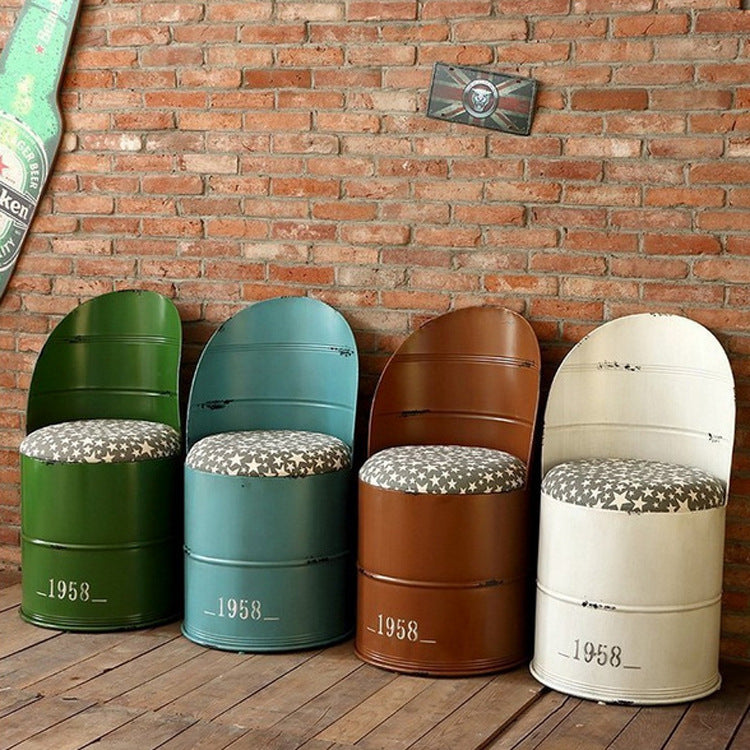 Contemporary Creative Distressed Iron Bucket Bar Stool Arc Back For Dining Room