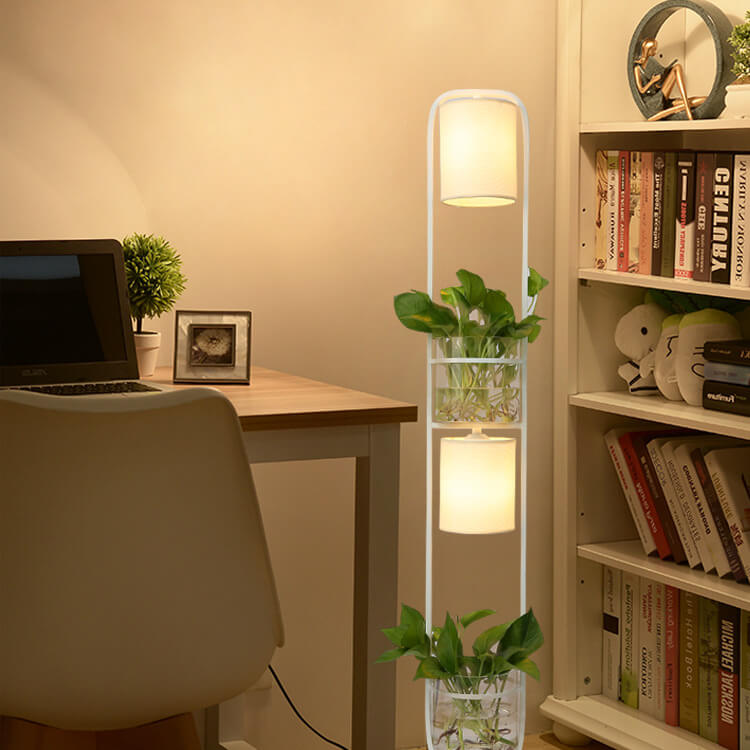 Contemporary Creative Fabric Iron Frame Hydroponic Green Plant Decor 2-Light Standing Floor Lamp For Home Office