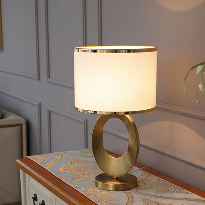 Contemporary Creative Fabric Metal Round-Ring 1-Light Table Lamp For Bedroom & Living Room