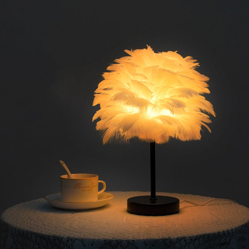 Contemporary Creative Feather USB LED Table Lamp For Bedroom