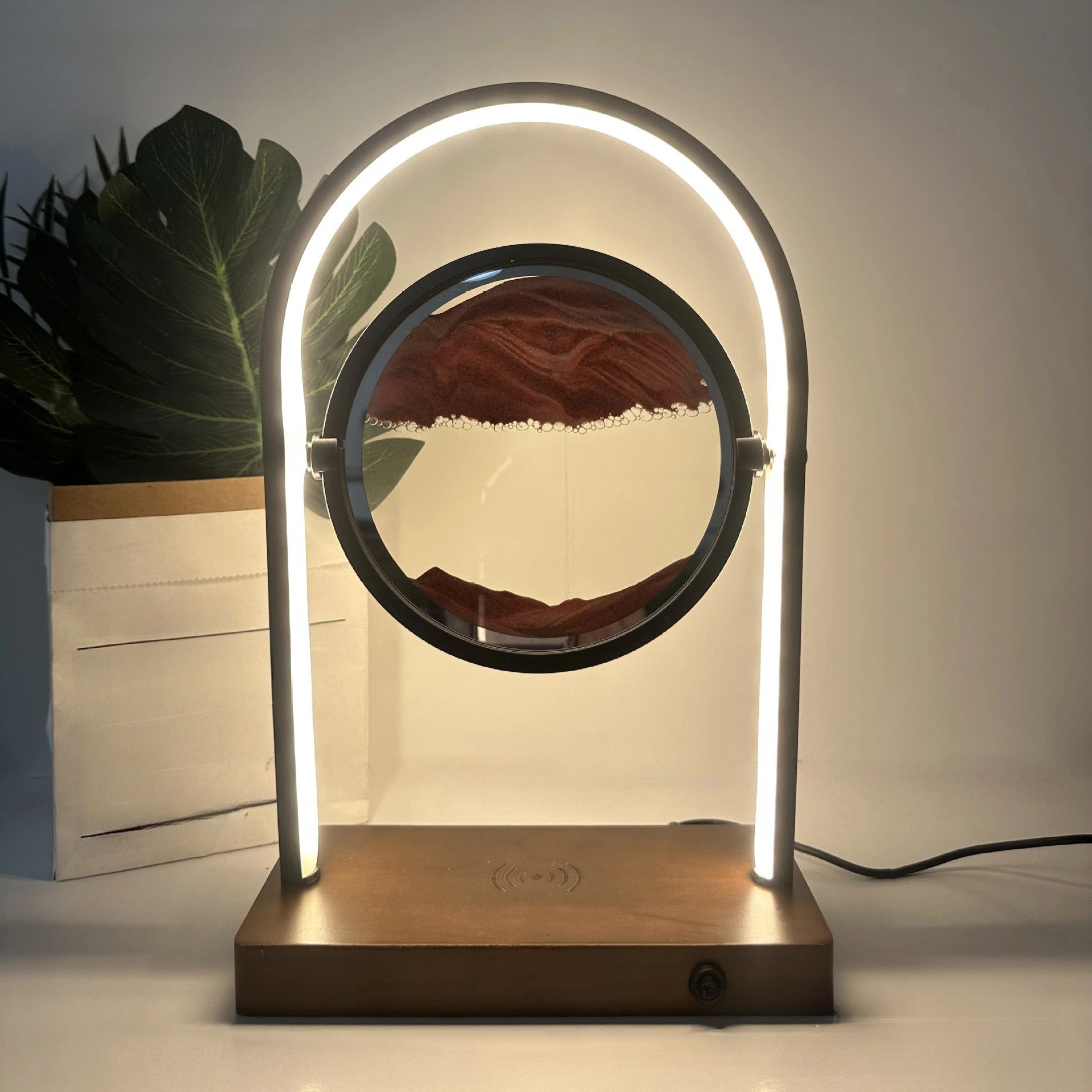 Contemporary Creative Floating Sand Wood Aluminum PVC USB LED Table Lamp For Bedroom