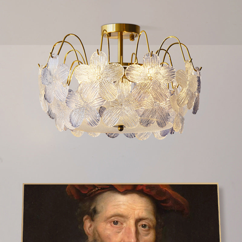 Contemporary Creative Flower Round Iron Glass 5/6 Light Semi-Flush Mount Ceiling Light For Living Room