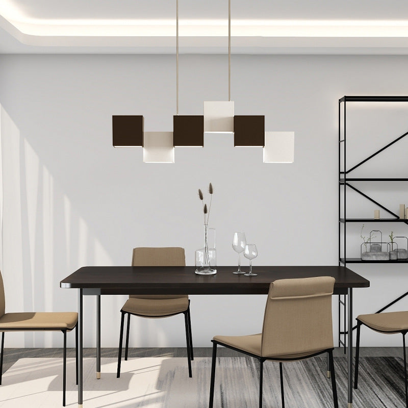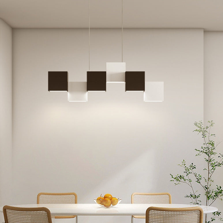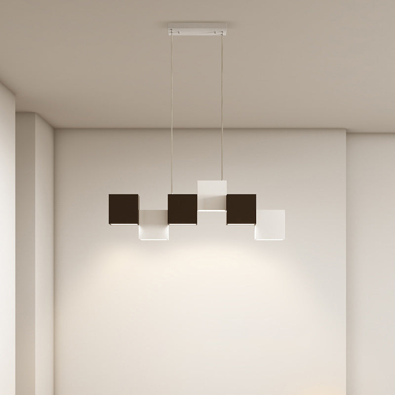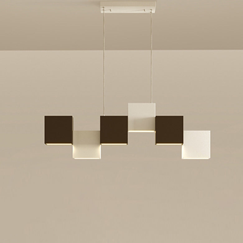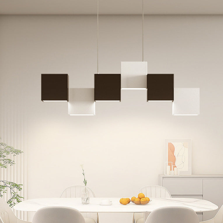 Contemporary Creative Geometric Iron Cube Splicing Acrylic LED Chandelier For Living Room