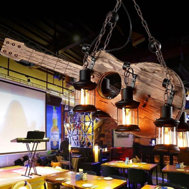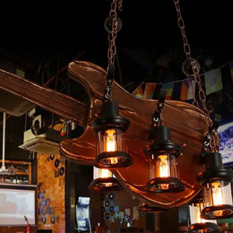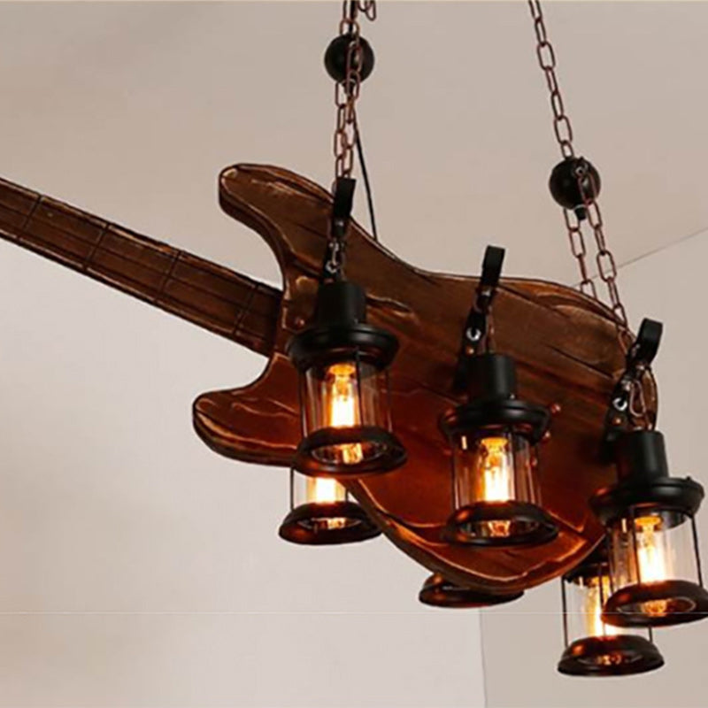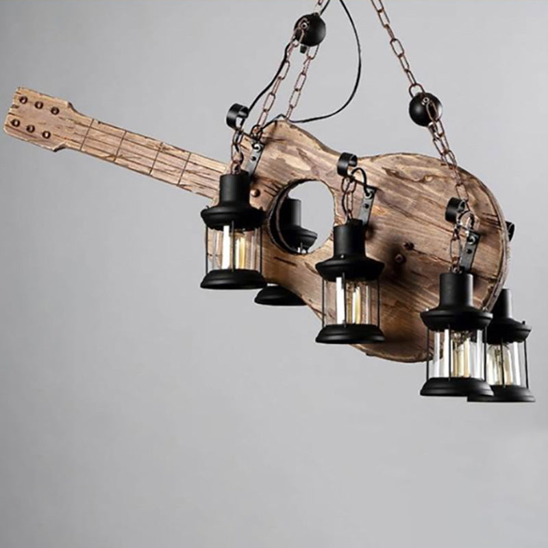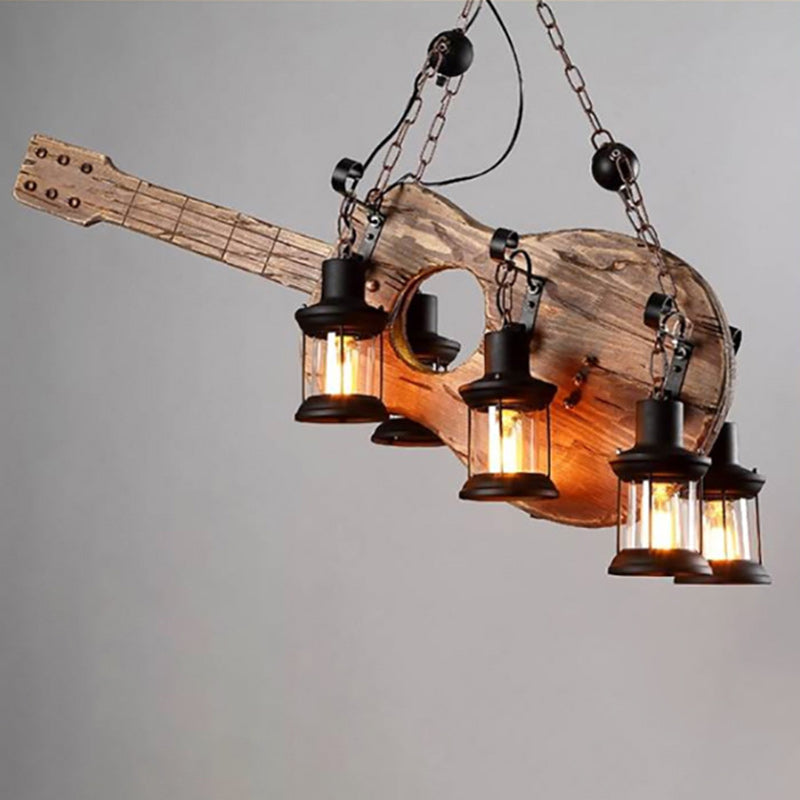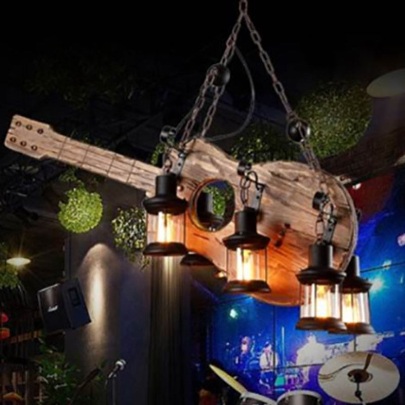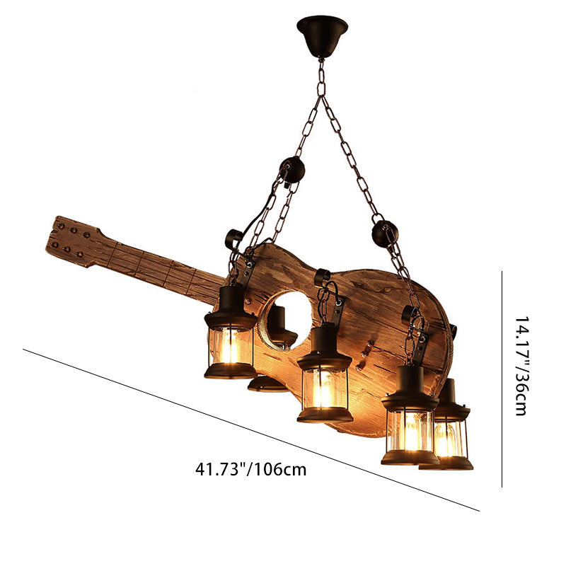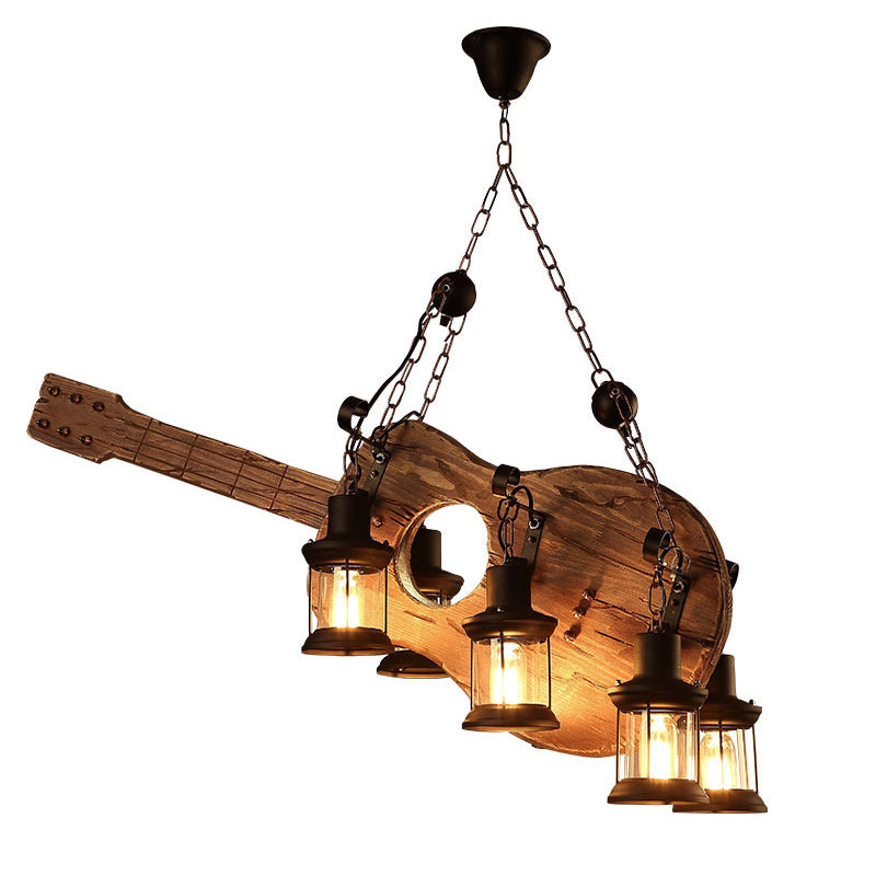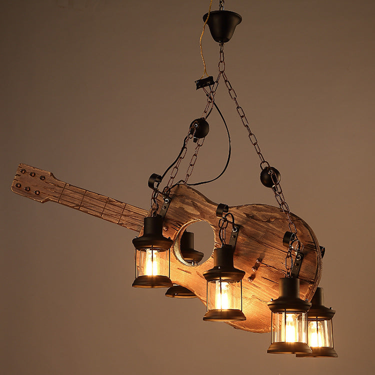 Contemporary Creative Guitar Shape Solid Wood Iron 6 - Light Chandelier For Dining Room
