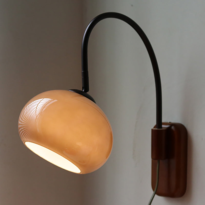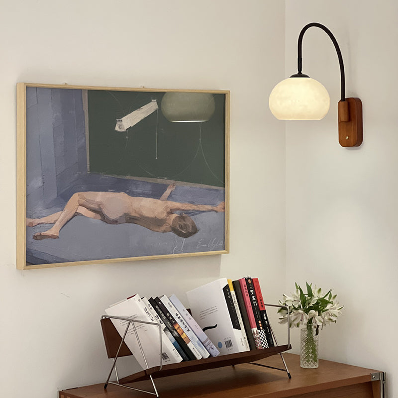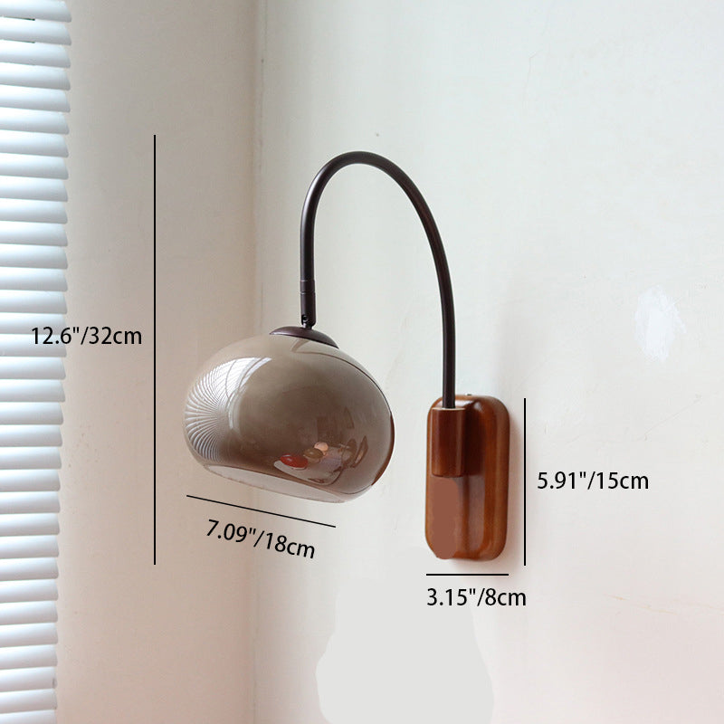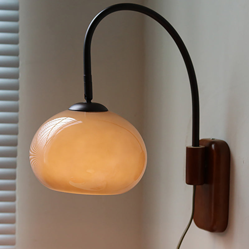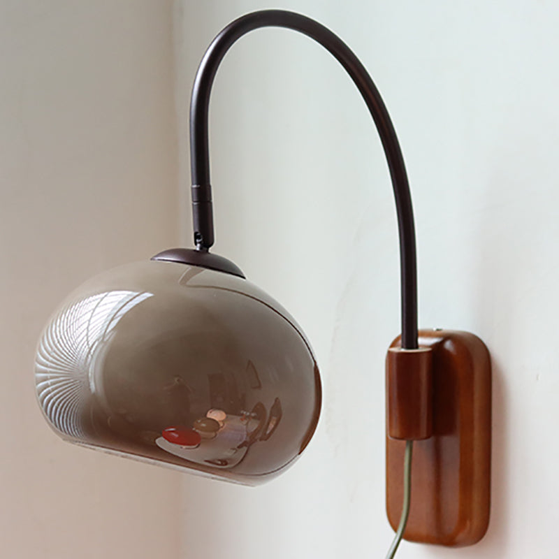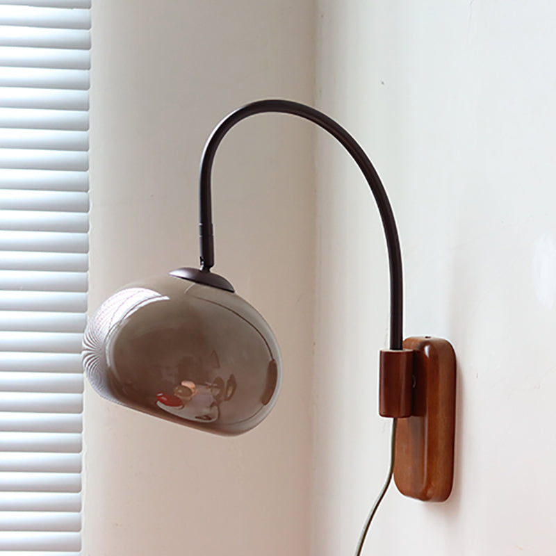 Contemporary Creative Half Round Fishing Rod Wood Glass 1-Light Wall Sconce Lamp For Bedroom