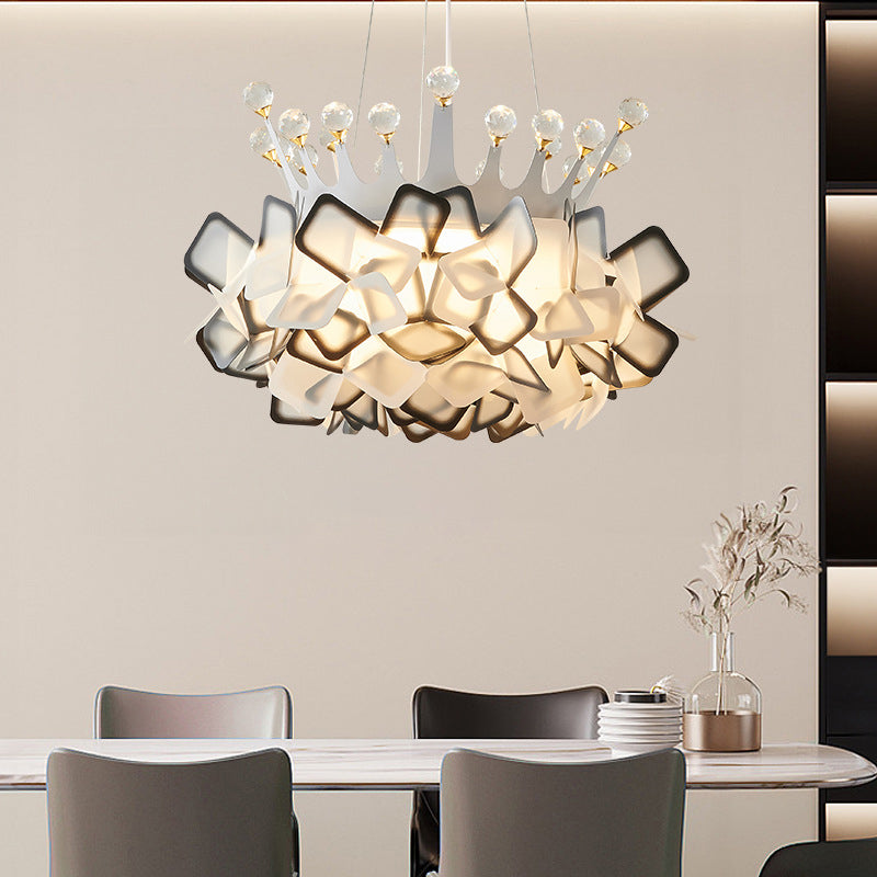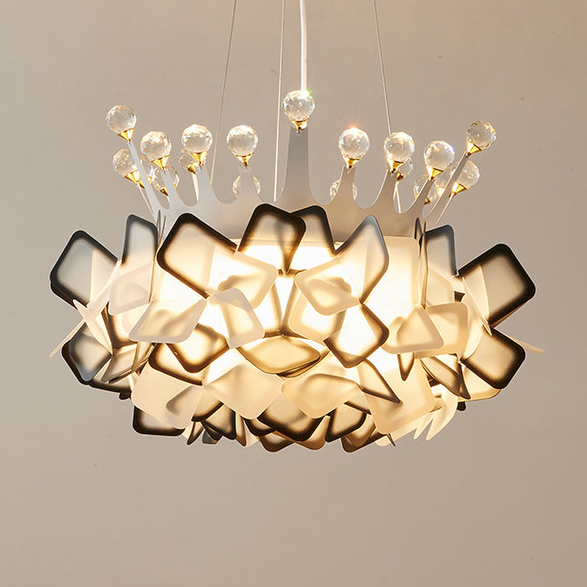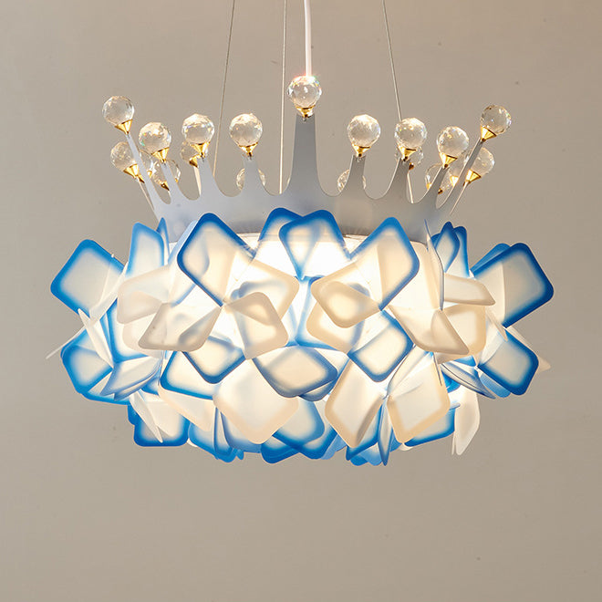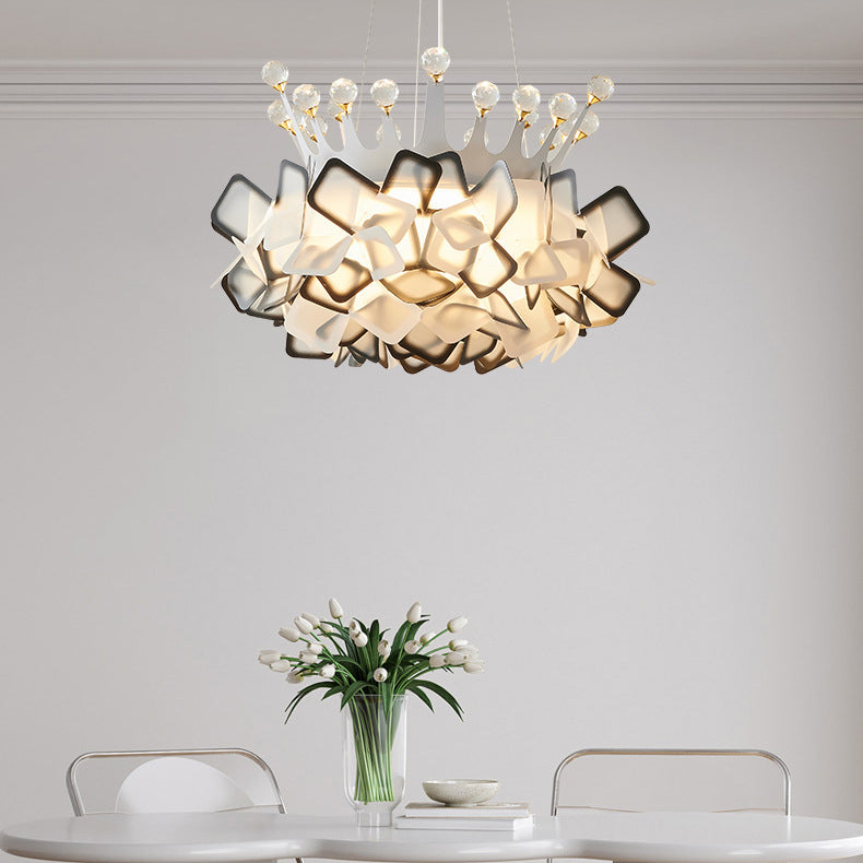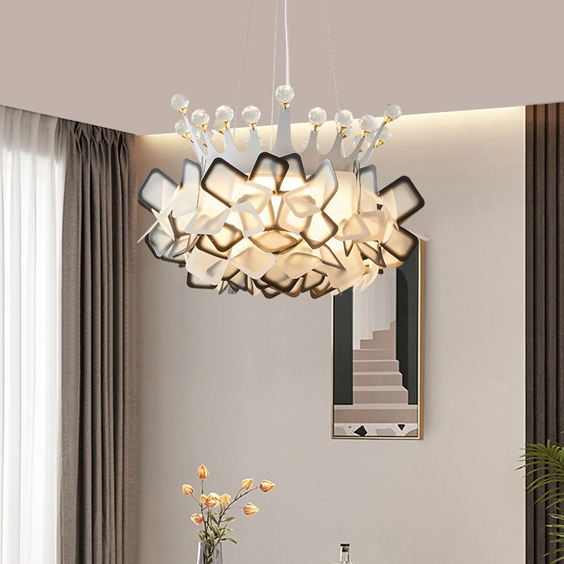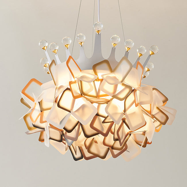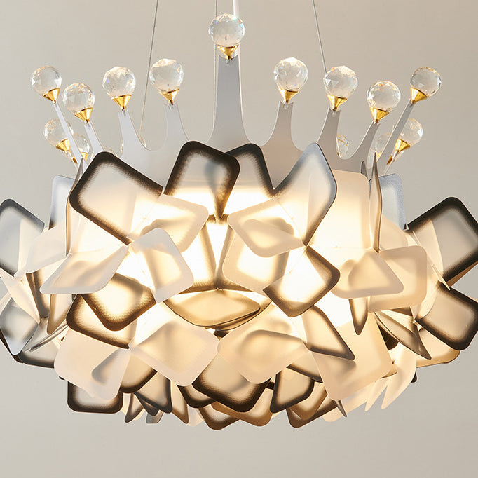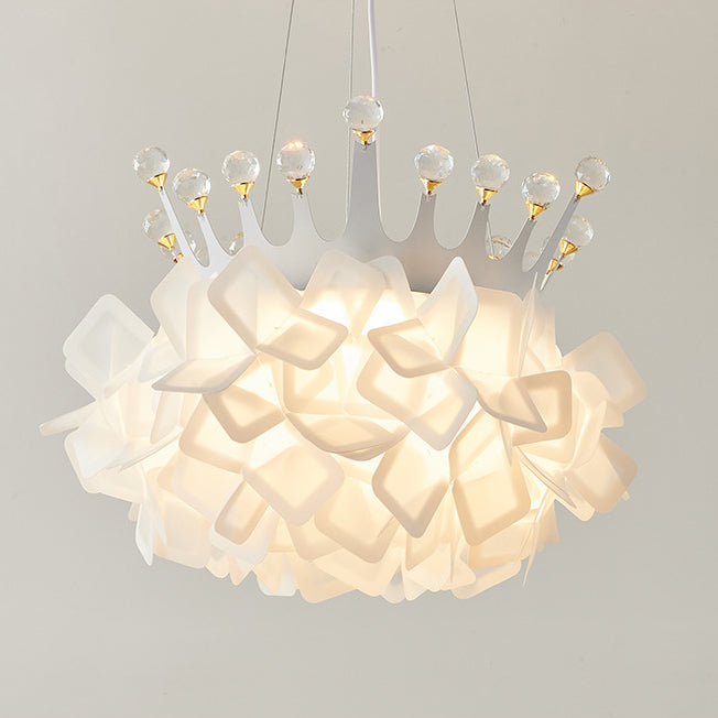 Contemporary Creative Hardware Crown Decor PVC Petal Shade LED Pendant Light For Living Room