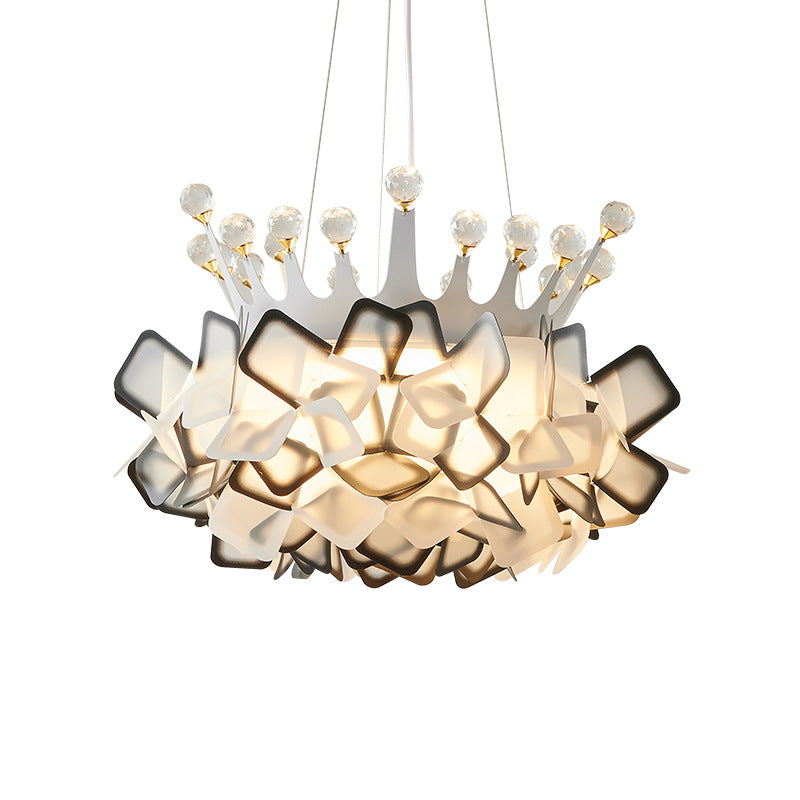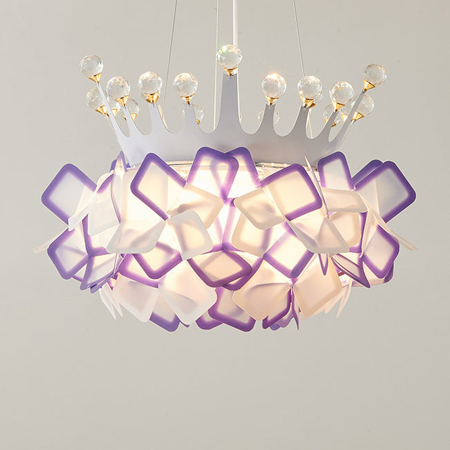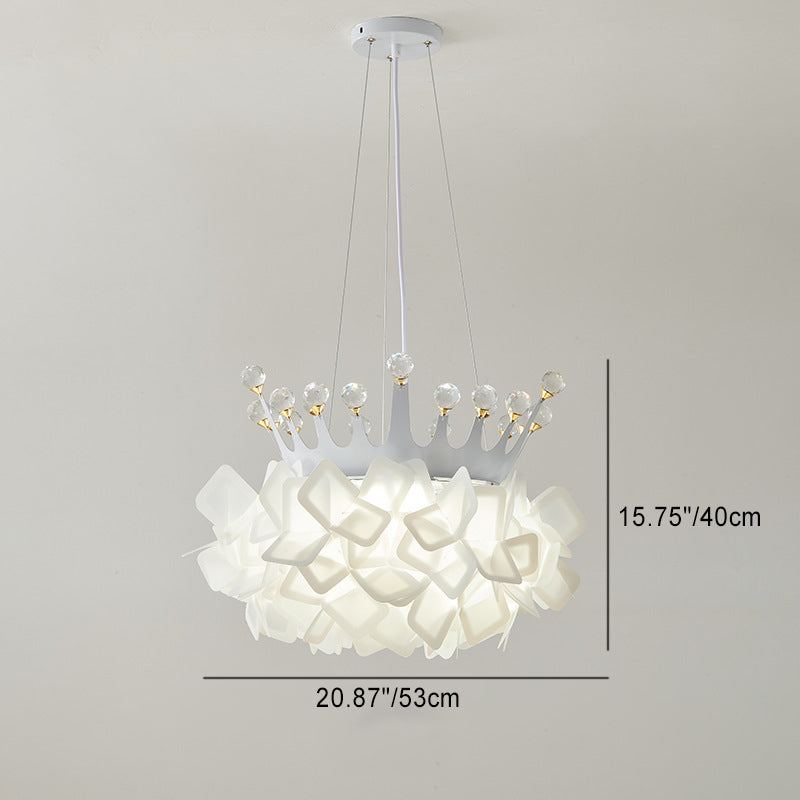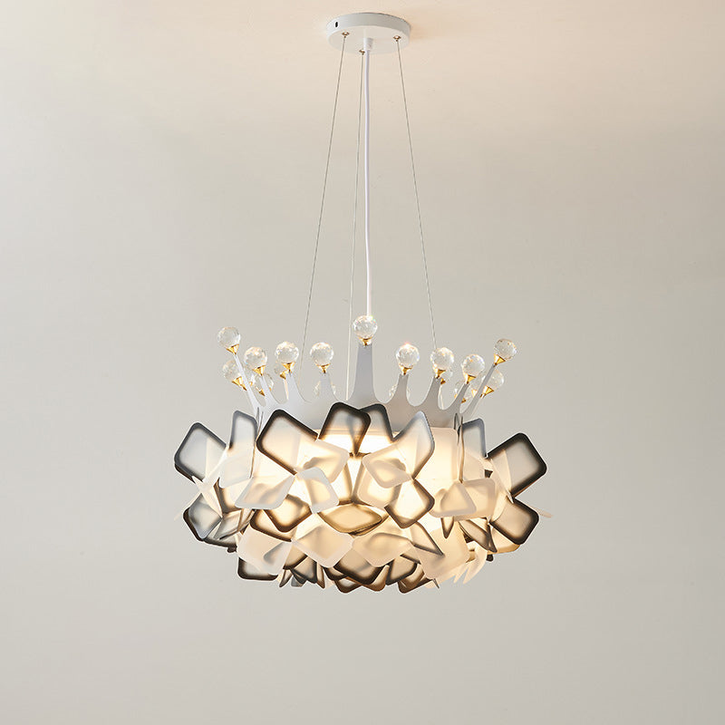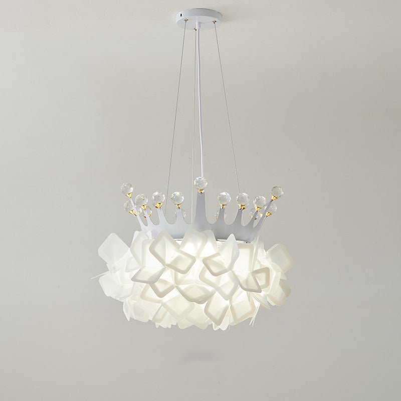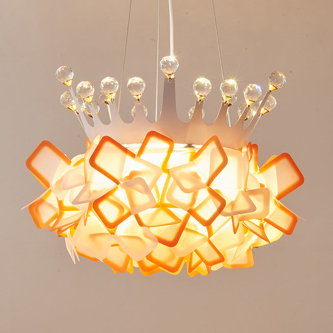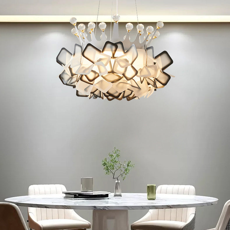 Contemporary Creative Hardware Crown Decor PVC Petal Shade LED Pendant Light For Living Room