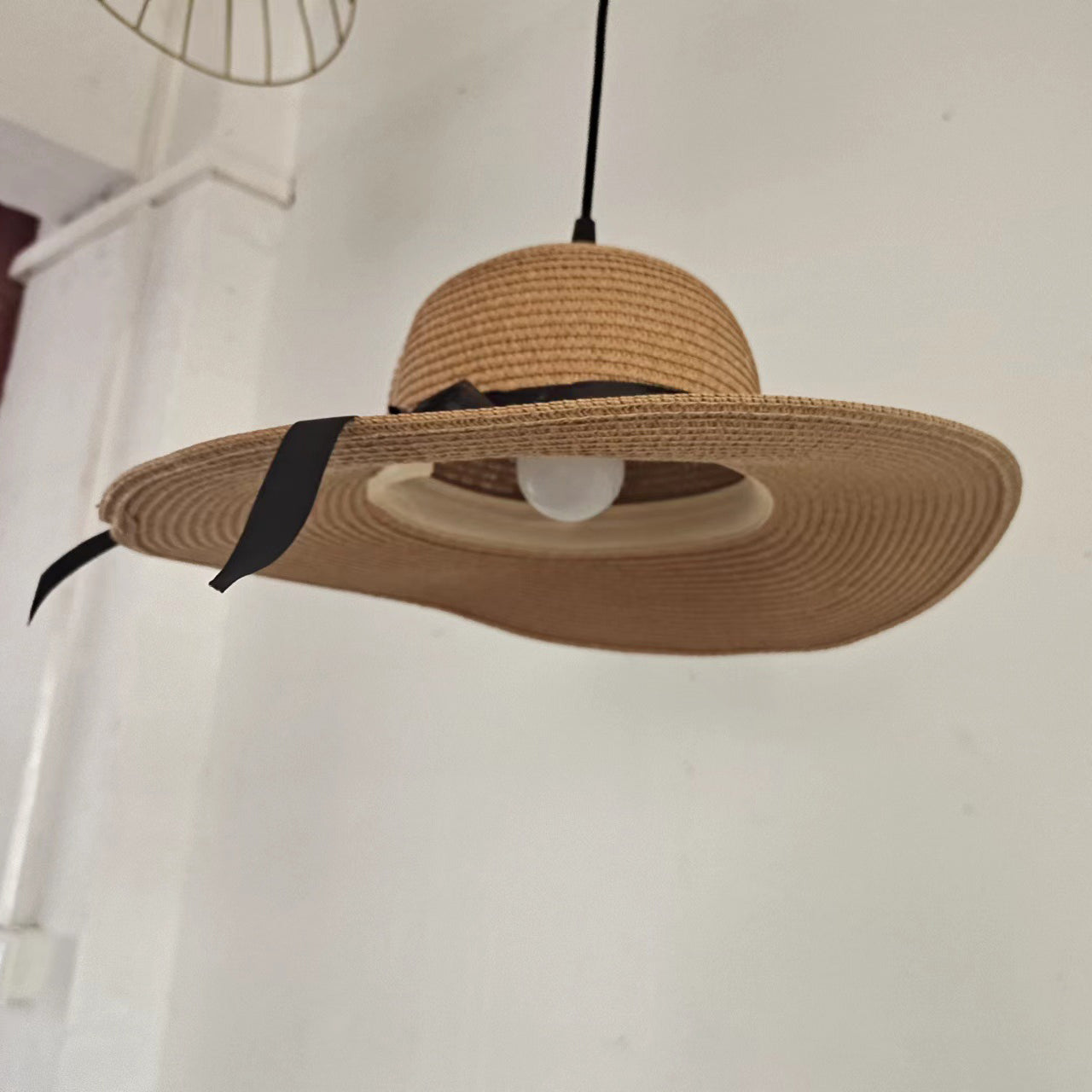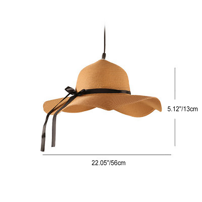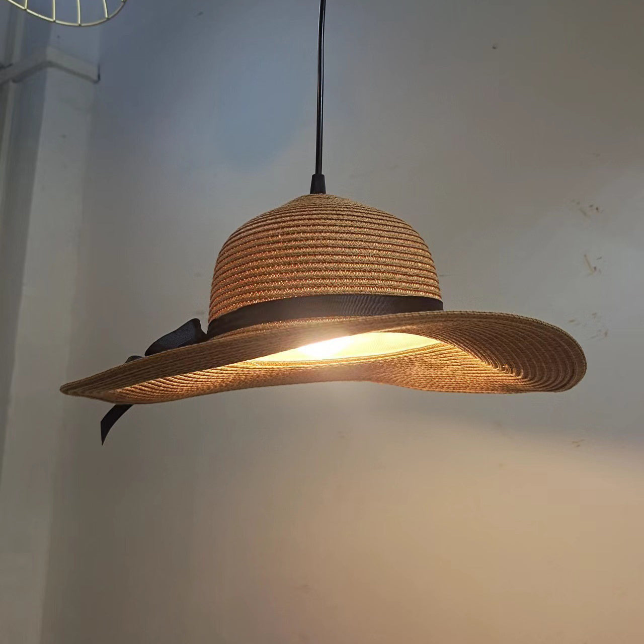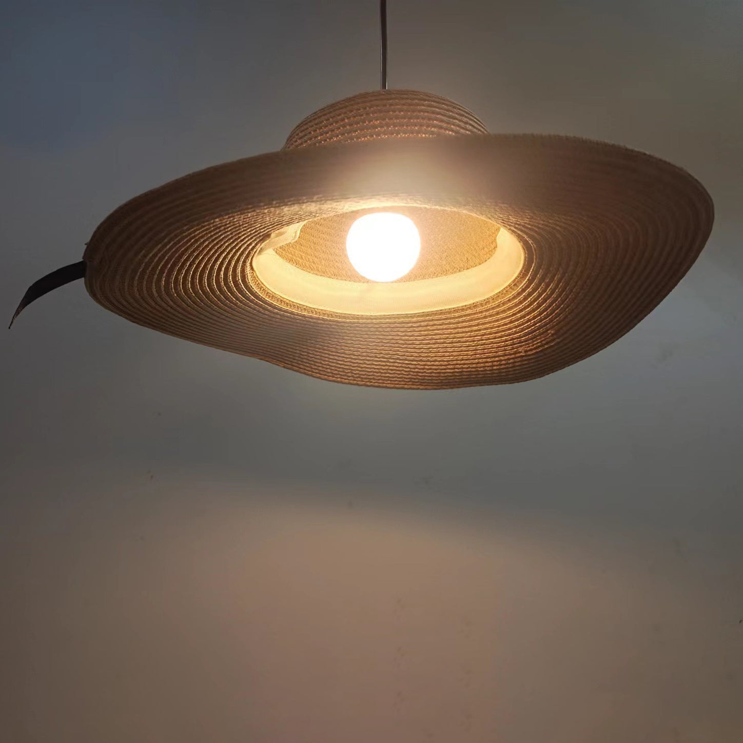 Contemporary Creative Hat Shape Round Straw Vine 1-Light Pendant Light For Living Room