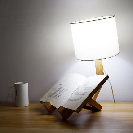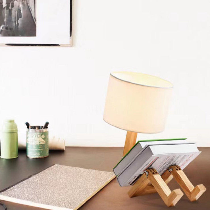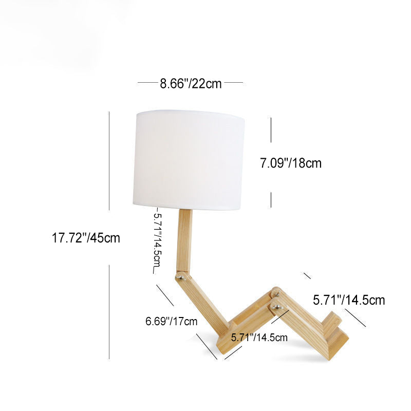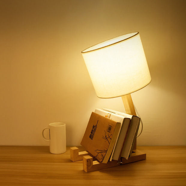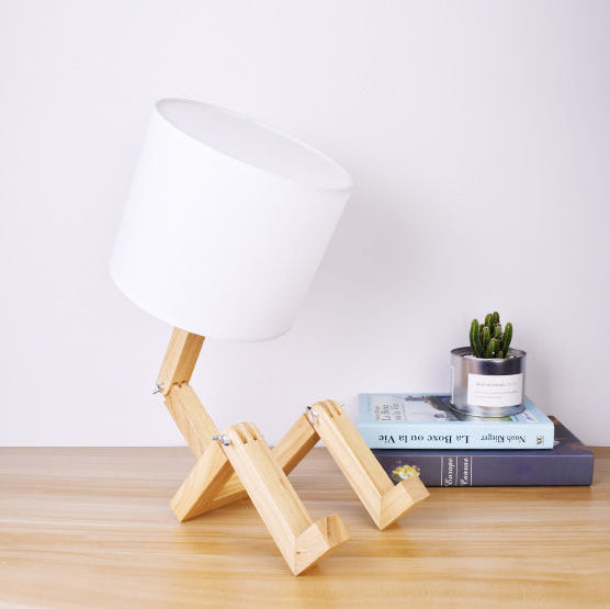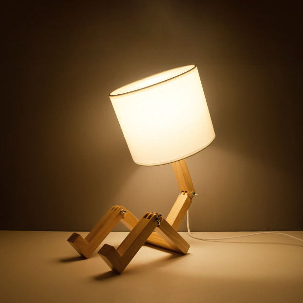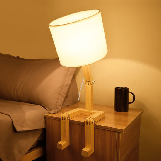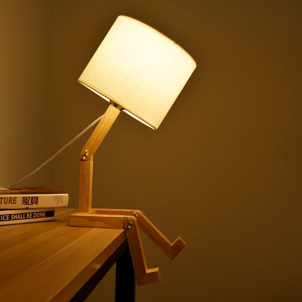 Contemporary Creative Humanoid Robot Fabric Solid Wood 1-Light Table Lamp For Bedroom