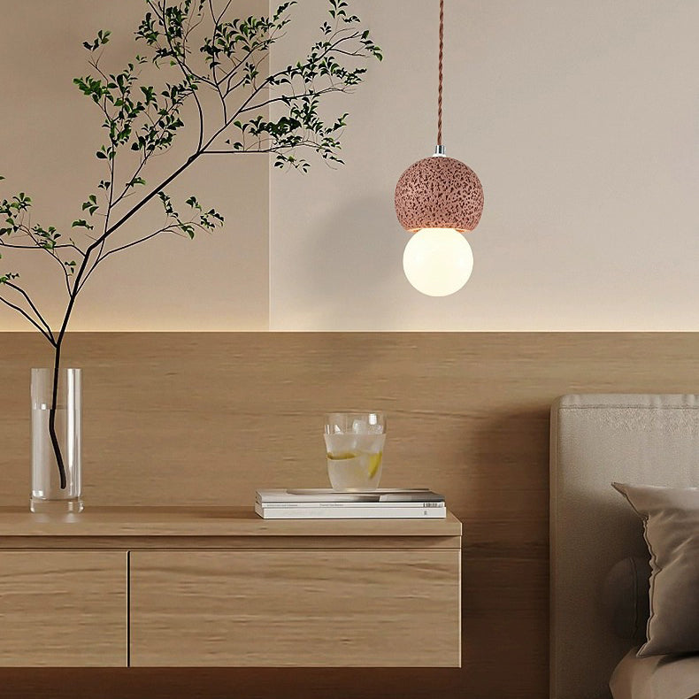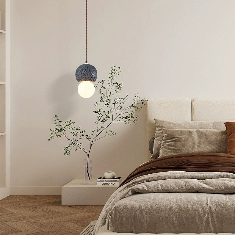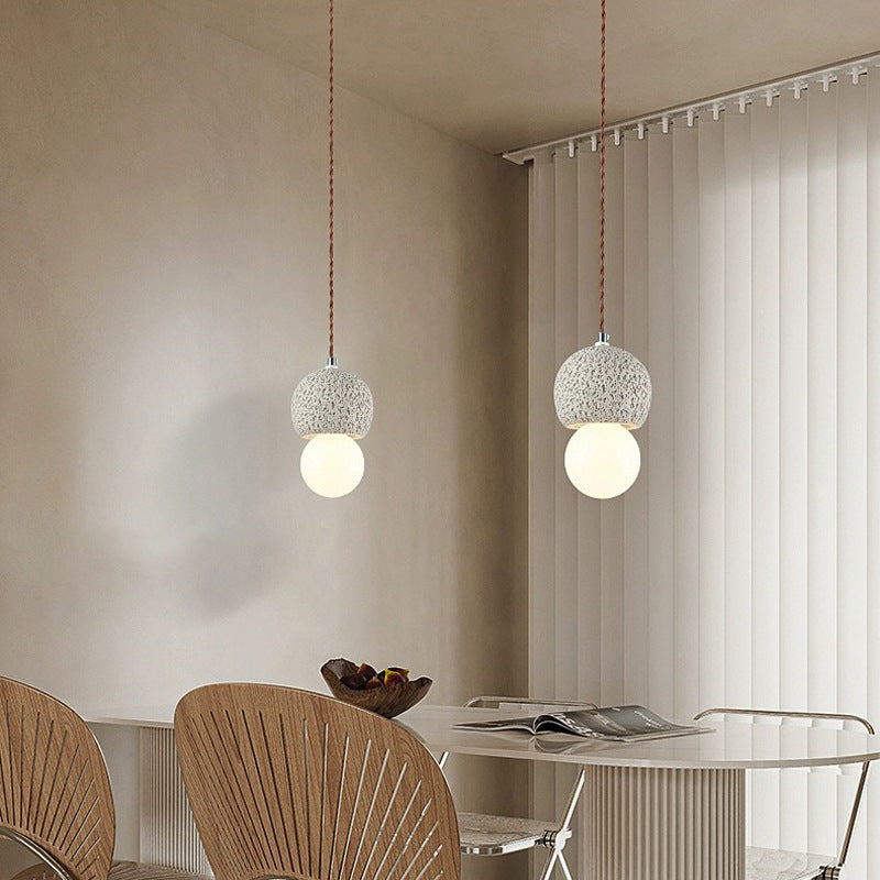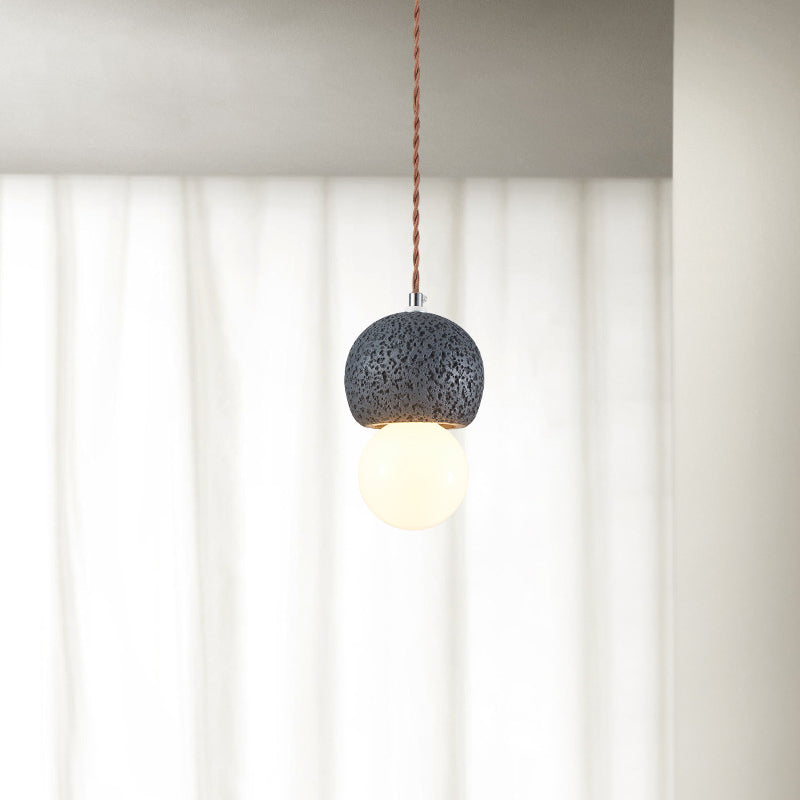 Contemporary Creative Imitation Rock Texture Semicircular Resin Shade 1-Light Pendant Light For Dining Room