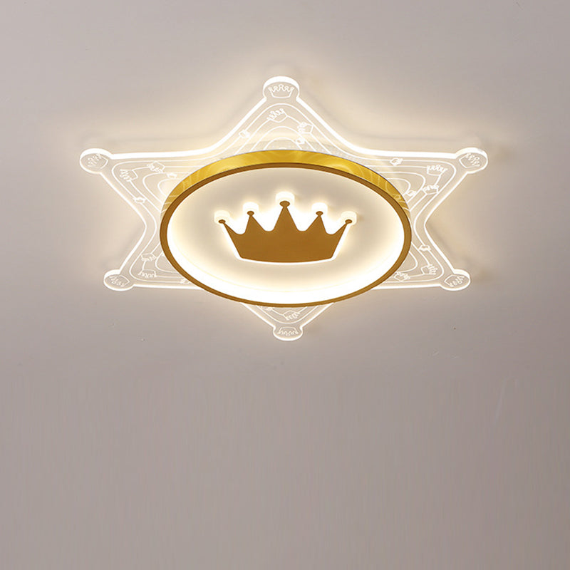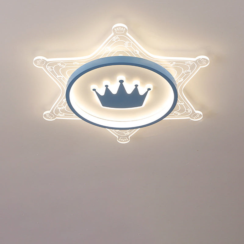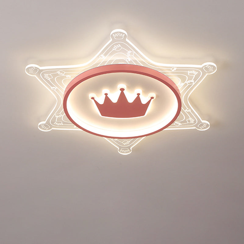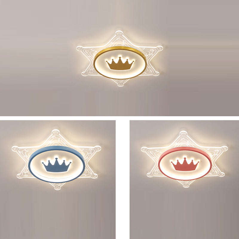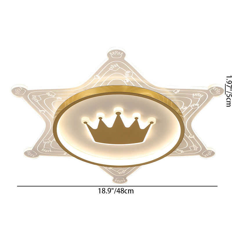 Contemporary Creative Iron Acrylic Crown Hexagram LED Flush Mount Ceiling Light For Living Room