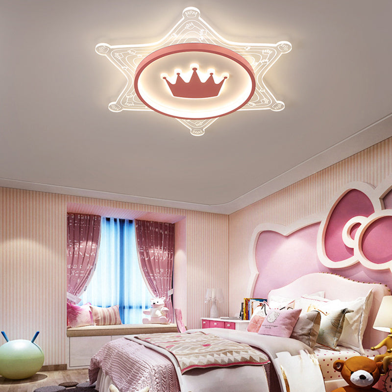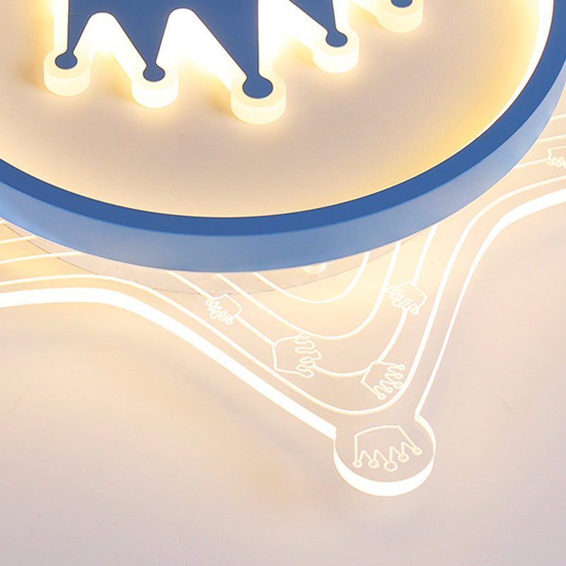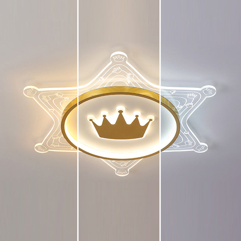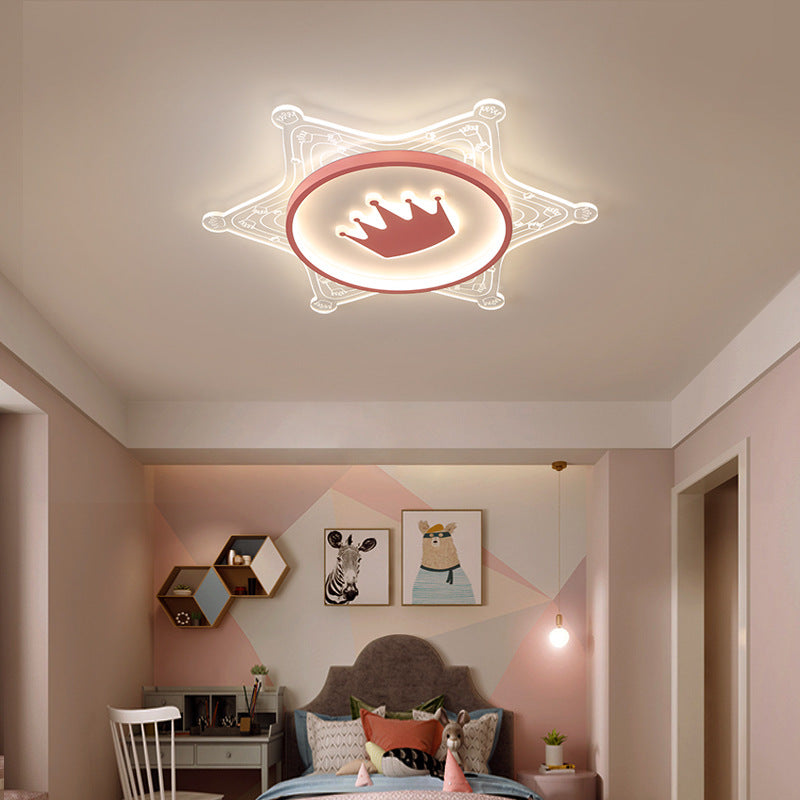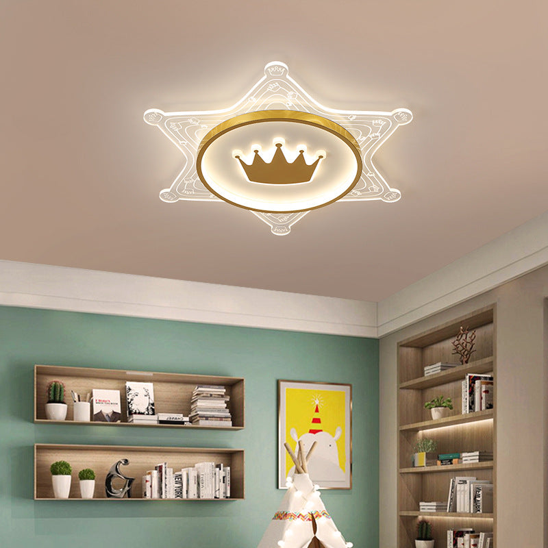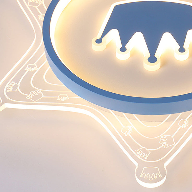 Contemporary Creative Iron Acrylic Crown Hexagram LED Flush Mount Ceiling Light For Living Room