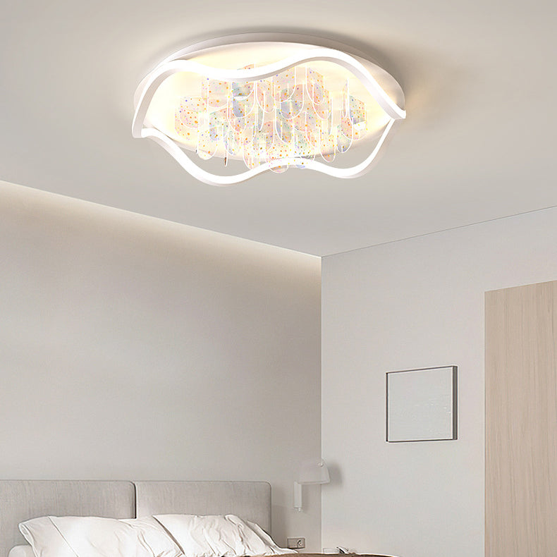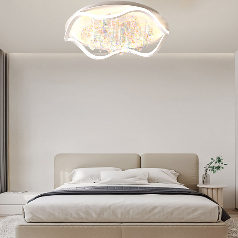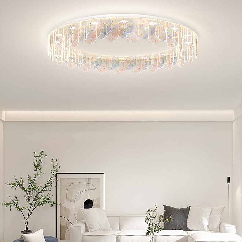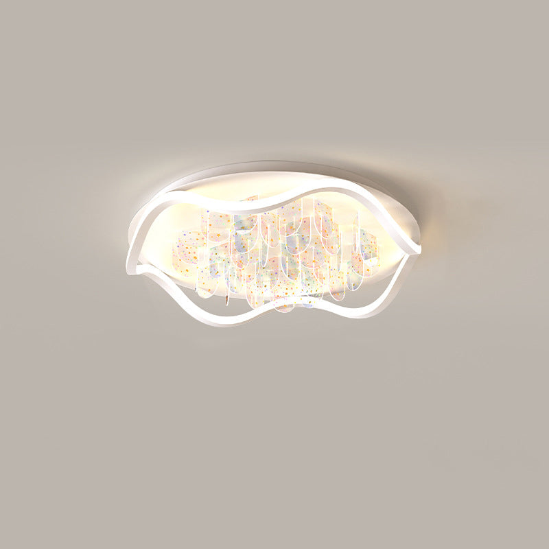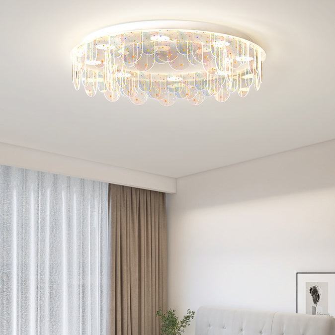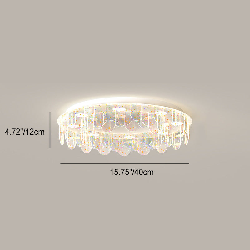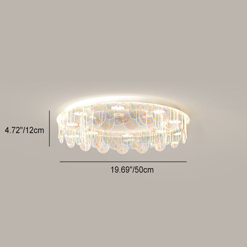 Contemporary Creative Iron Acrylic Round Cloud Star Piece LED Flush Mount Ceiling Light For Living Room