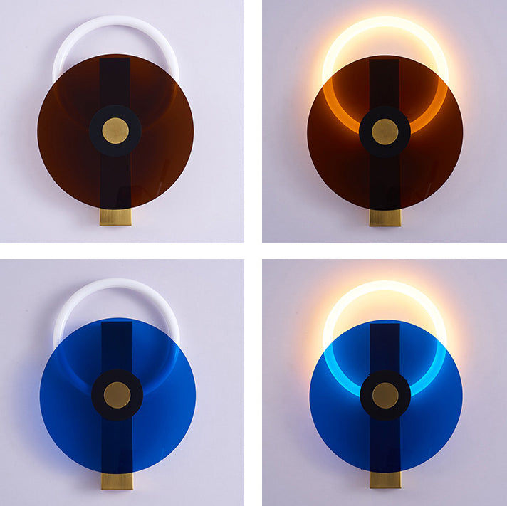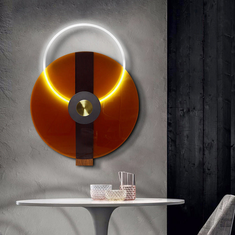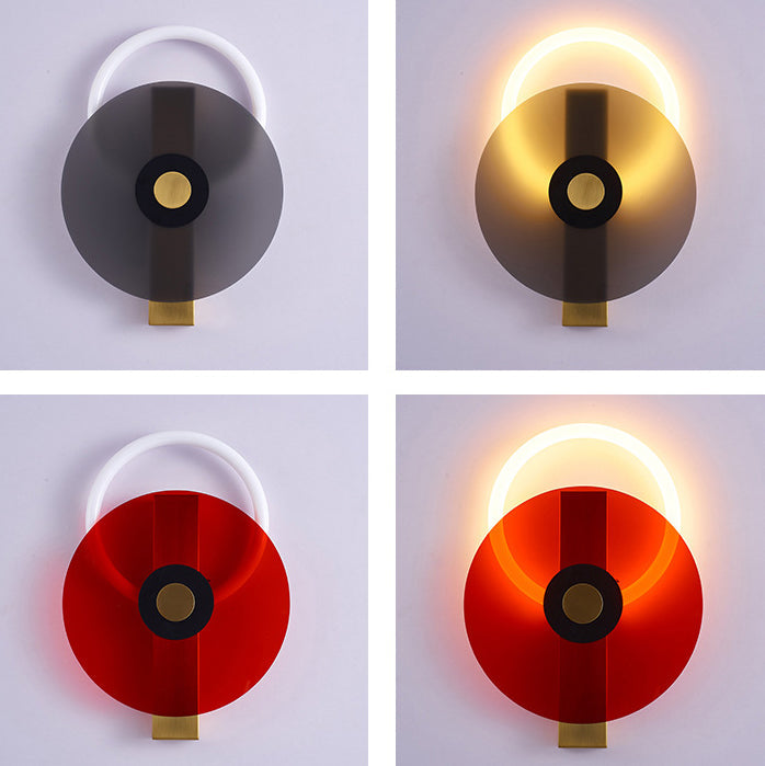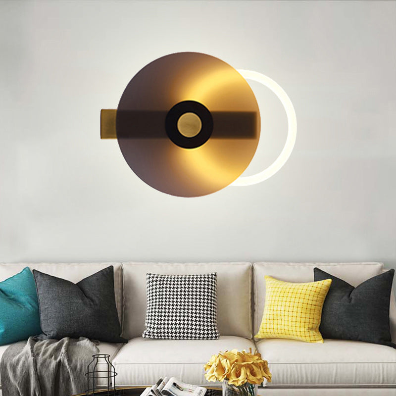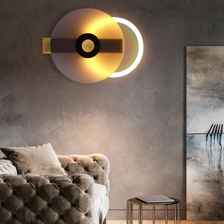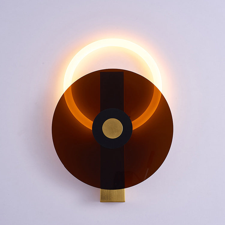 Contemporary Creative Iron Acrylic Round Disc LED Wall Sconce Lamp For Living Room