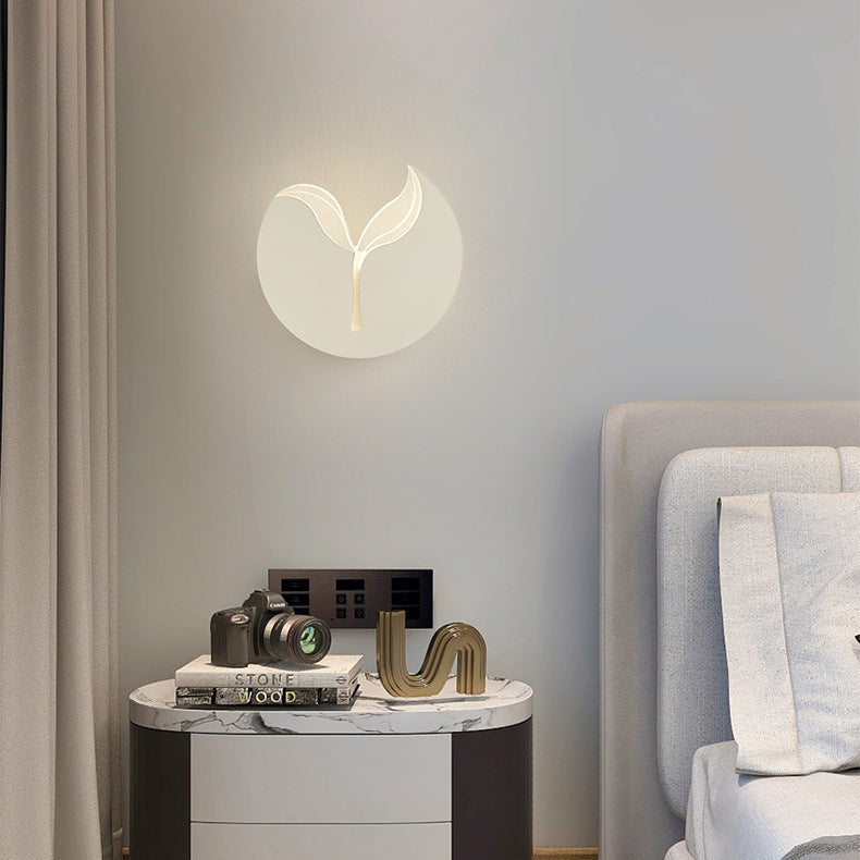 Contemporary Creative Iron Acrylic Sapling Shade LED Wall Sconce Lamp For Bedroom