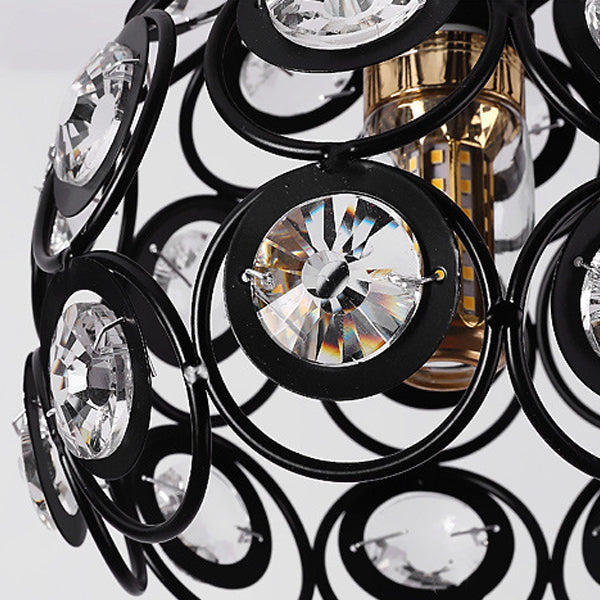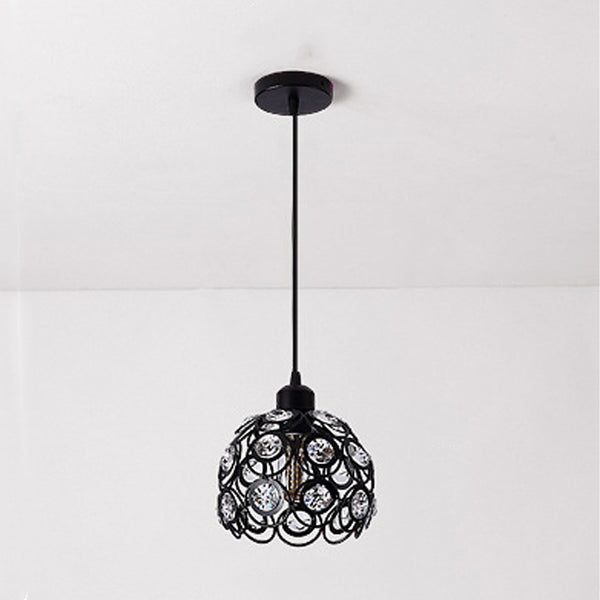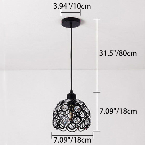 Contemporary Creative Iron Aluminum Crystal Hollow Round Globe Shape 1-Light Pendant Light For Living Room