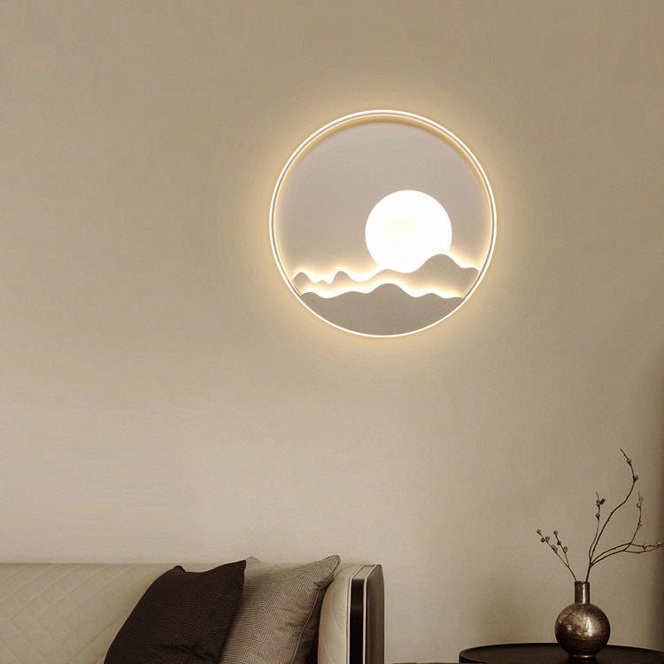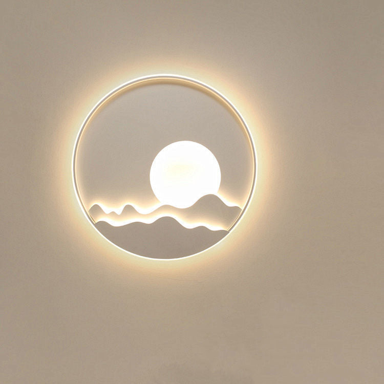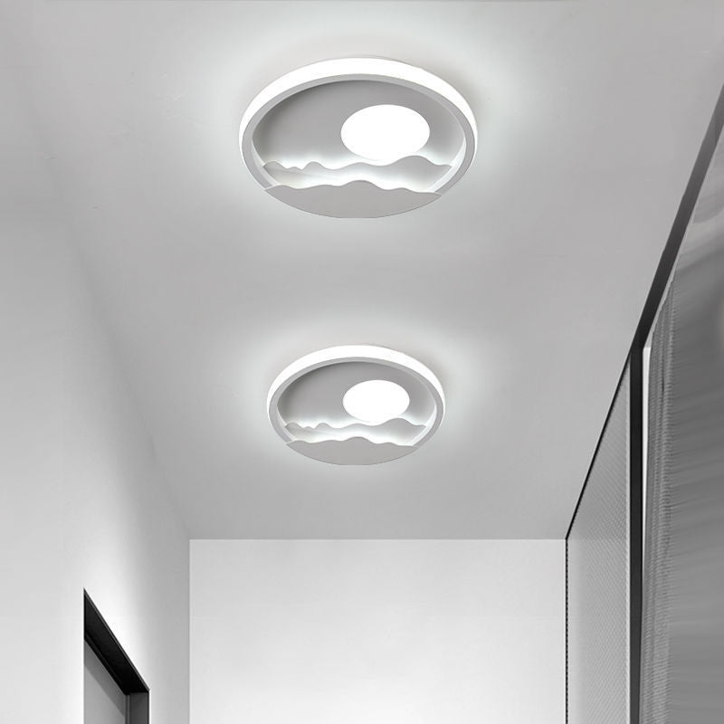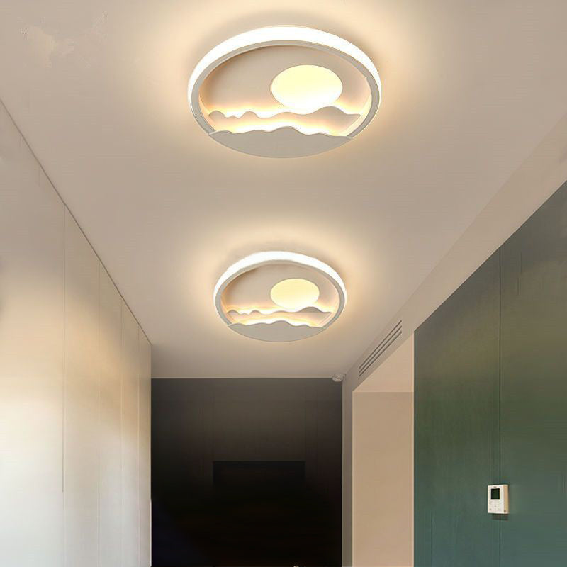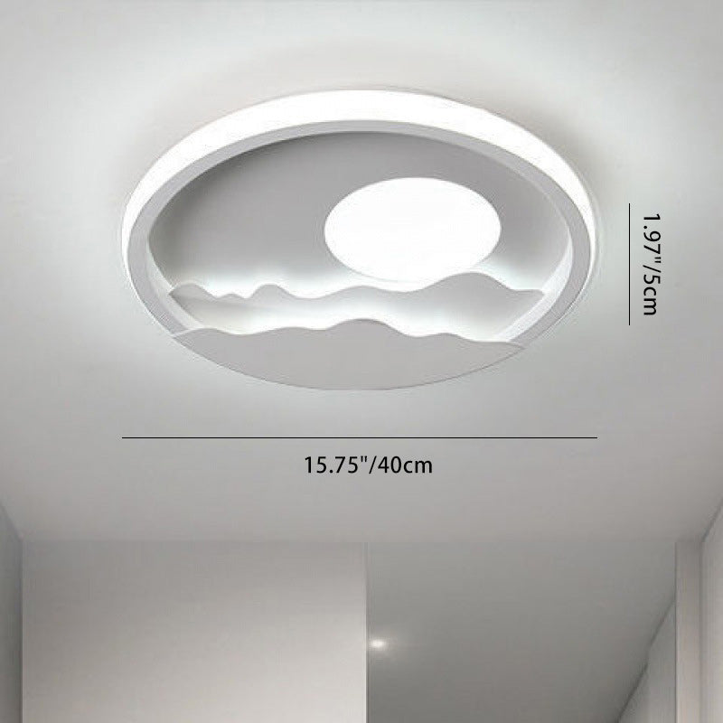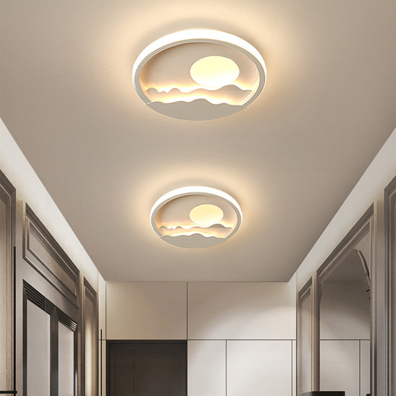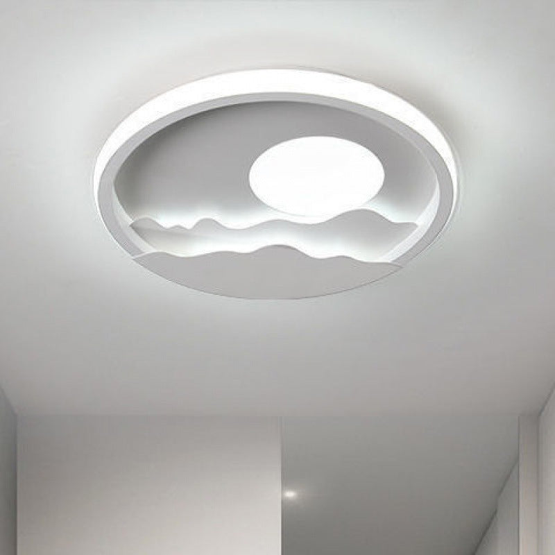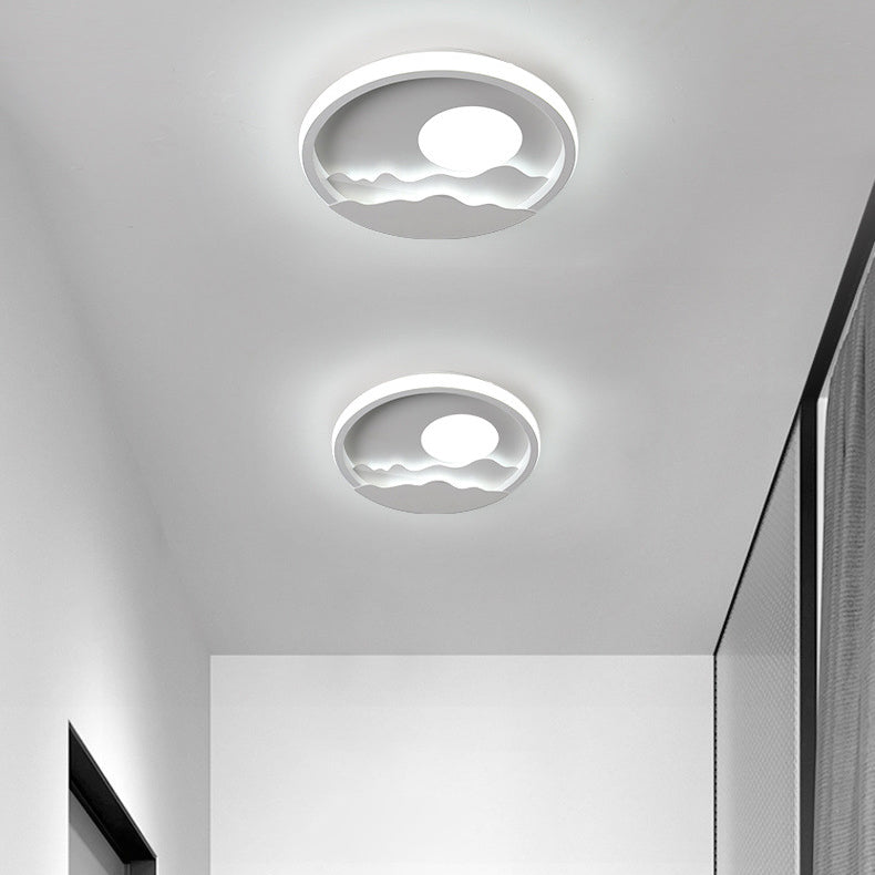 Contemporary Creative Iron Aluminum Silica Sun Wavy Line Round LED Flush Mount Ceiling Light For Hallway