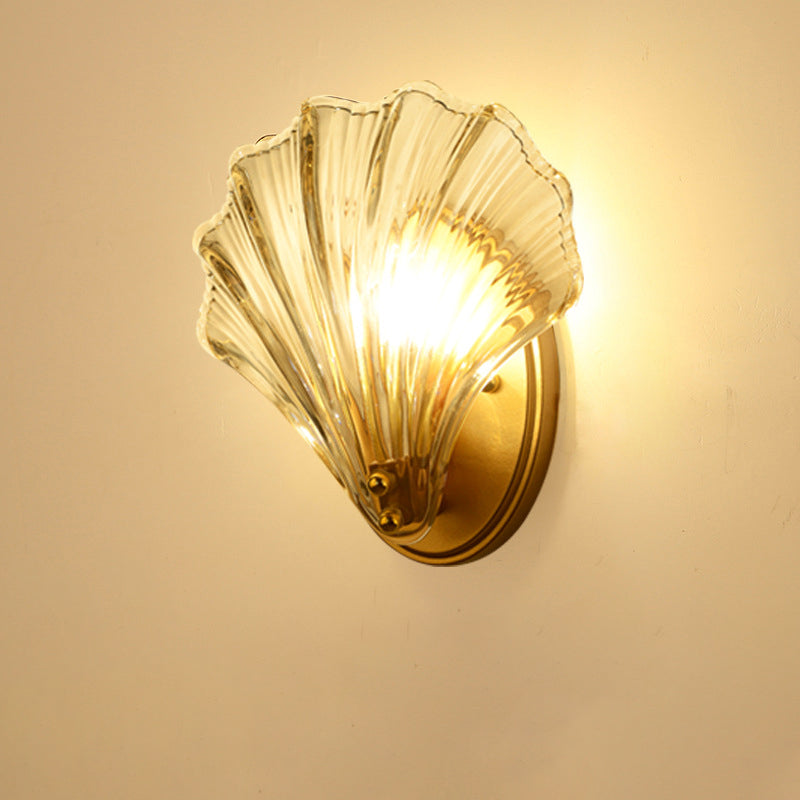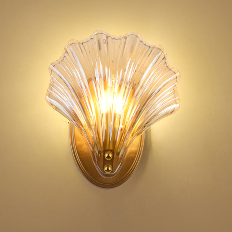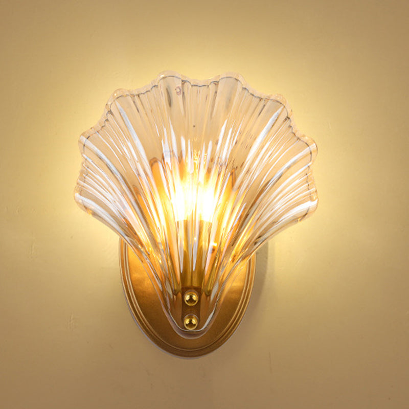 Contemporary Creative Iron And Glass Shell Shape 1-Light Wall Sconce Lamp For Bedroom And Living Room