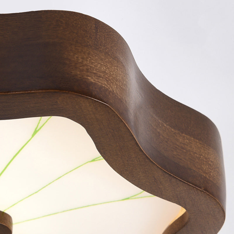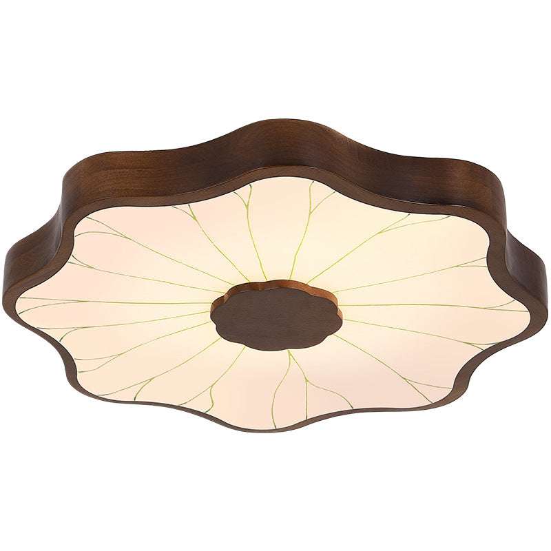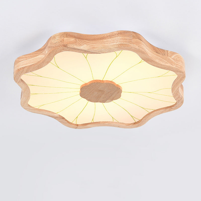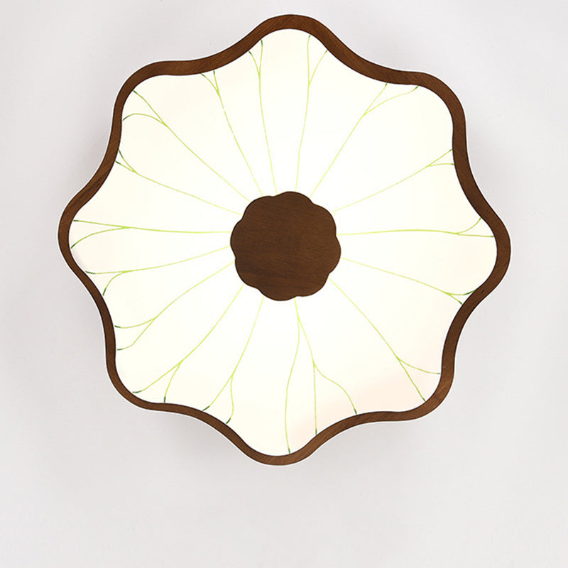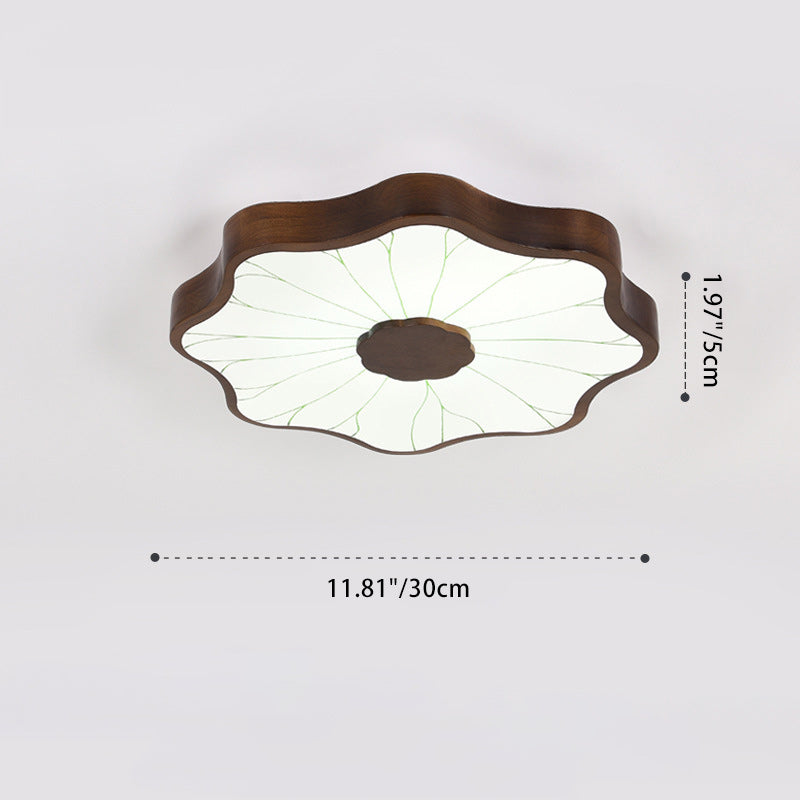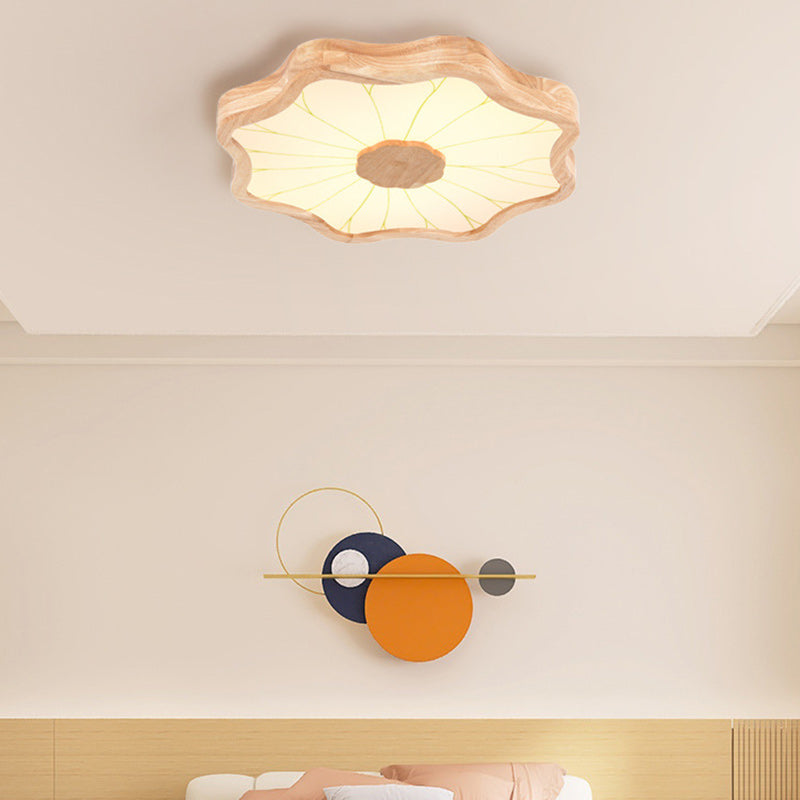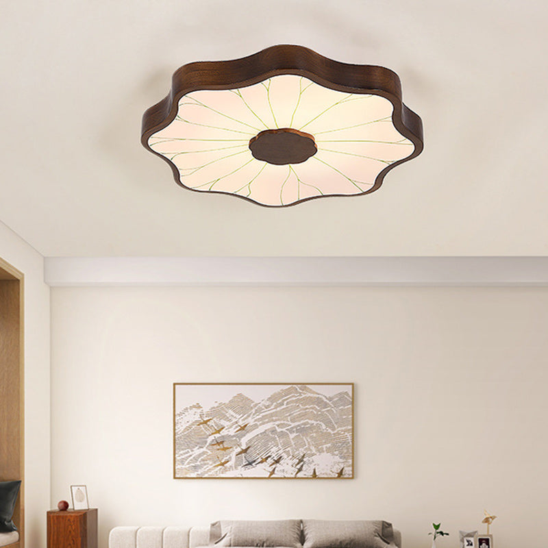 Contemporary Creative Iron Imitation Wood Grain Lotus LED Flush Mount Ceiling Light For Bedroom