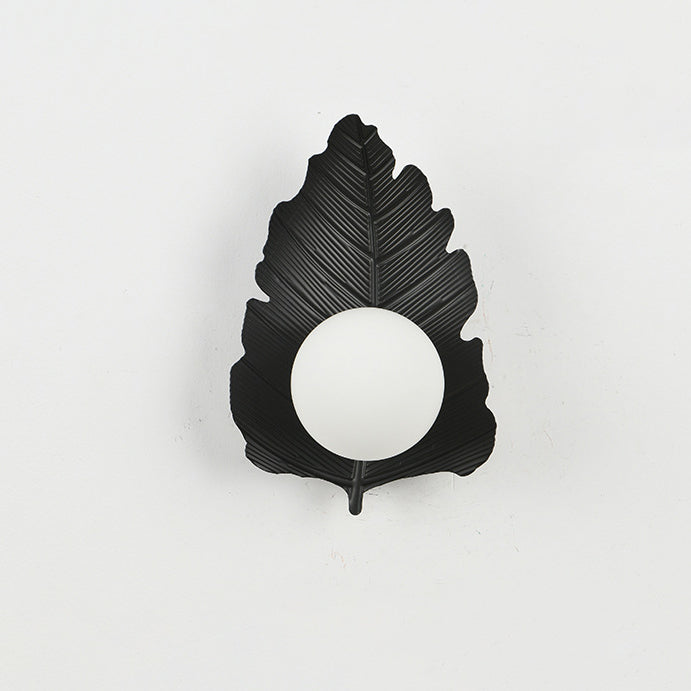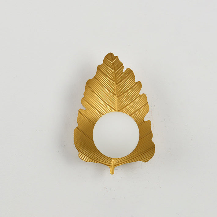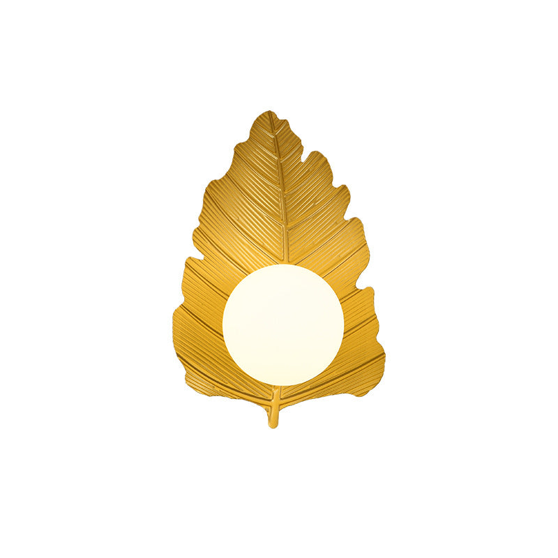Contemporary Creative Iron Leaf Glass Orb Lampshade 1 - Light Wall Sconce Lamp For Living Room
