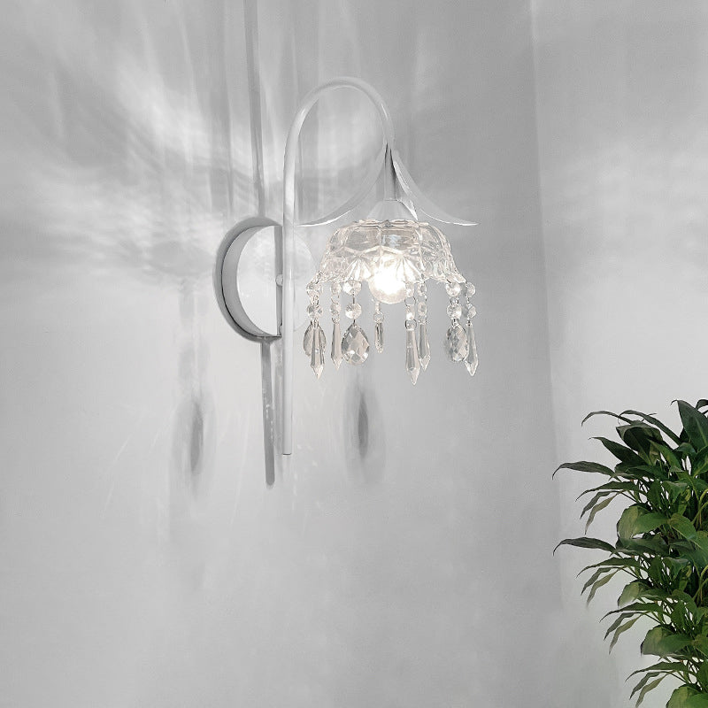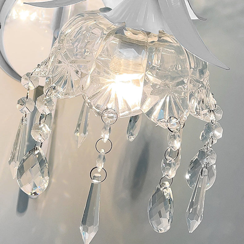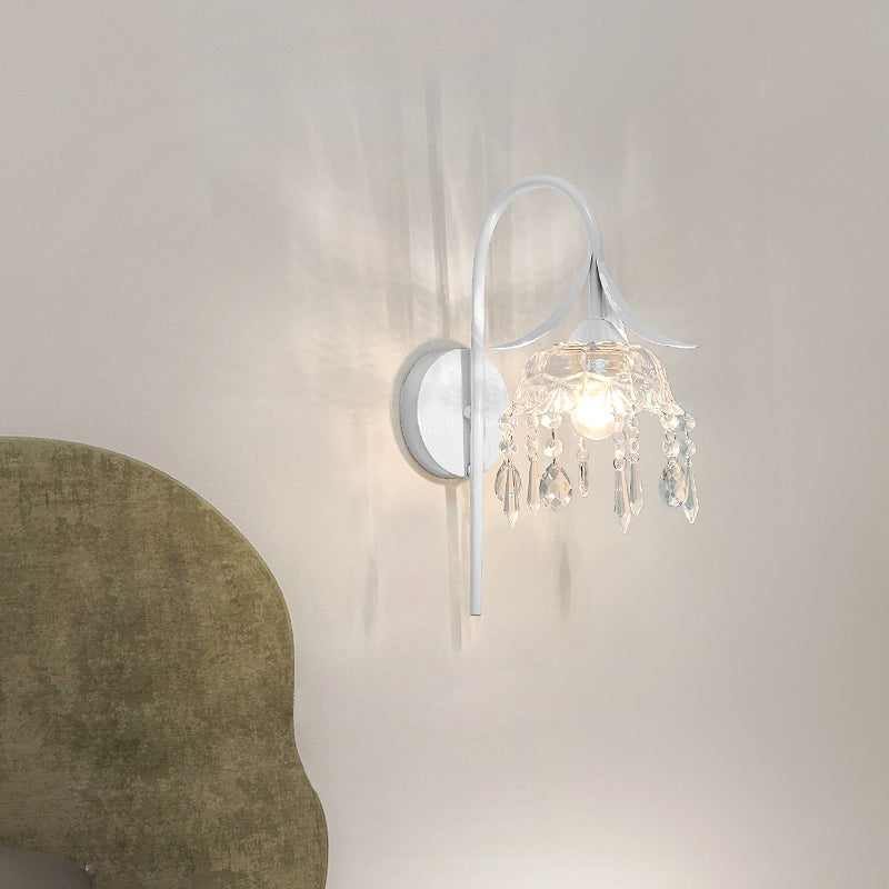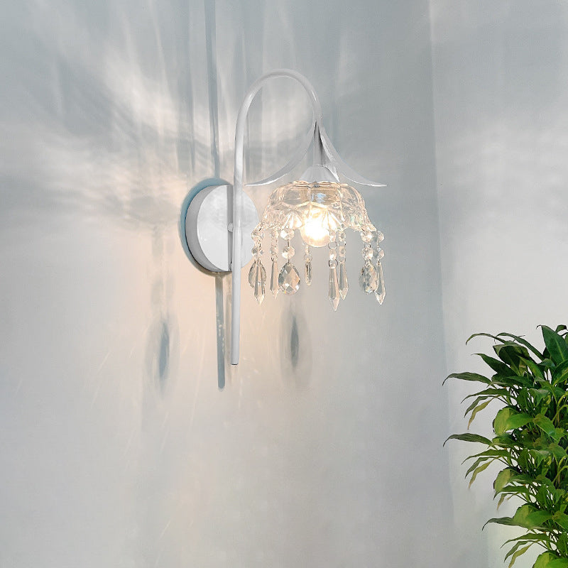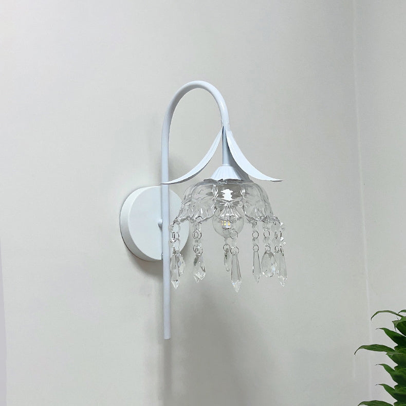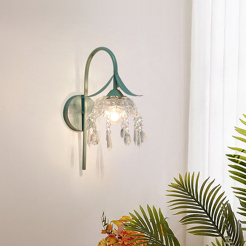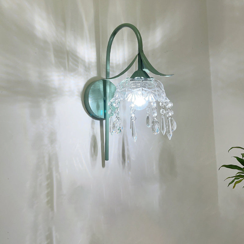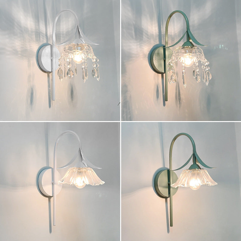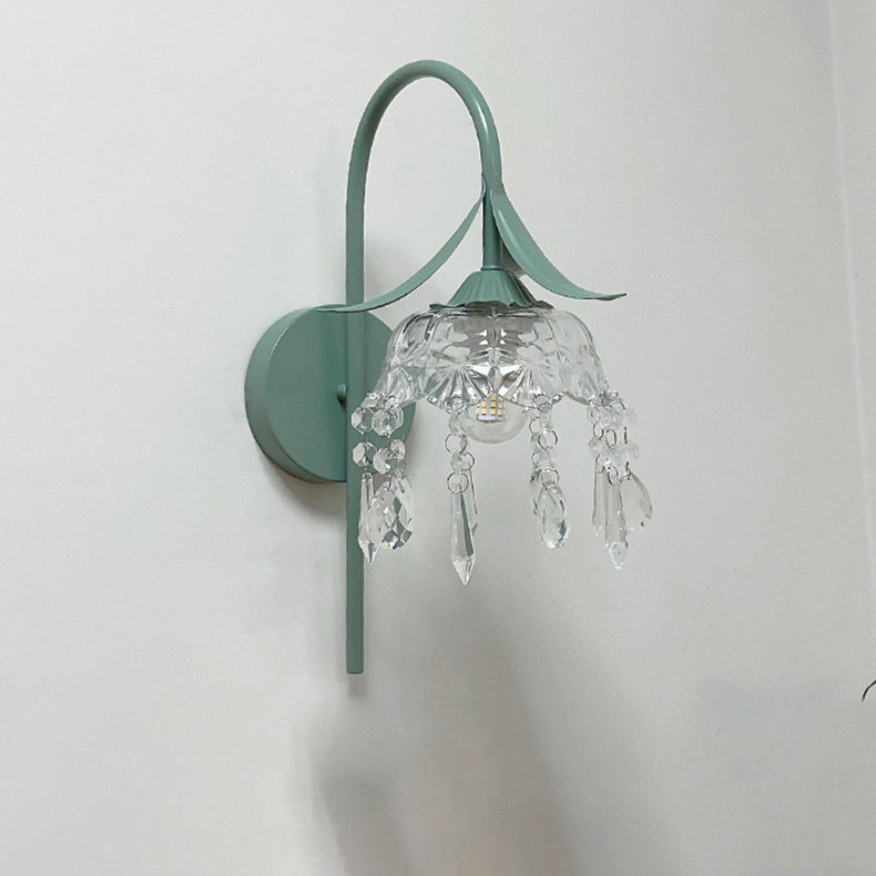 Contemporary Creative Iron Lotus Flower Glass Shade Crystal 1-Light Wall Sconce Lamp For Living Room